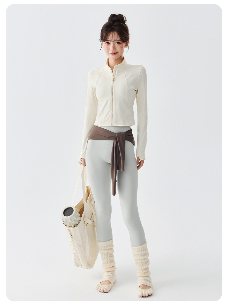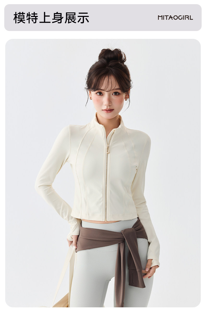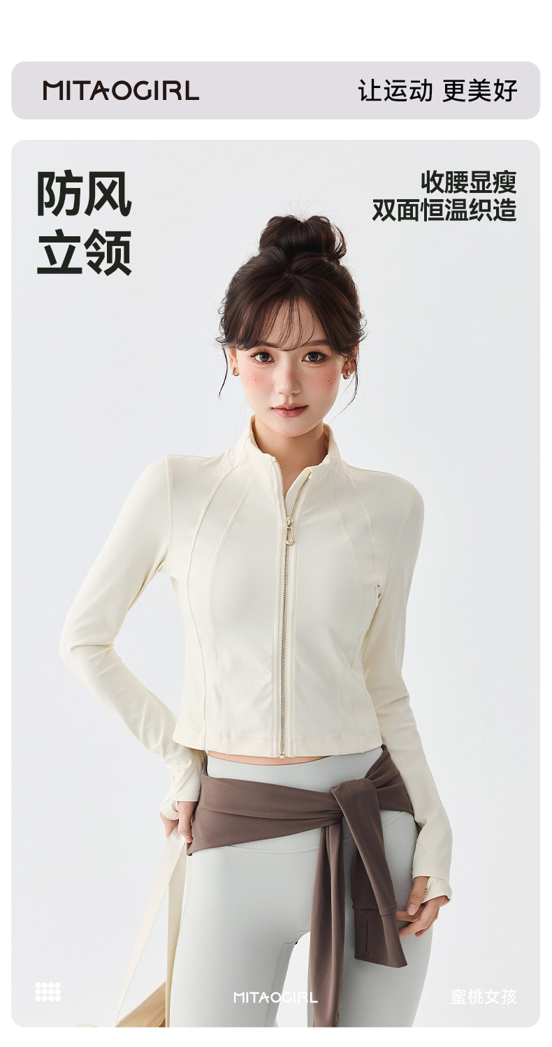 Mitaogirl Autumn and Winter Stand-Up Collar Running Sports Top Jacket Women's Yoga Pilates Training Fitness Clothing Long Sleeves