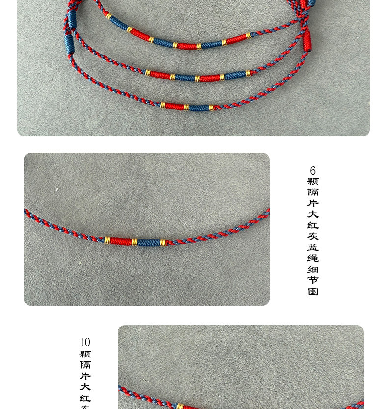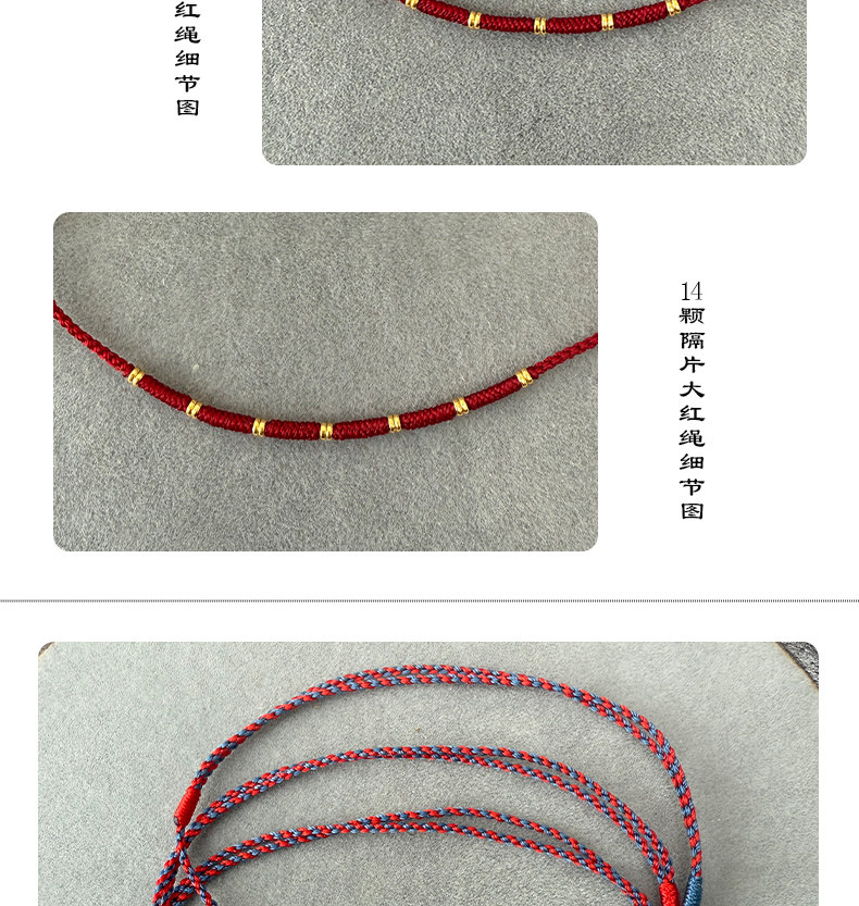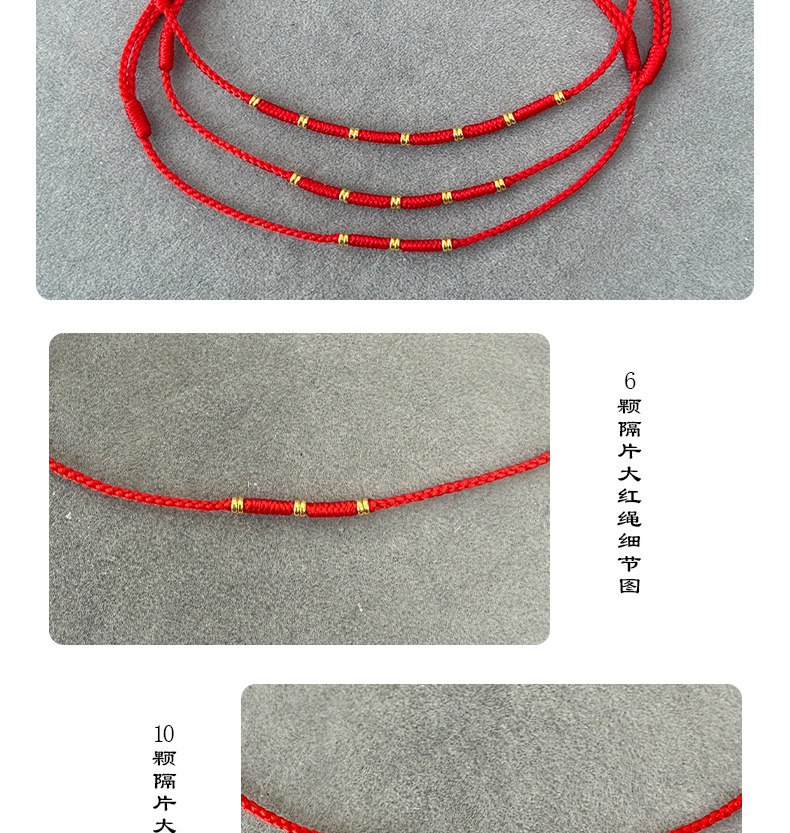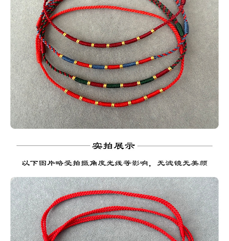 Pure Gold 999 Gold Small Spacer Bead Zodiac Year Handmade Woven Red String Ultra-Thin Bracelet Anklet Dragon Boat Festival Five-Color String