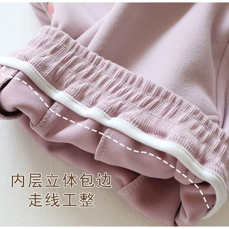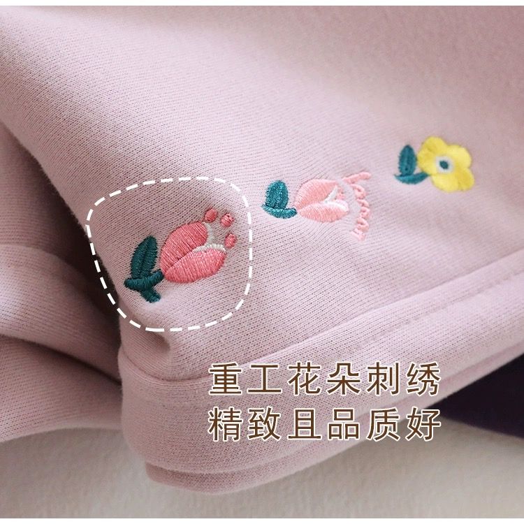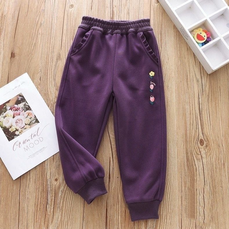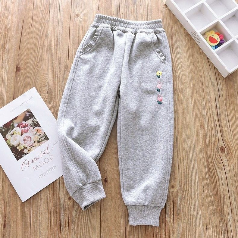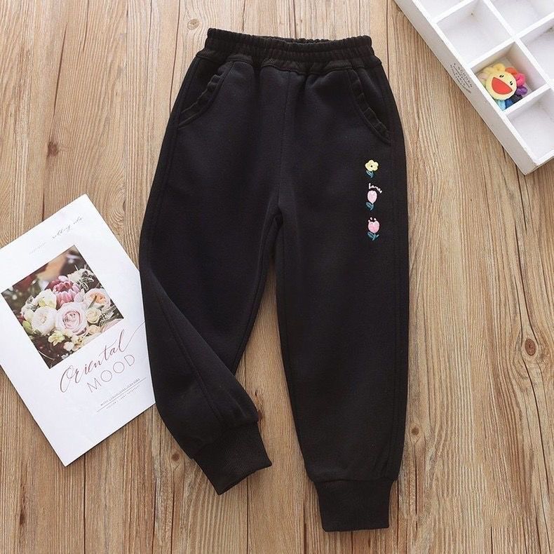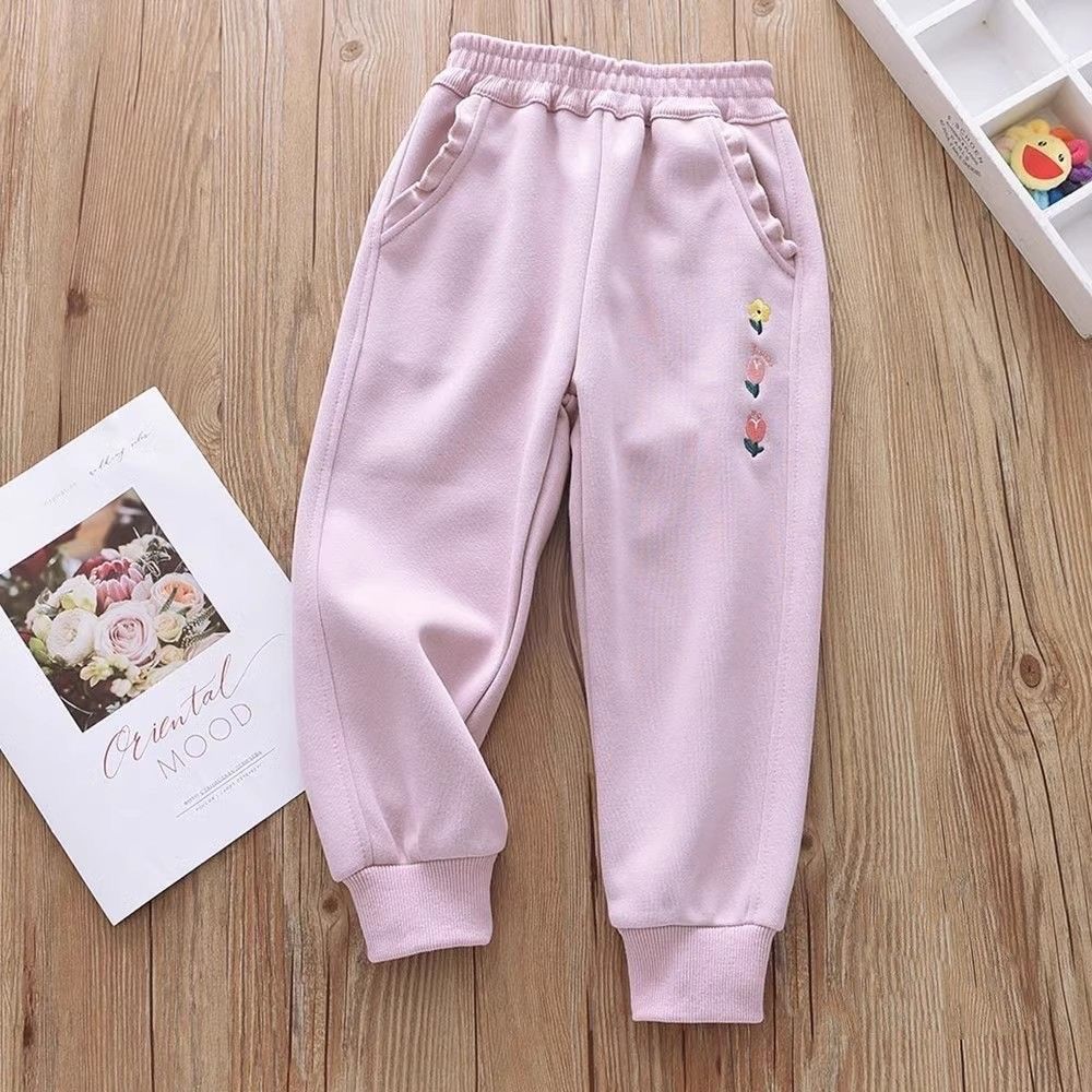 Trendy Girls' Casual Pants for Autumn and Winter, Simple Embroidered Sweatpants for Children, Versatile Pure Cotton Fleece-Lined Joggers for Girls and Toddlers