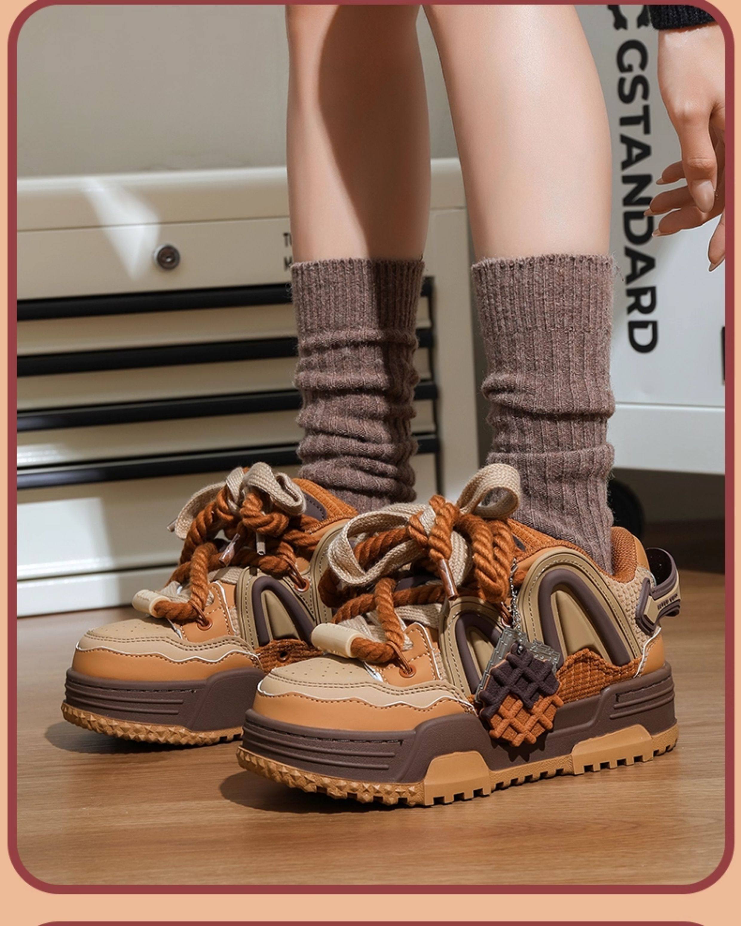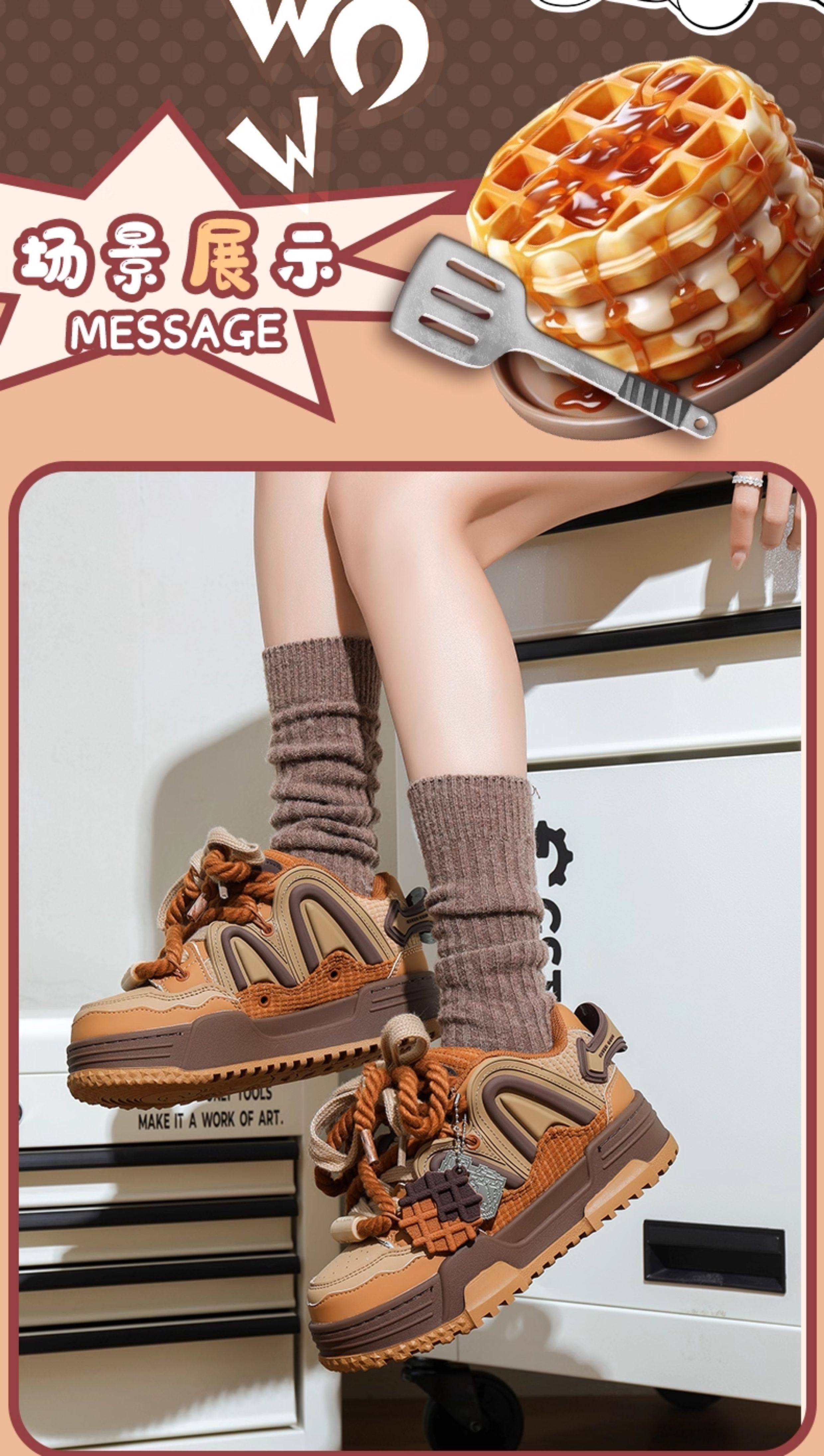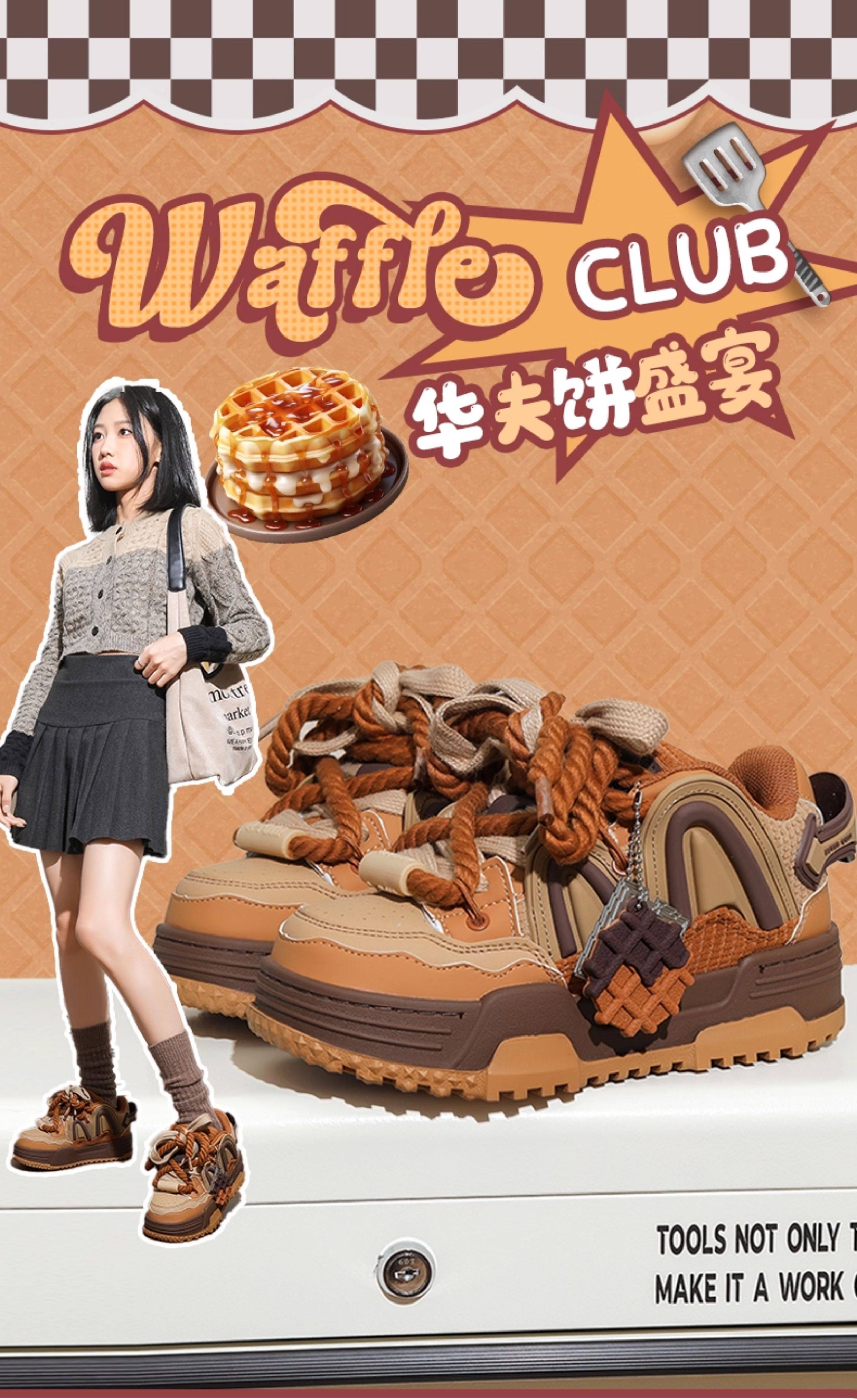 【Zhuo Yuan's Style】Waffle Bread Shoes for Women, New Popular Autumn Thick-Soled Shoes, Versatile Casual Sneakers for Men