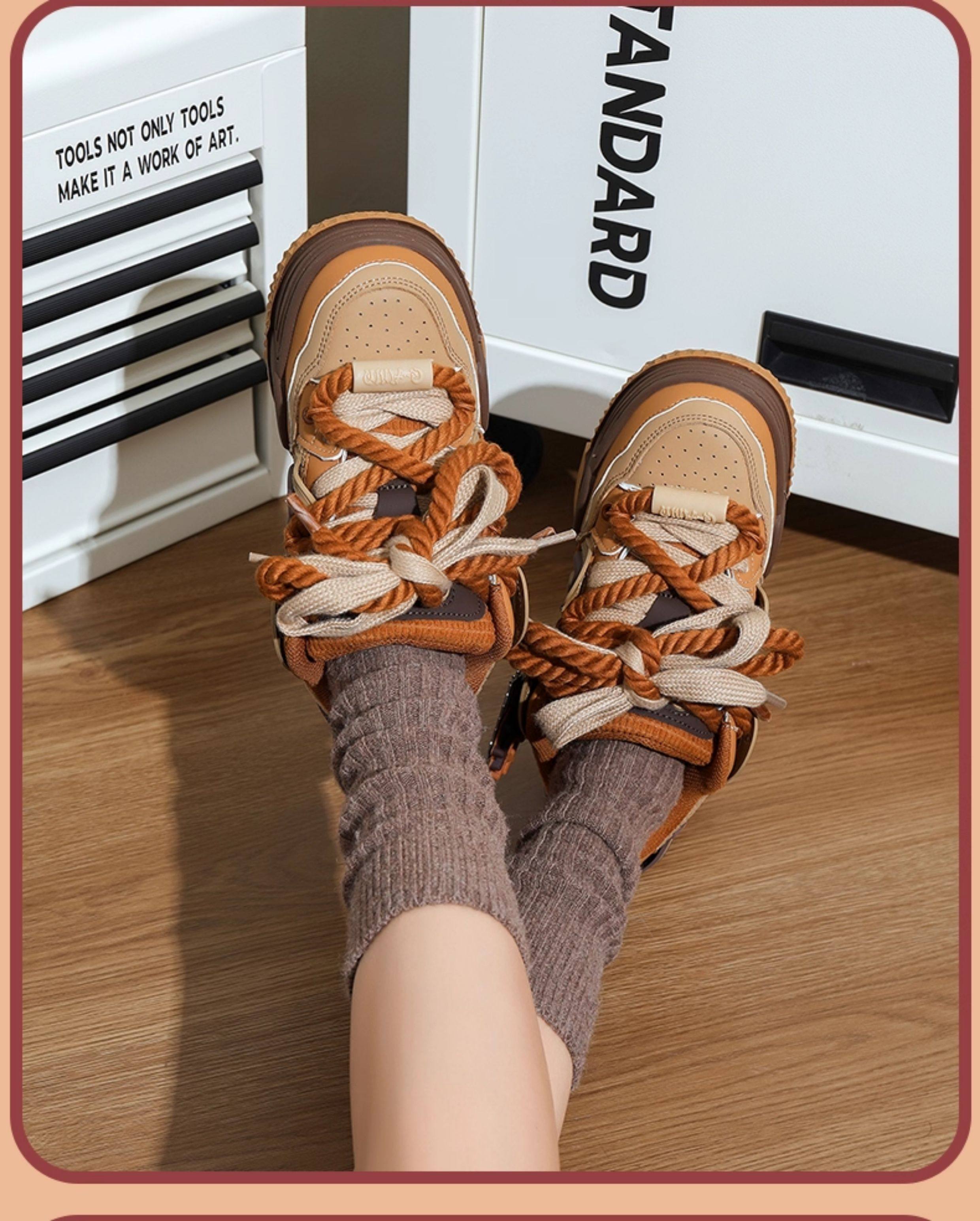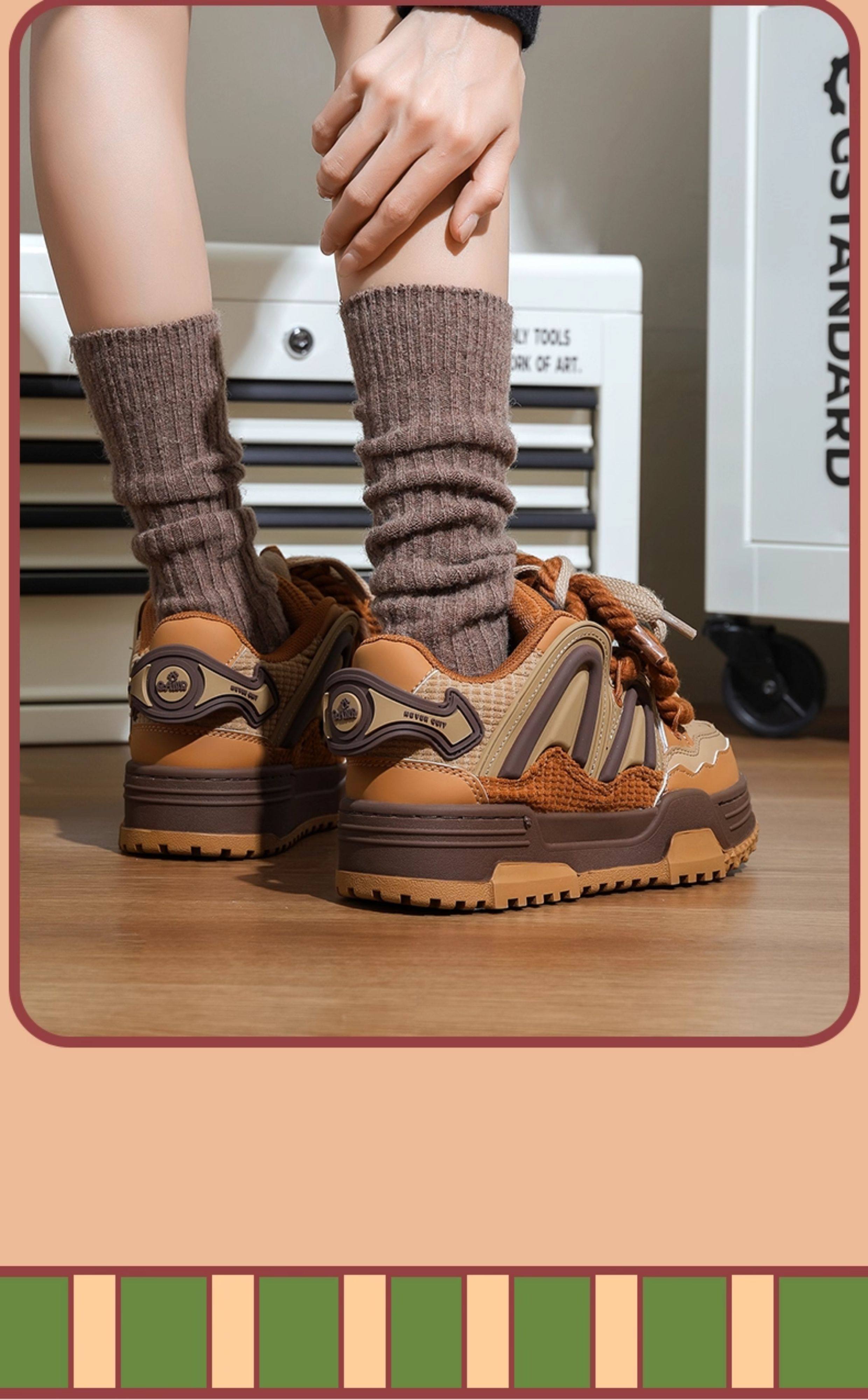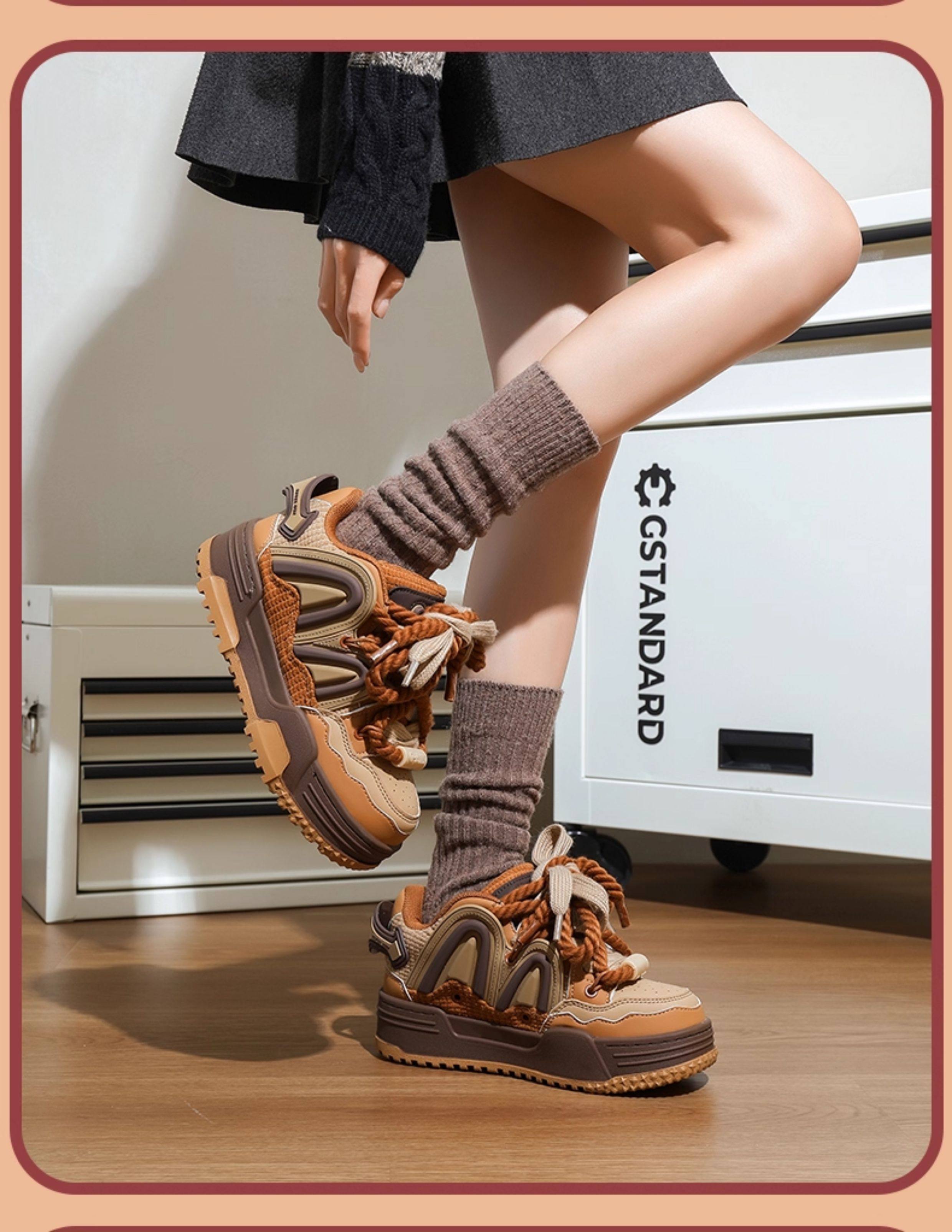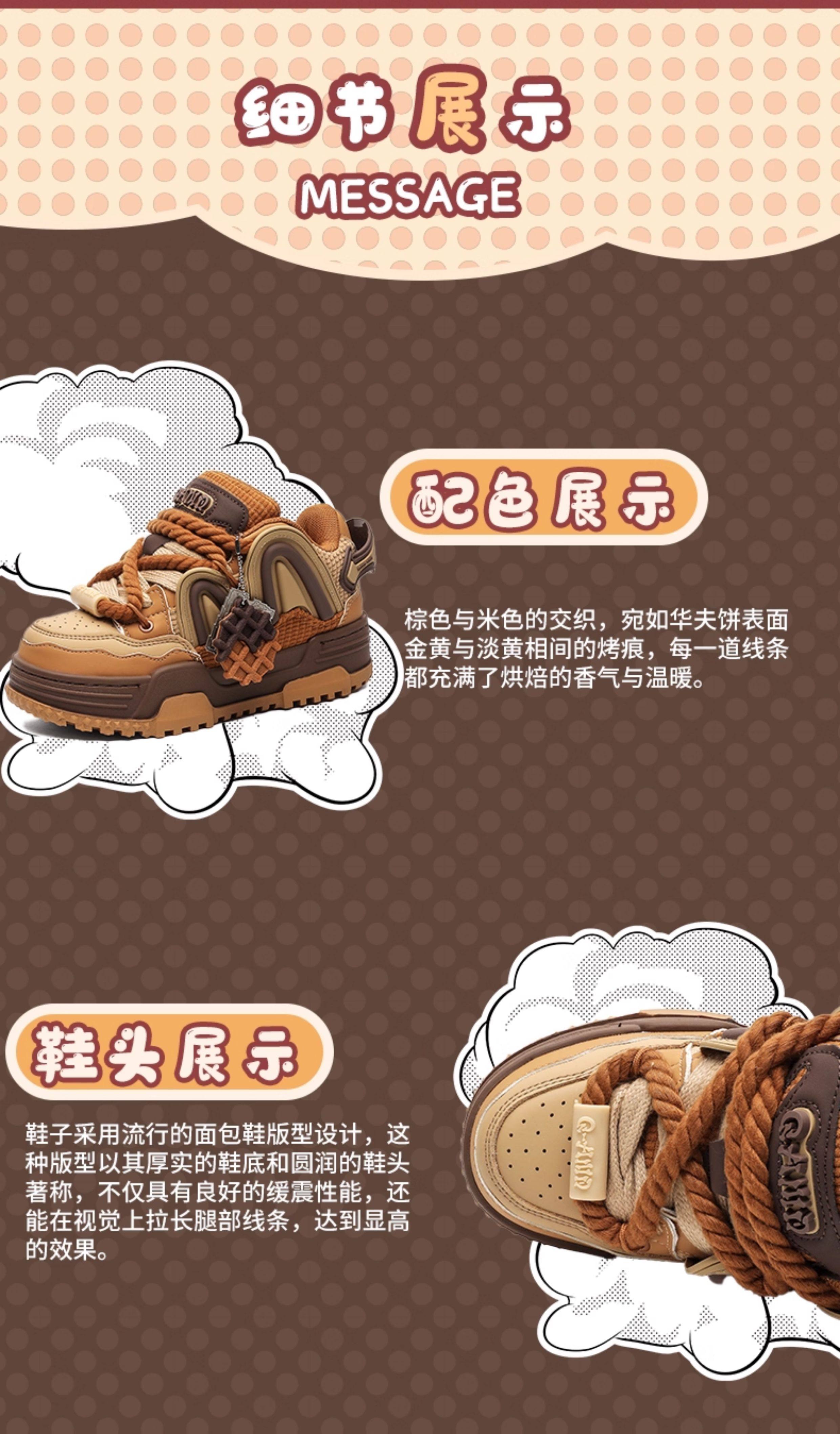 【Zhuo Yuan's Style】Waffle Bread Shoes for Women, New Popular Autumn Thick-Soled Shoes, Versatile Casual Sneakers for Men