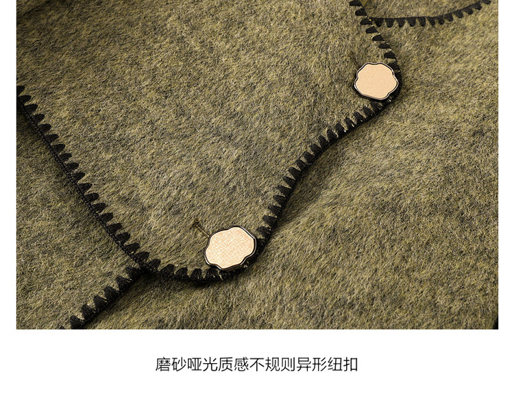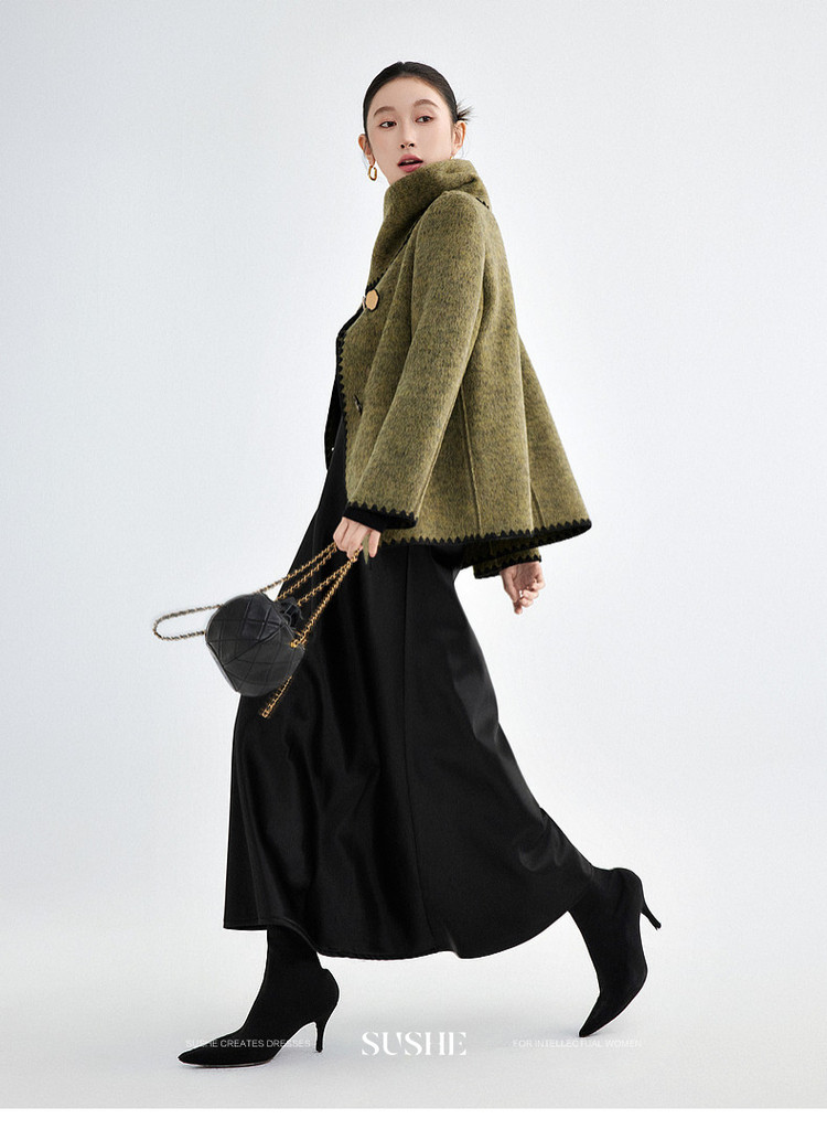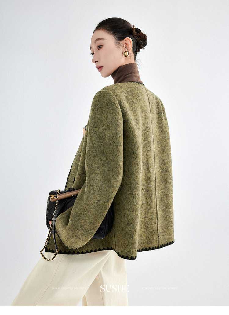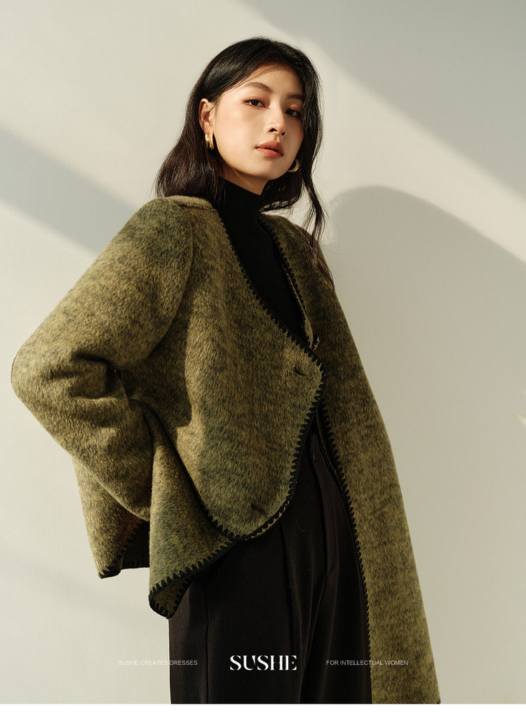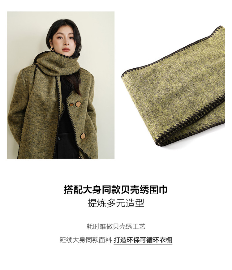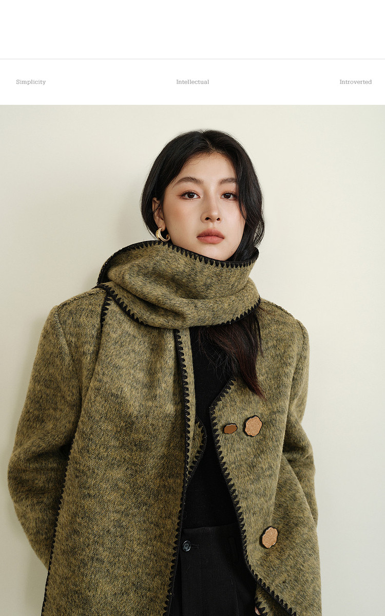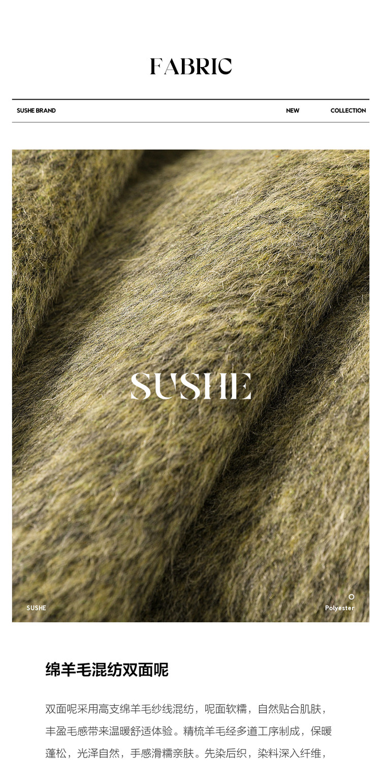 Sushe Deconstructed Niche Design Green Scarf Double-Sided Wool Coat for Women Winter