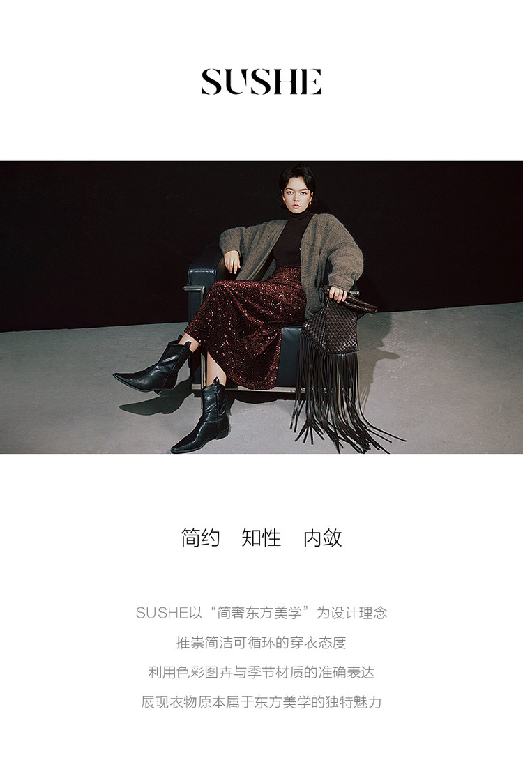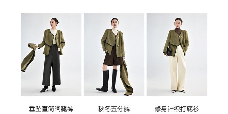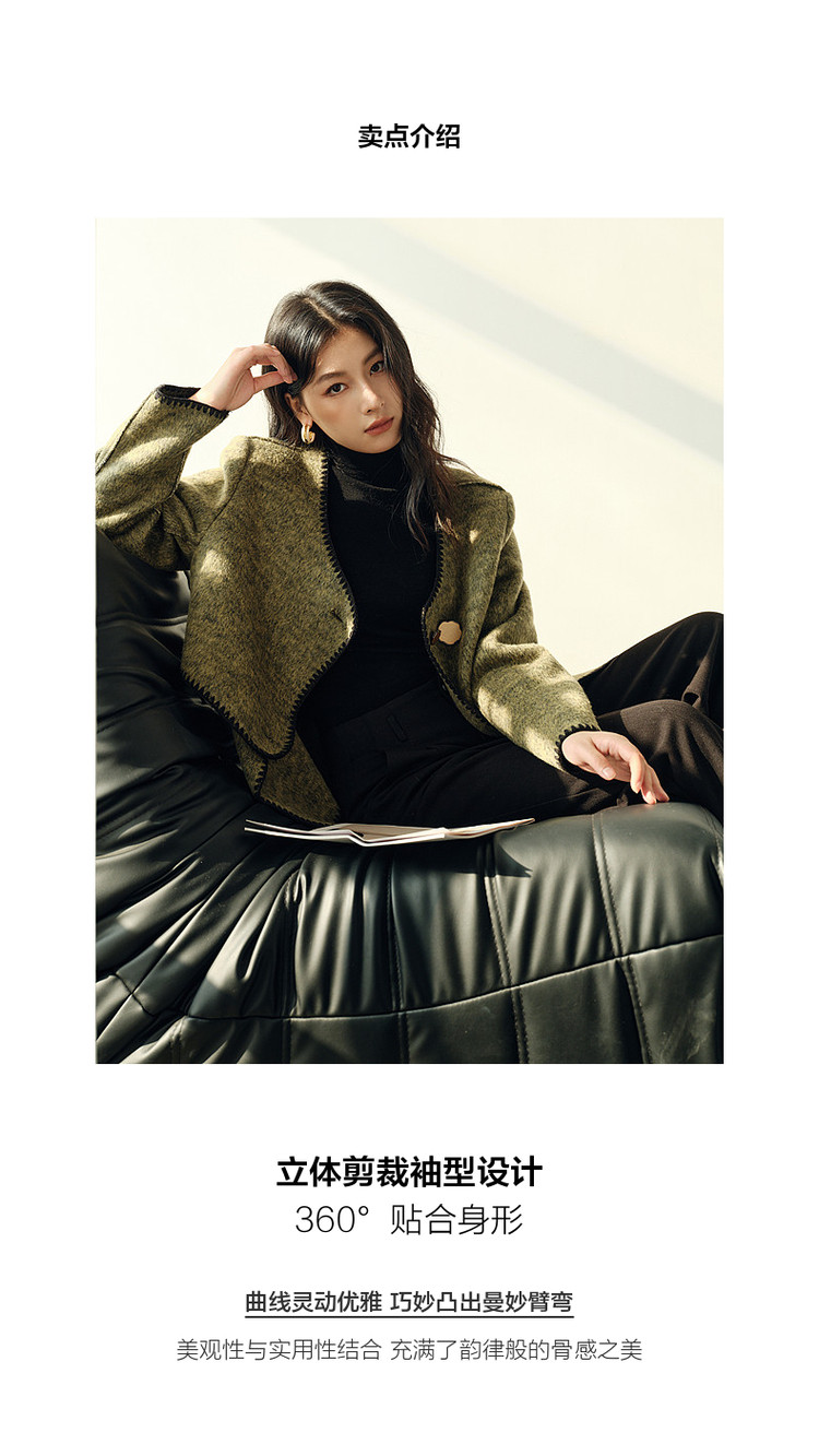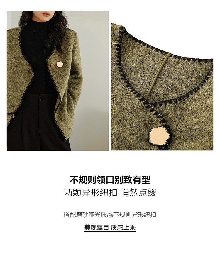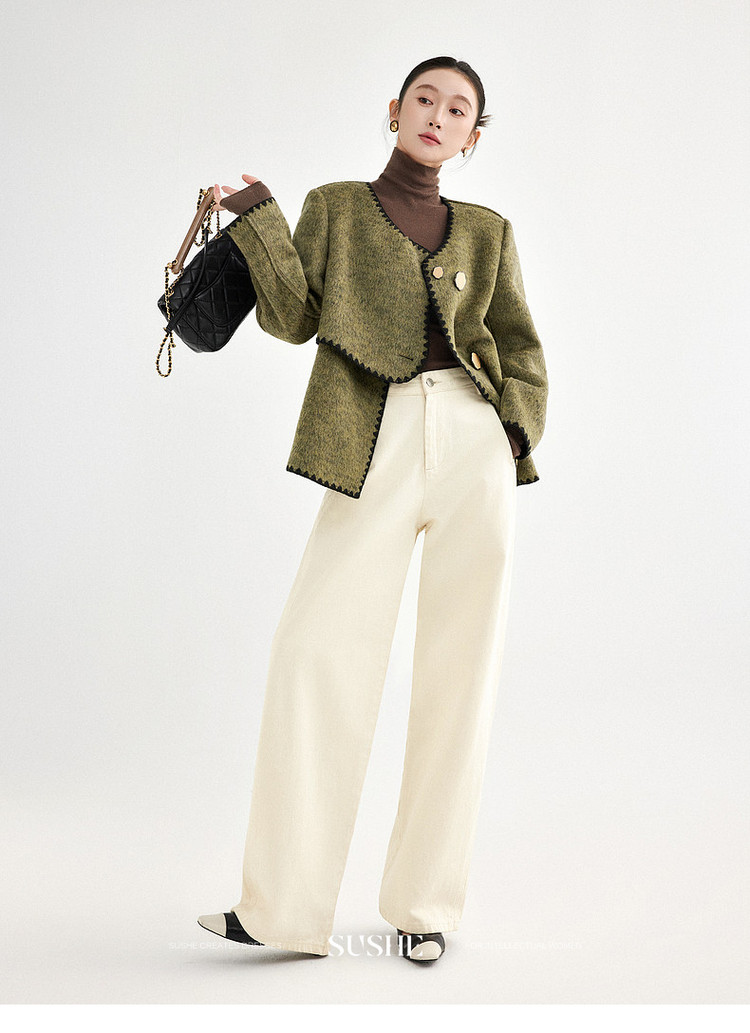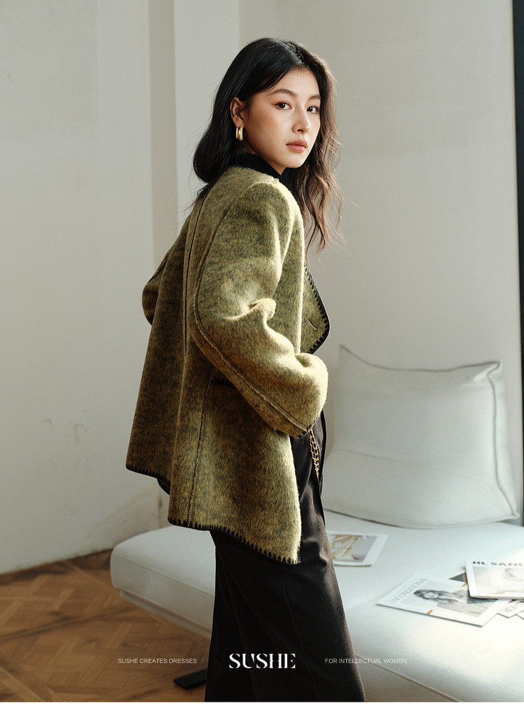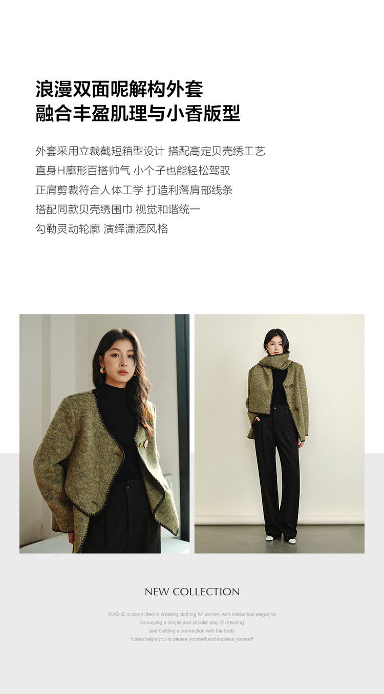 Sushe Deconstructed Niche Design Green Scarf Double-Sided Wool Coat for Women Winter
