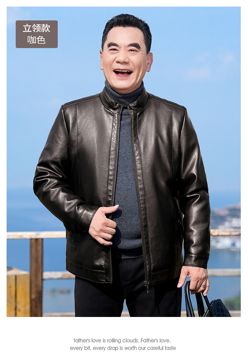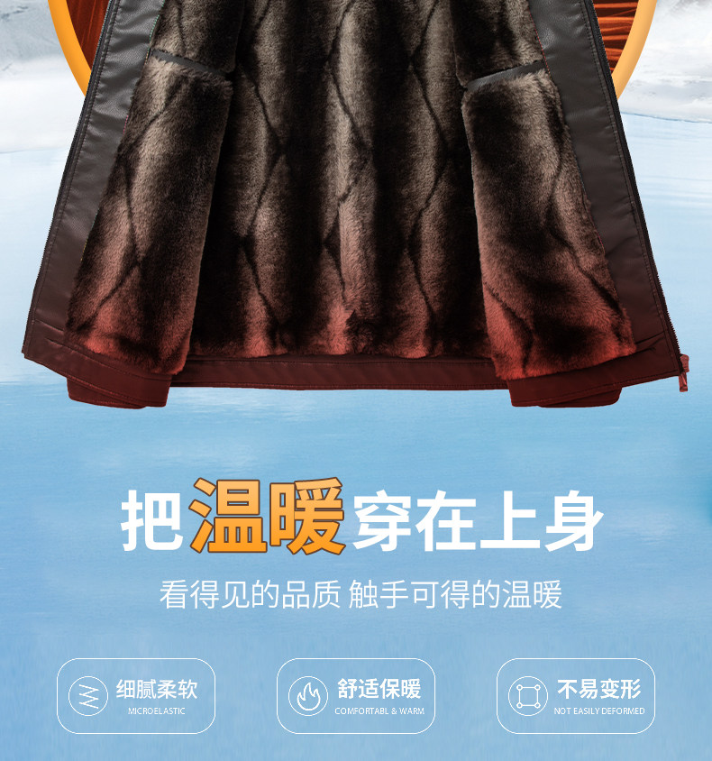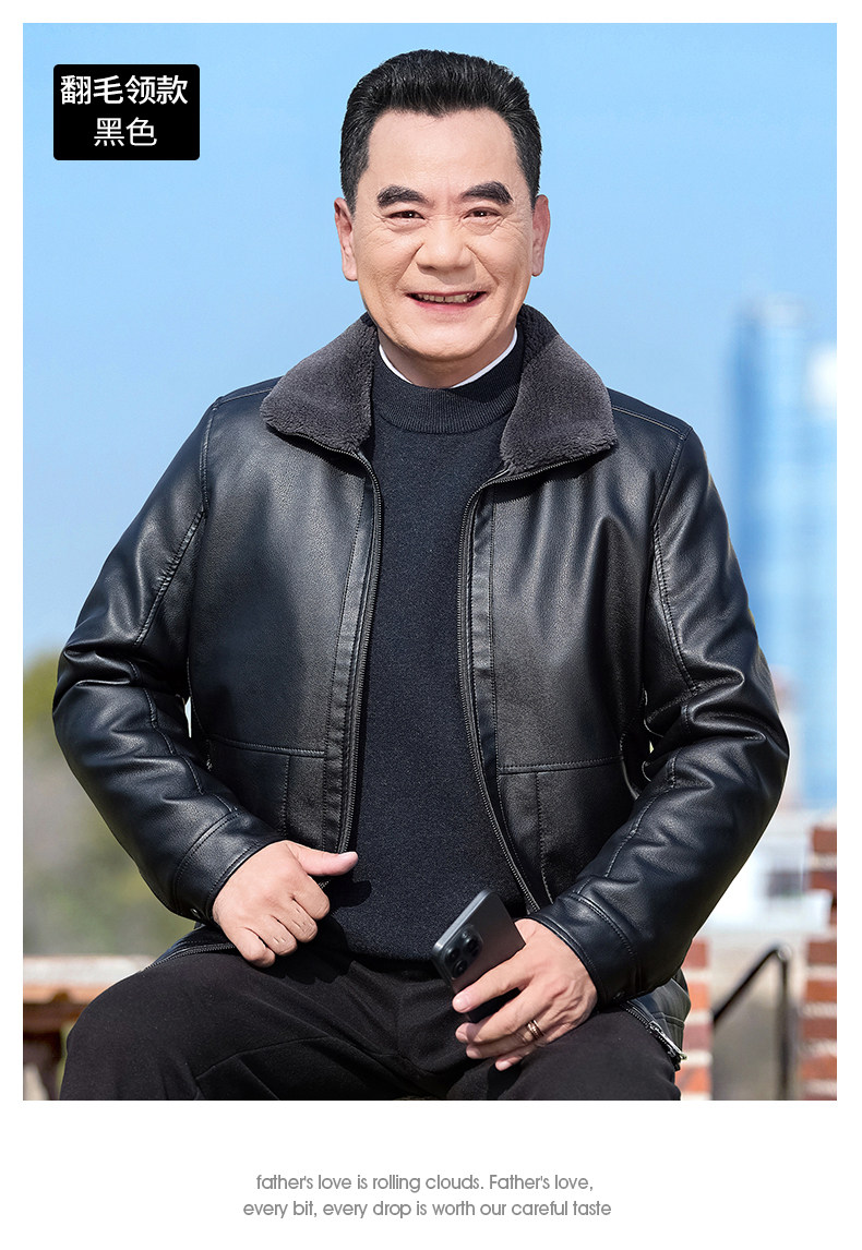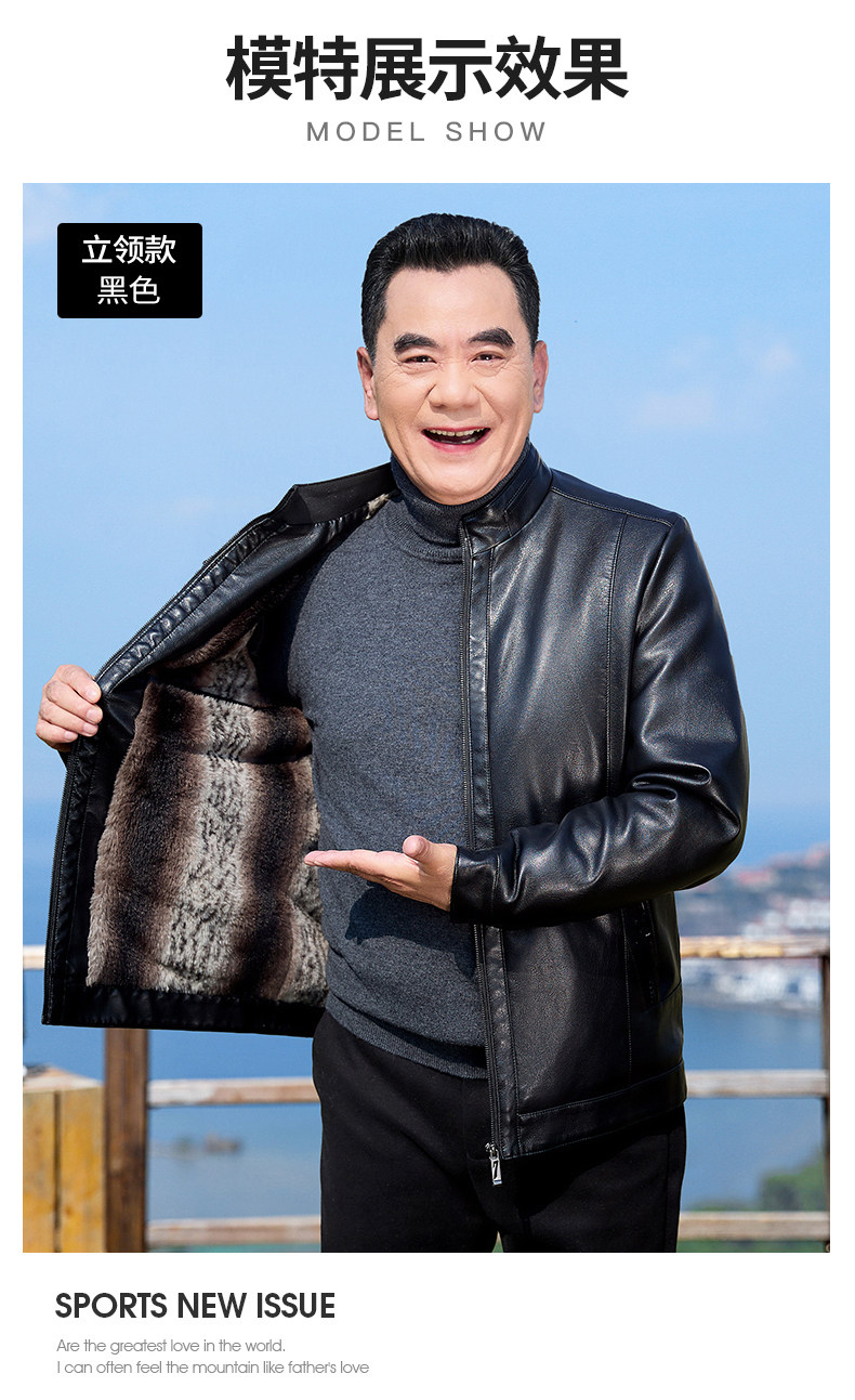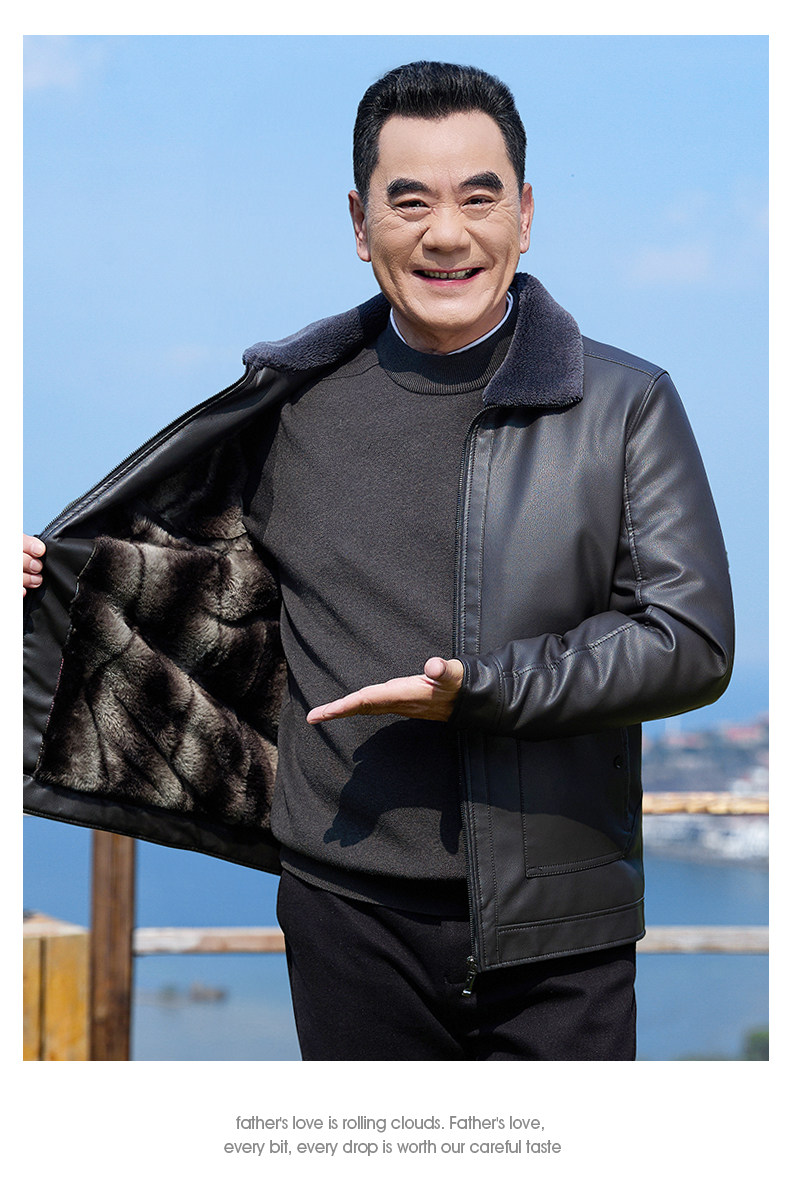 Vintage Car Dad Winter Coat Faux Mink Velvet Thickened Leather Jacket Men's Middle-Aged Warm Leather Jacket