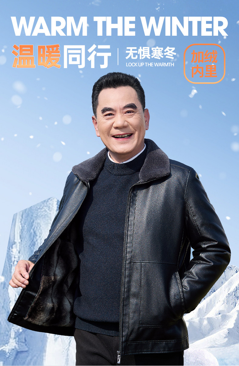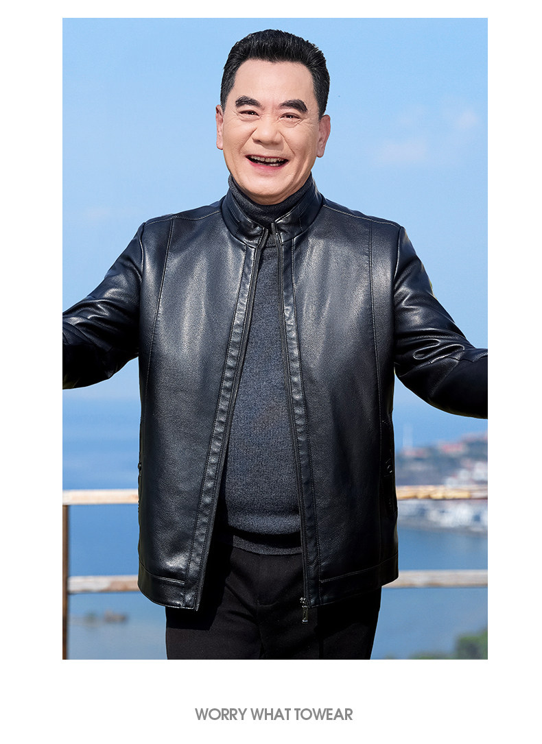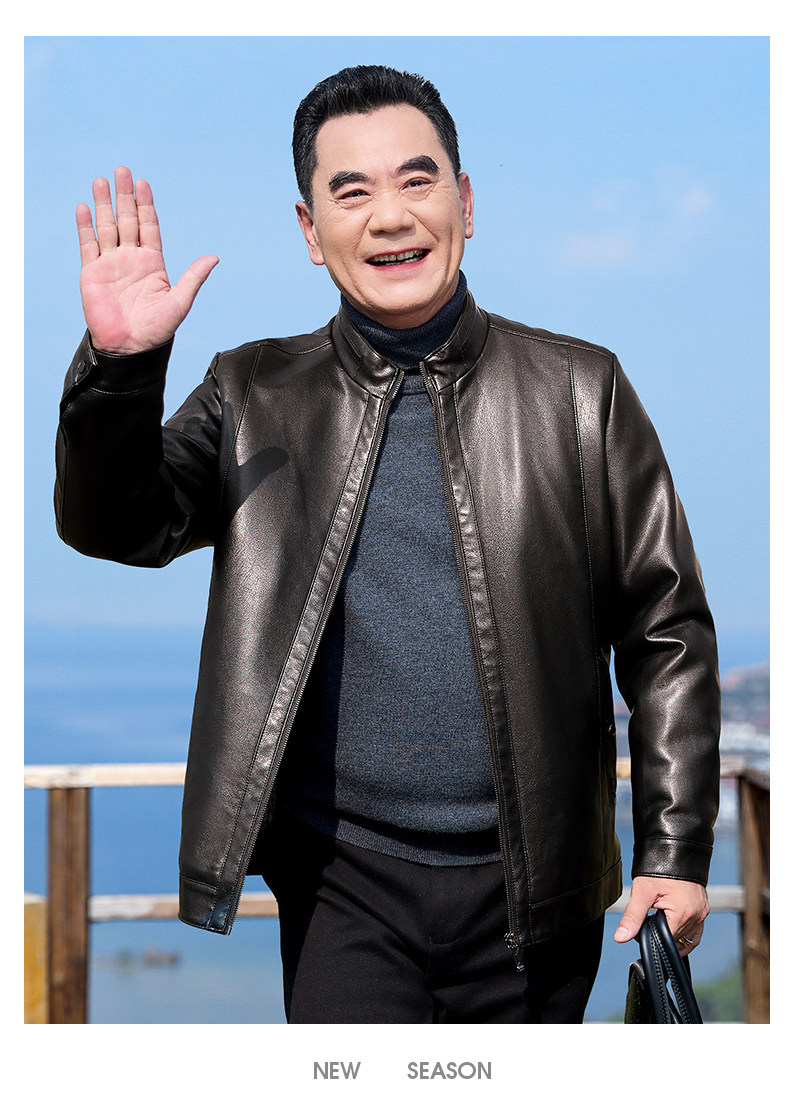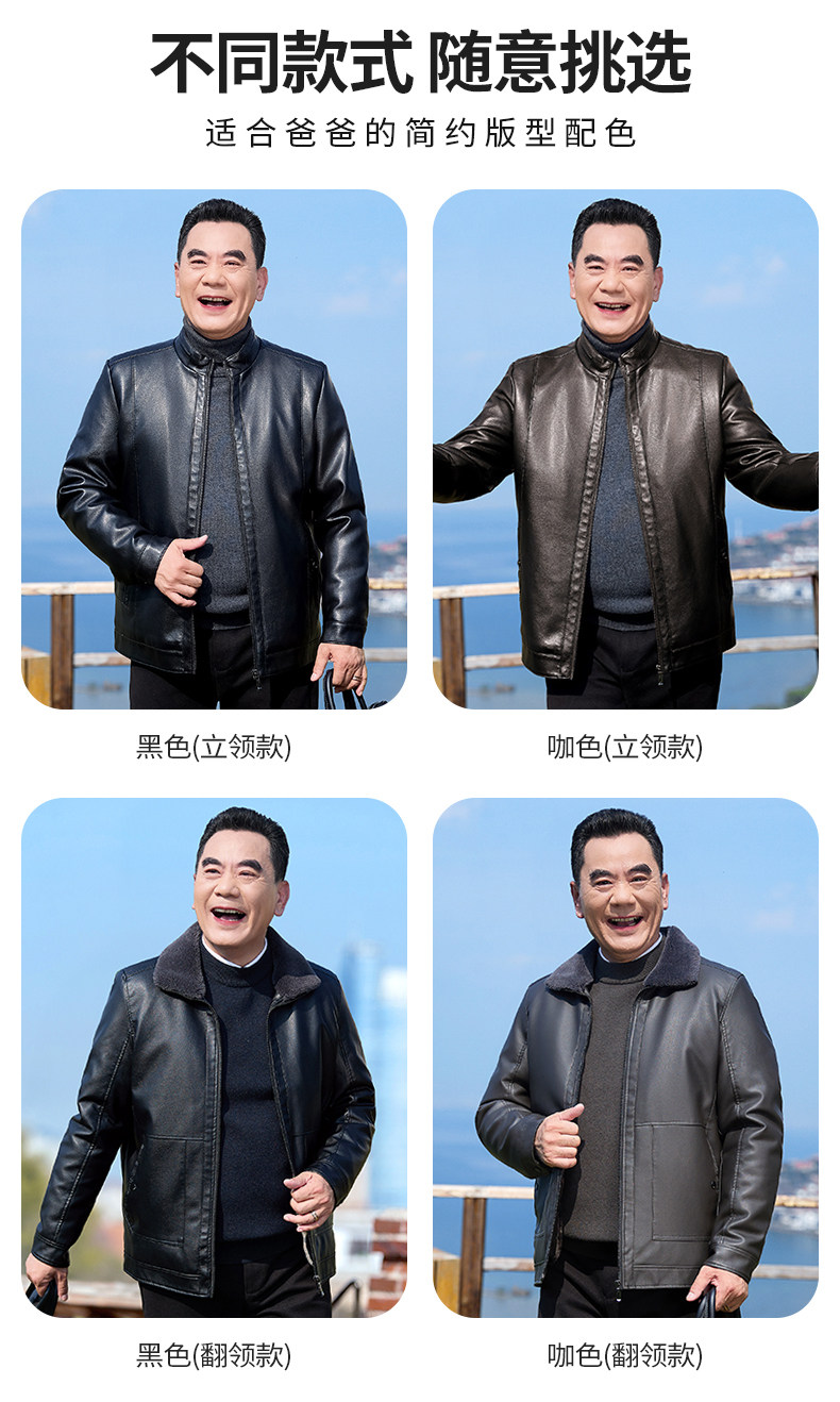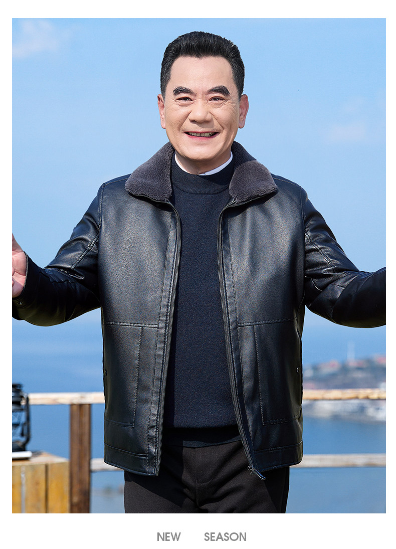 Vintage Car Dad Winter Coat Faux Mink Velvet Thickened Leather Jacket Men's Middle-Aged Warm Leather Jacket