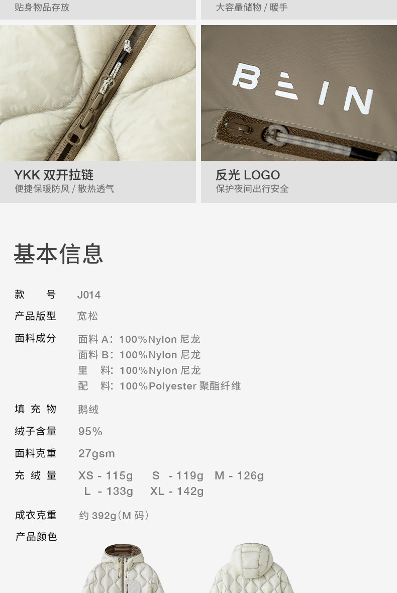 Bein Space New Autumn and Winter Astronaut 800-Puff Anti-Pilling Neutral Loose Lightweight down Jacket J014