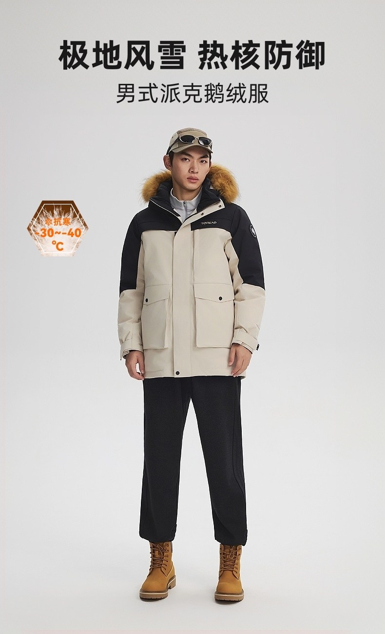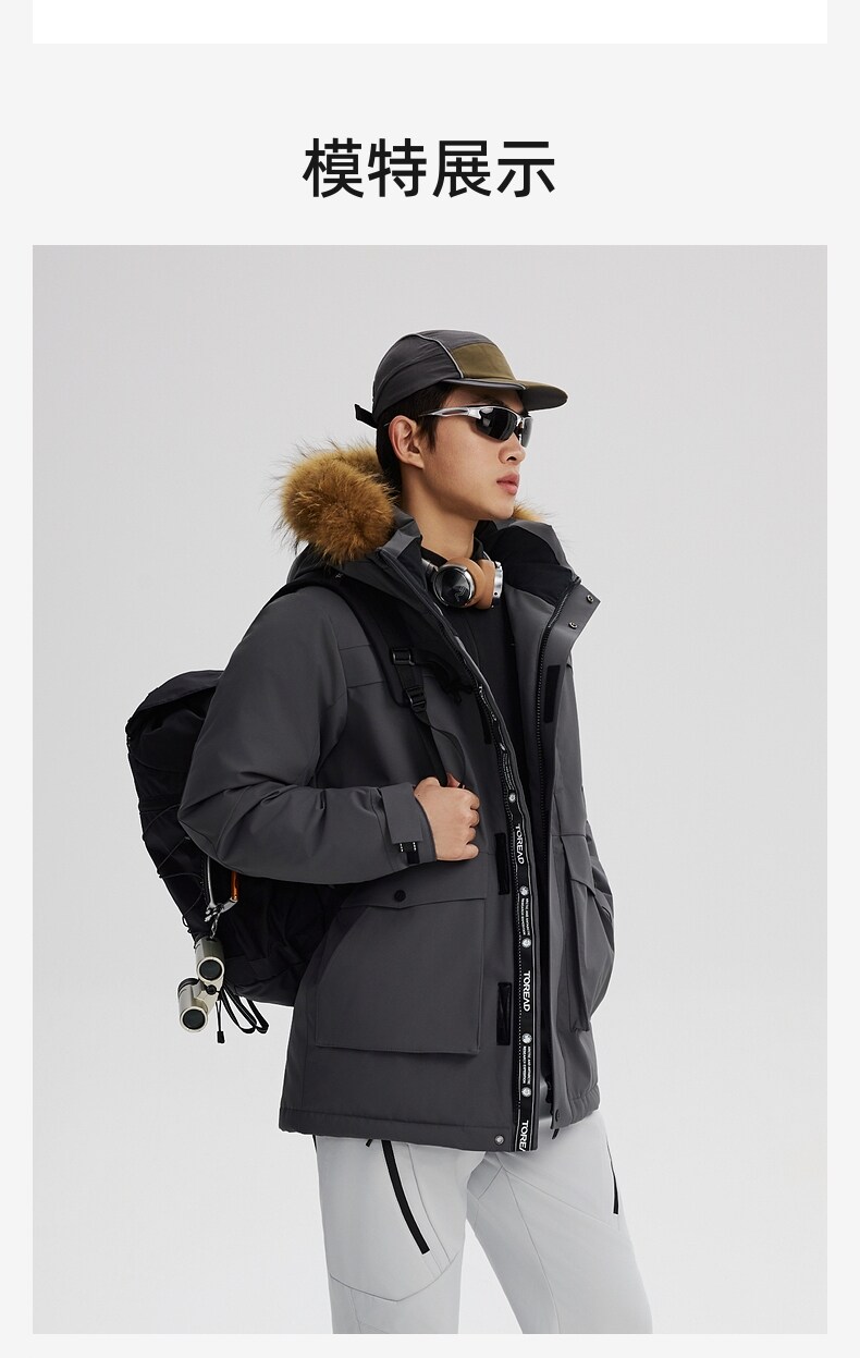 [Hu Ke Live Room] Goose down Explorer down Jacket for Men with Fur Collar, Mid-Length Thickened Workwear Parka down Jacket for Women