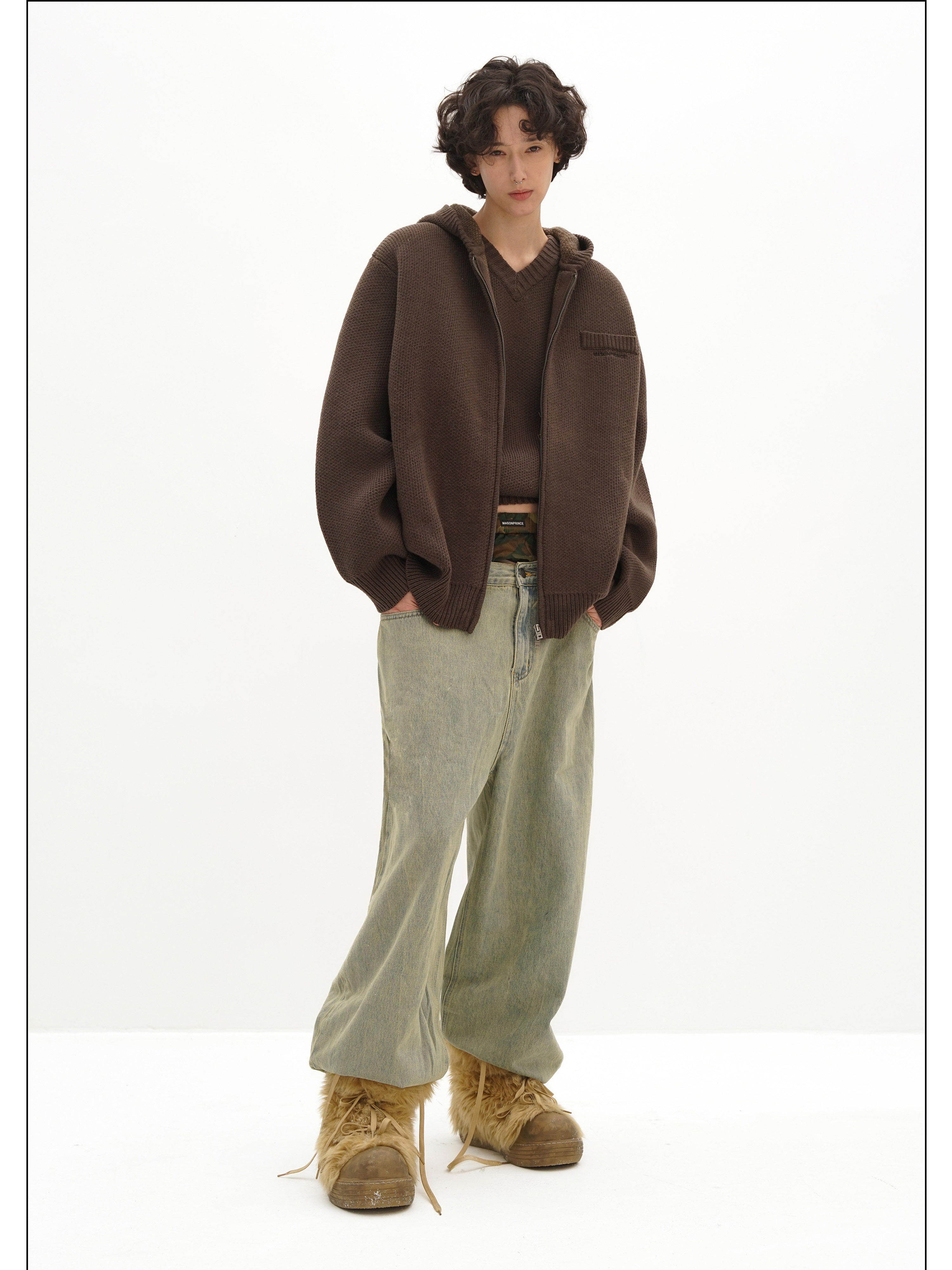 【Merino Wool】Masonprince* Lazy Winter High-Intelligence Self-Heating Hooded Zipper Cardigan