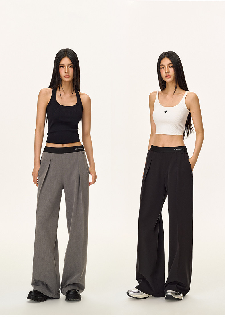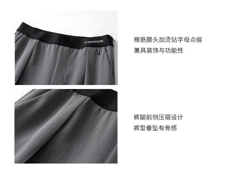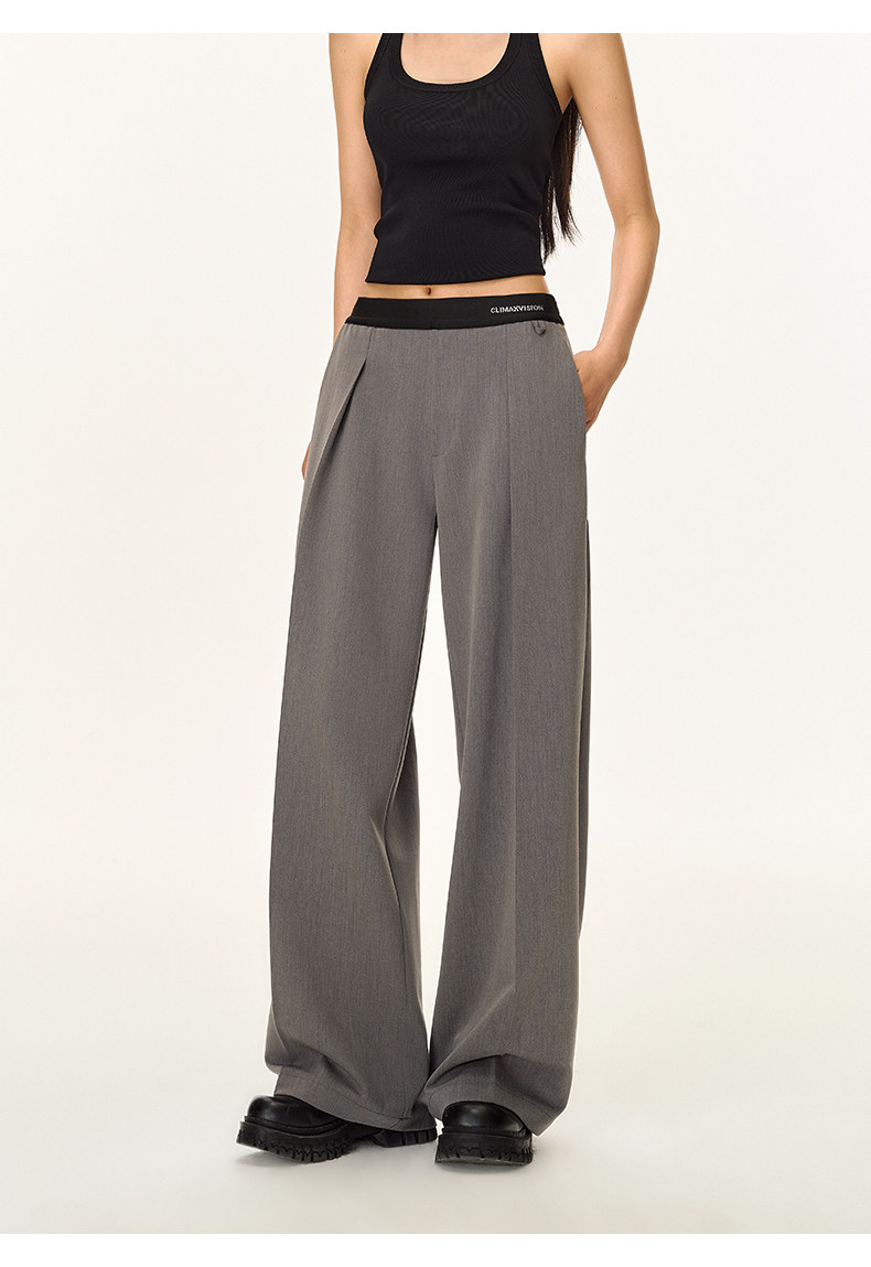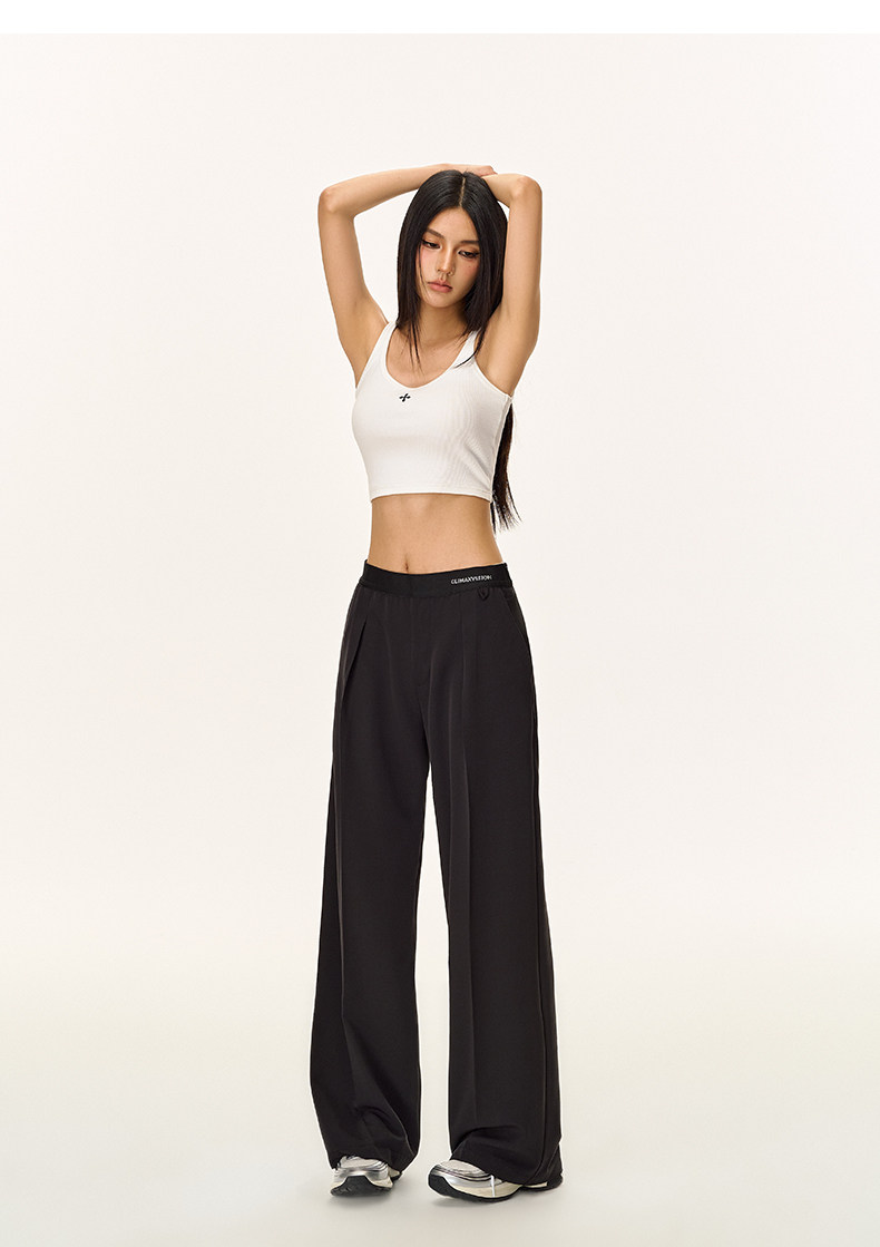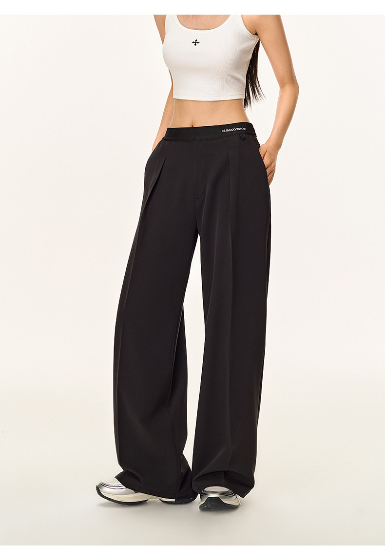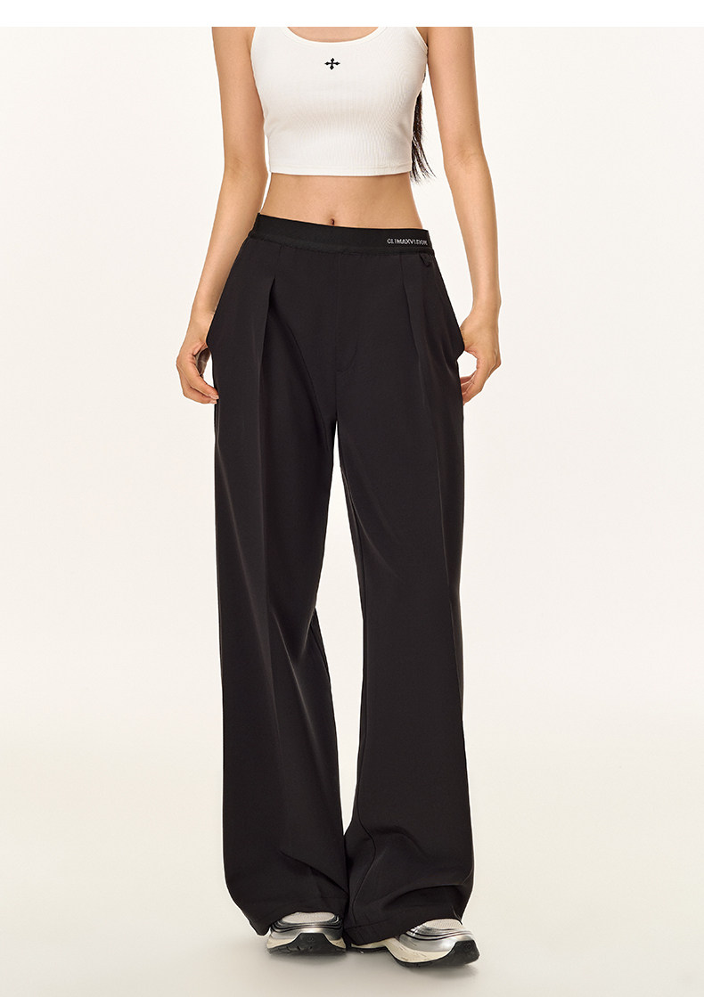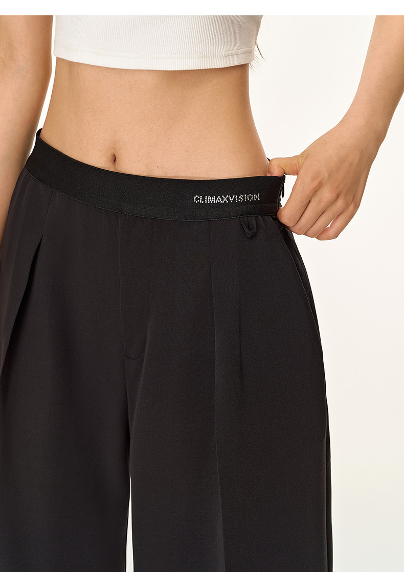 Climax Vision Skin-Friendly, Dry-Feeling, Rhinestone Logo Patchwork, Elastic Waist, Slimming Straight-Leg Dress Pants for Women