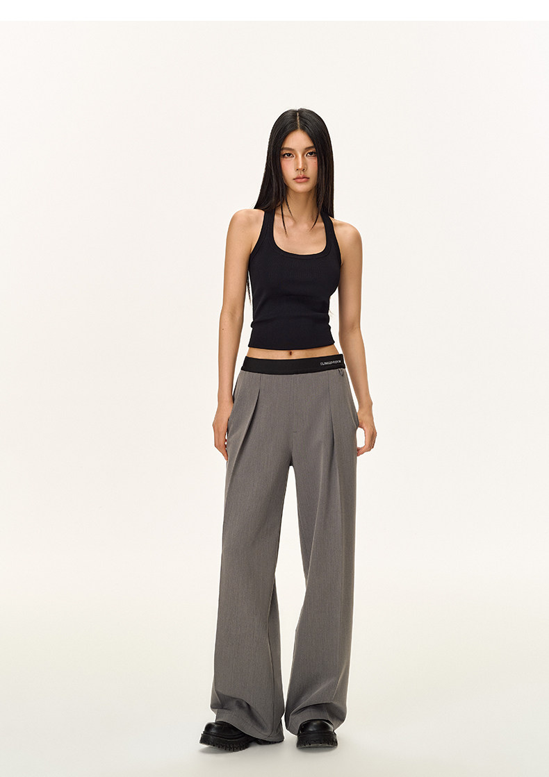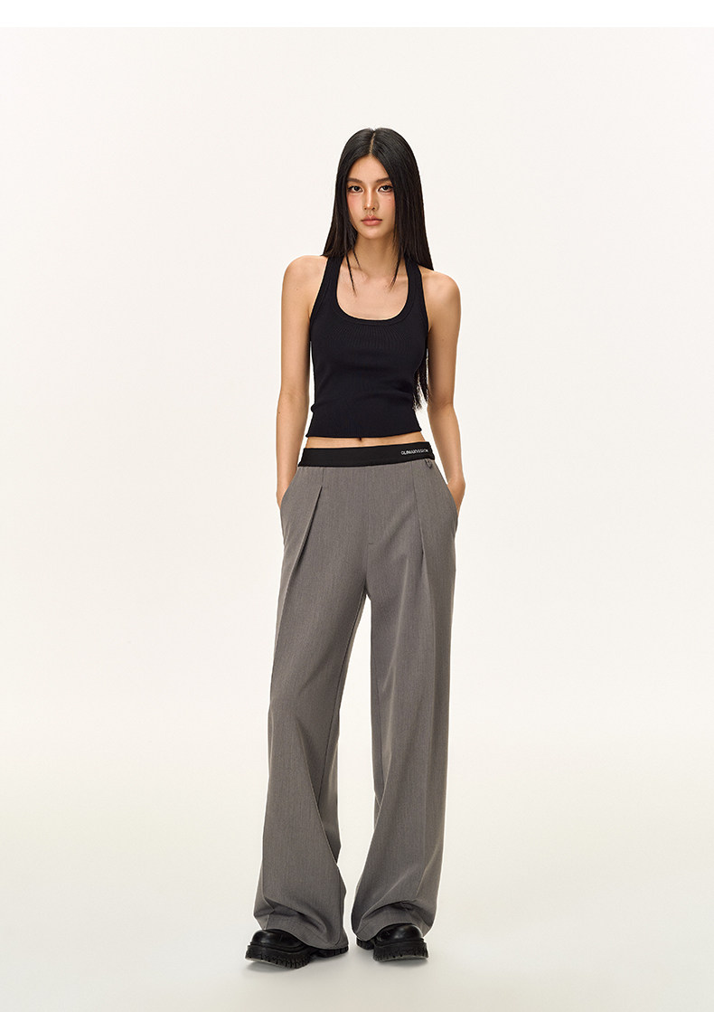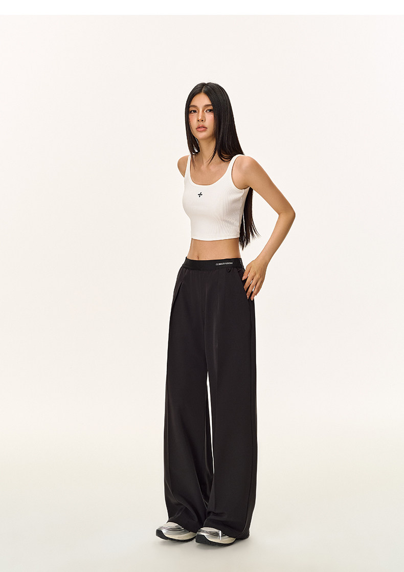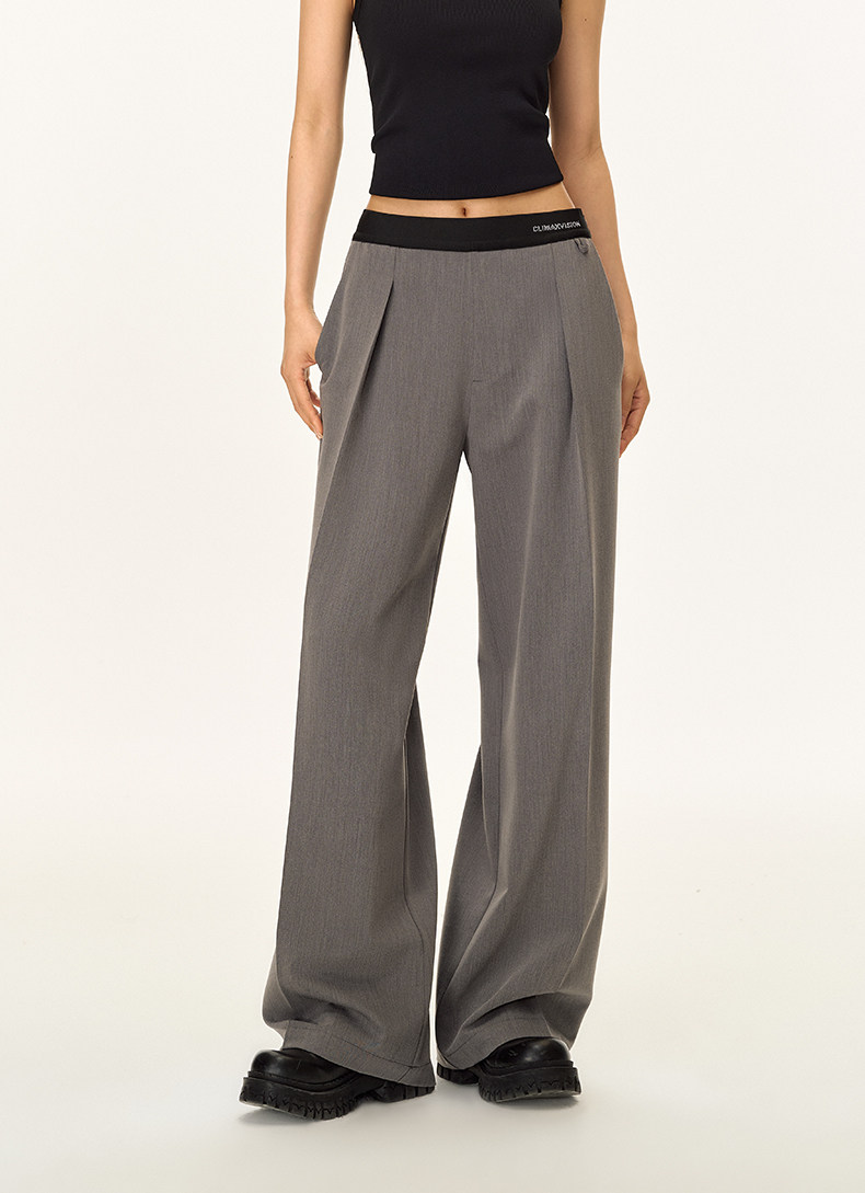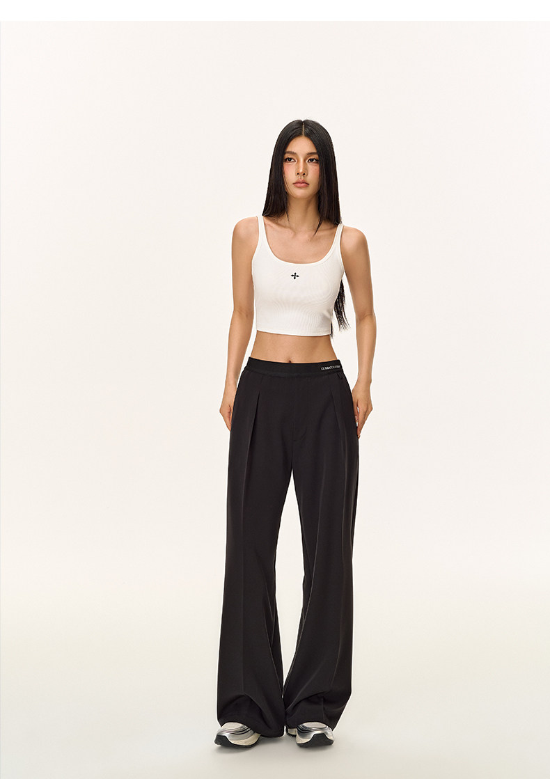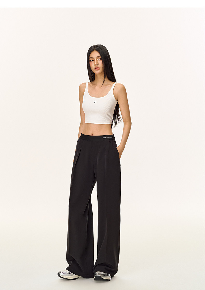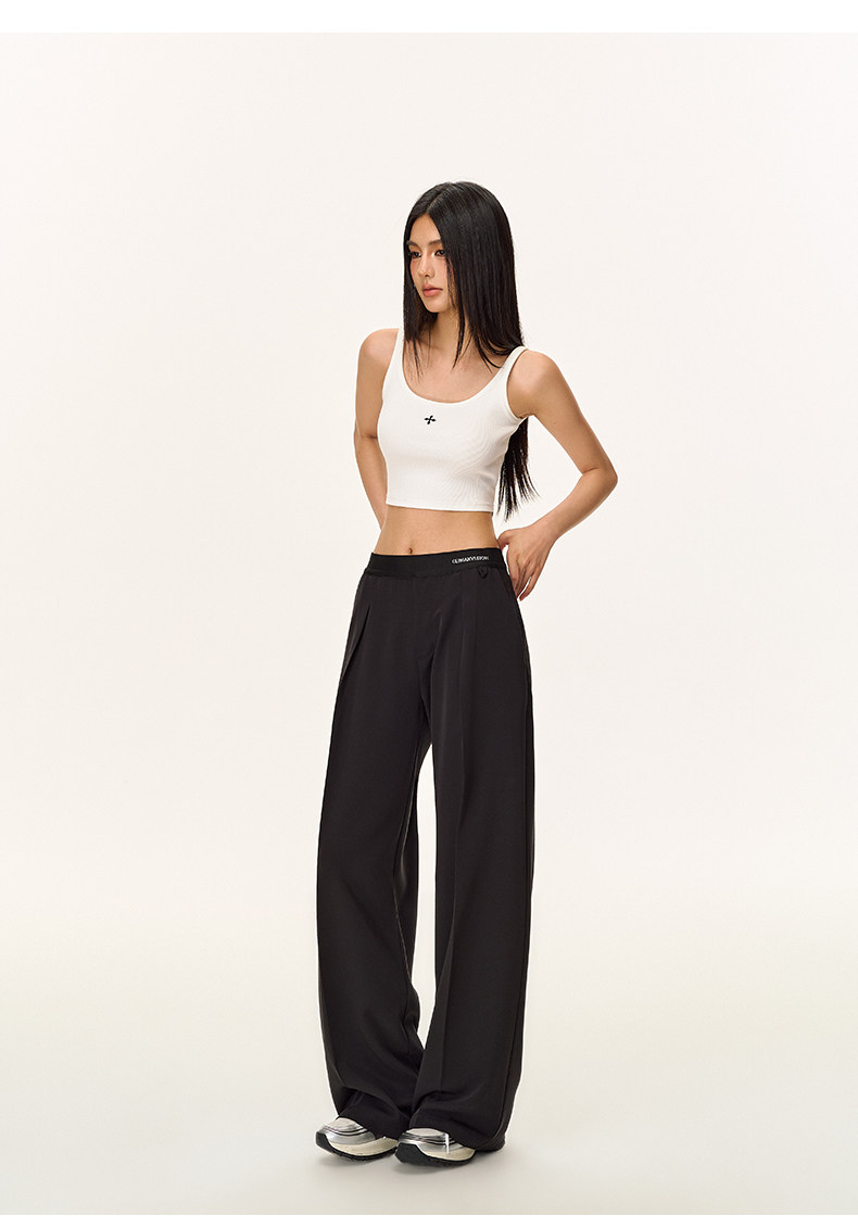 Climax Vision Skin-Friendly, Dry-Feeling, Rhinestone Logo Patchwork, Elastic Waist, Slimming Straight-Leg Dress Pants for Women