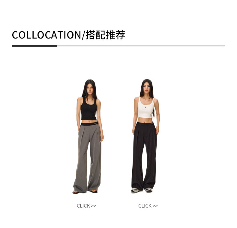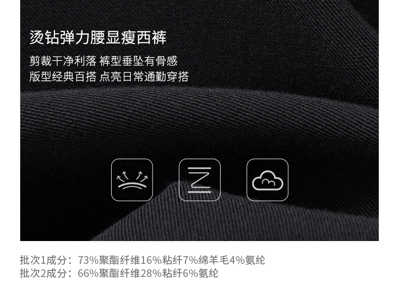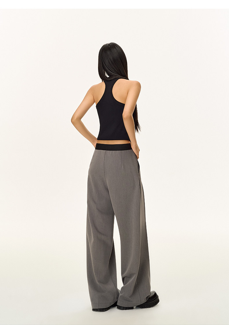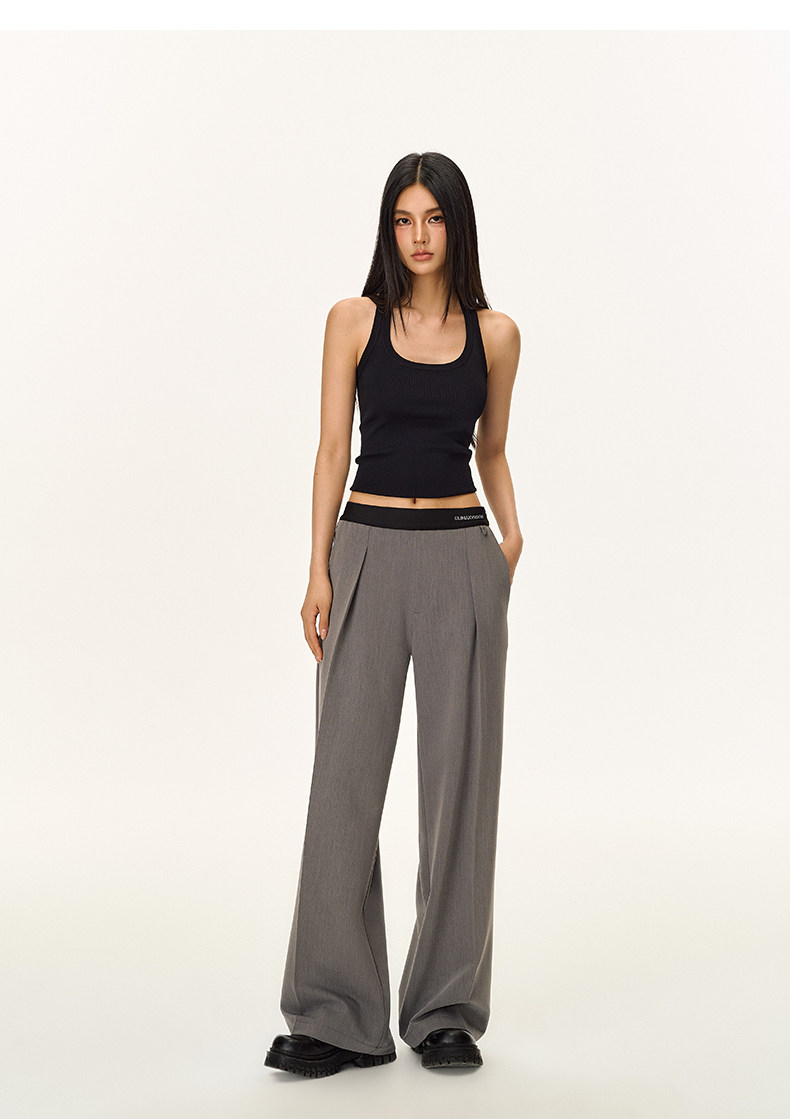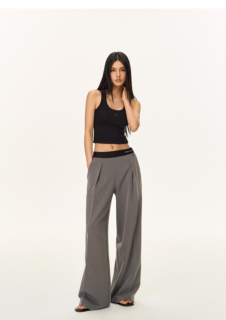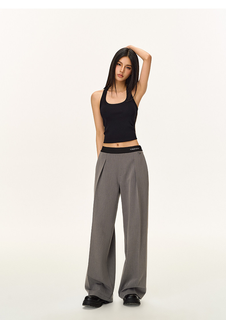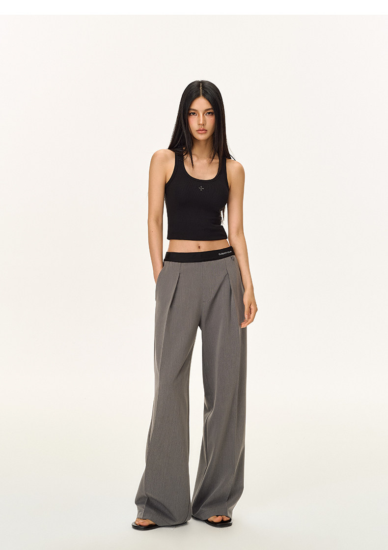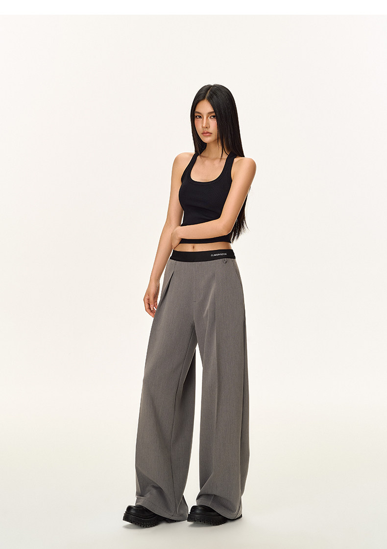 Climax Vision Skin-Friendly, Dry-Feeling, Rhinestone Logo Patchwork, Elastic Waist, Slimming Straight-Leg Dress Pants for Women
