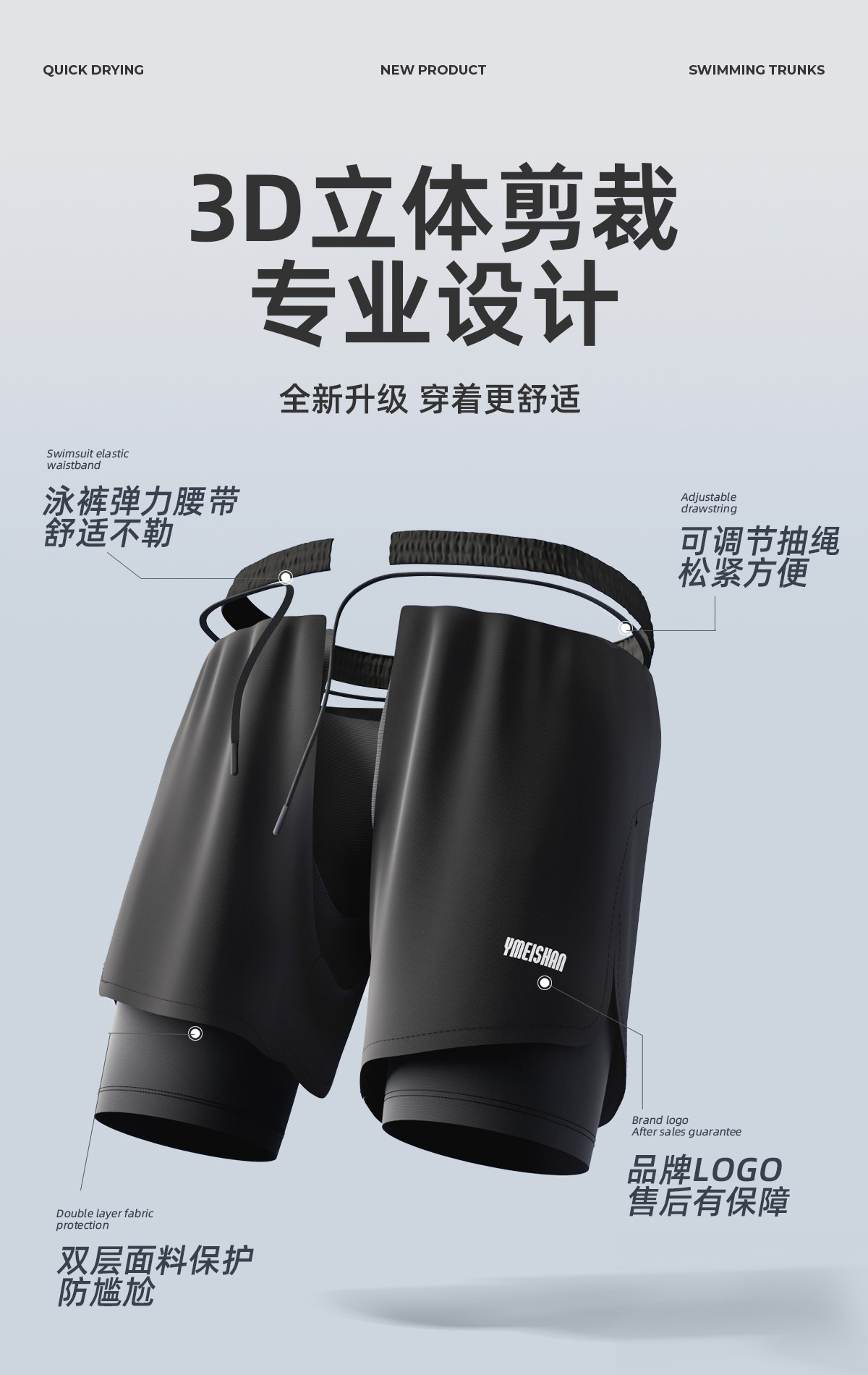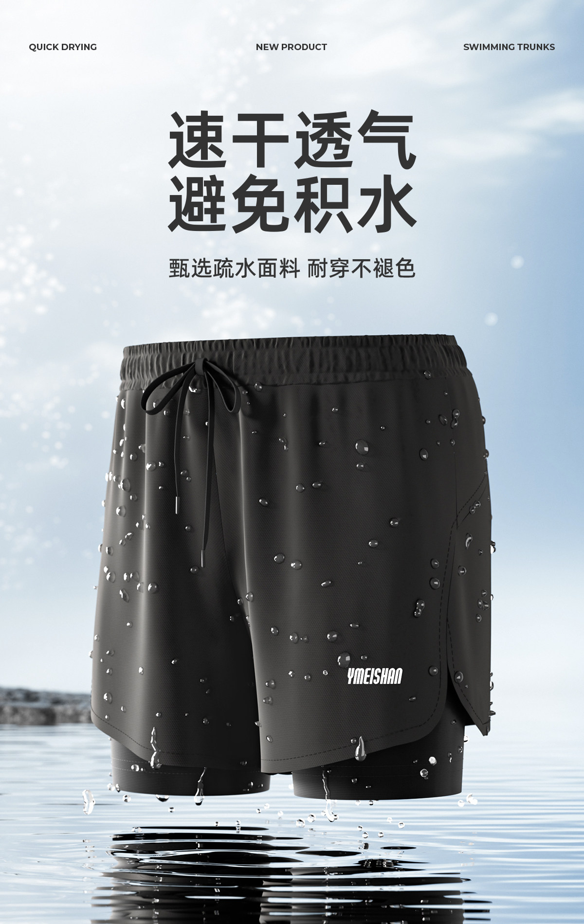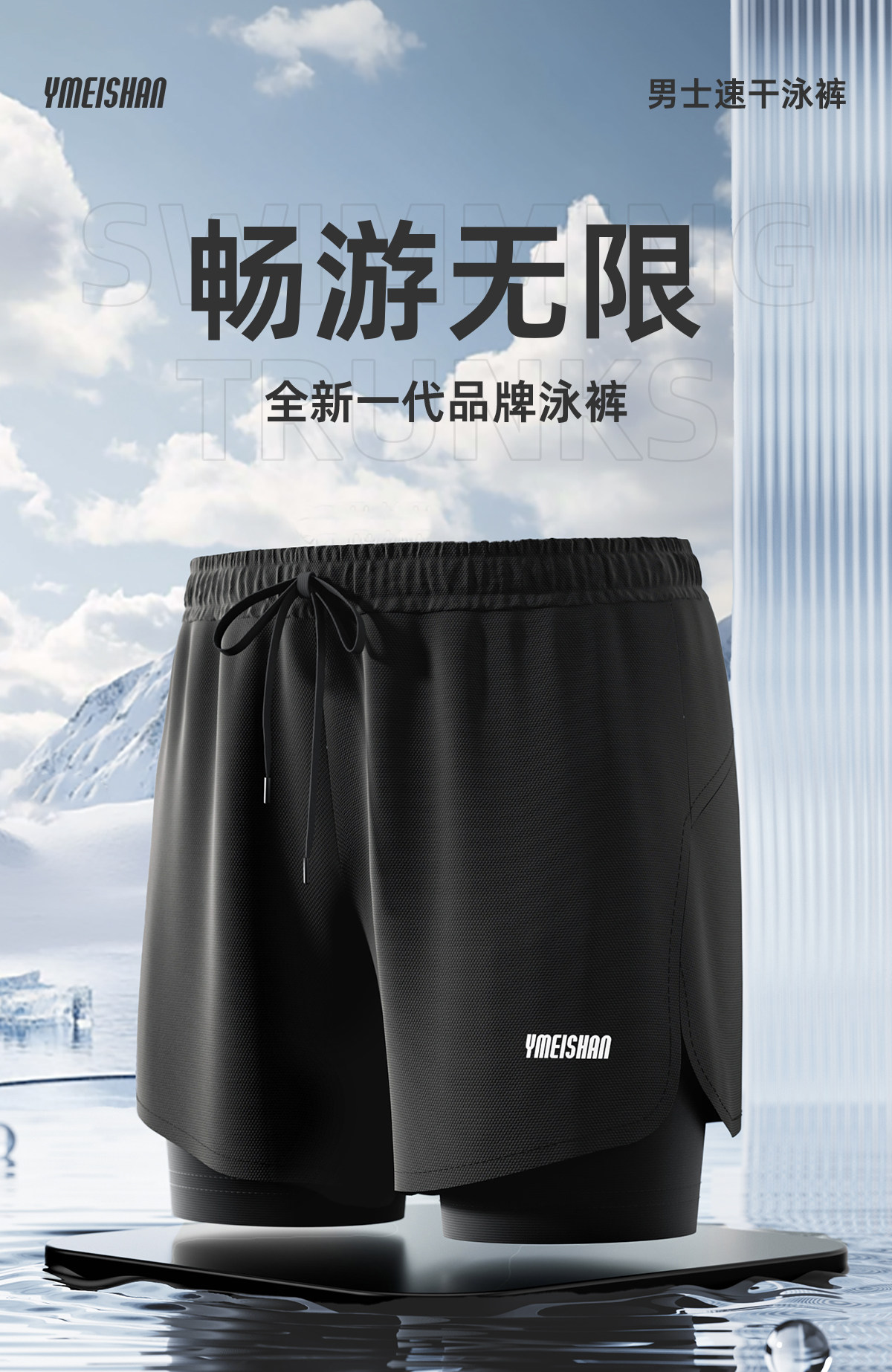 Yimeishan Men's Swimming Trunks, Men's Anti-Embarrassment 2025 New Model, Adult Boys and Teenagers Double-Layer Hot Spring Swimwear