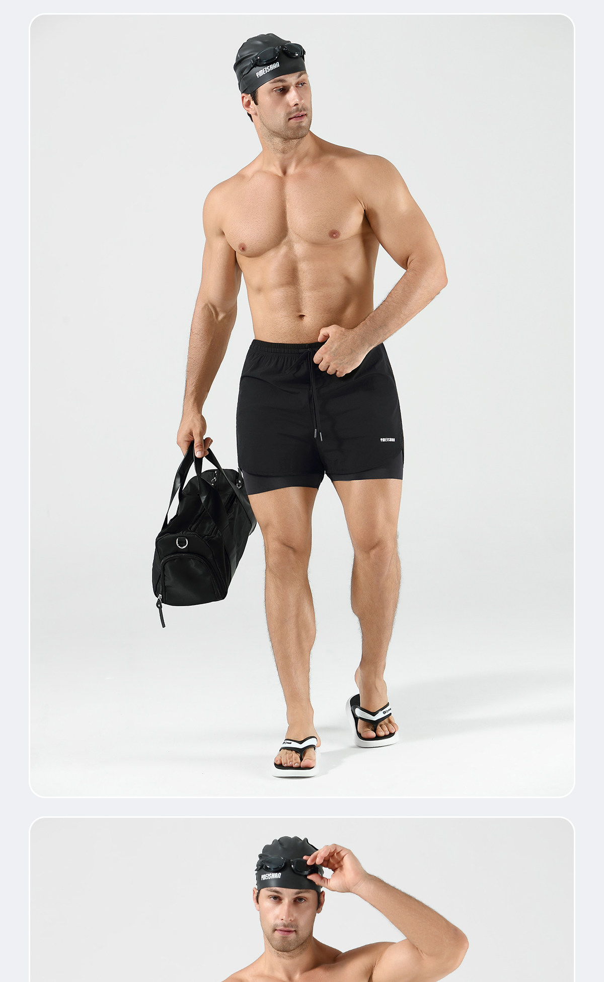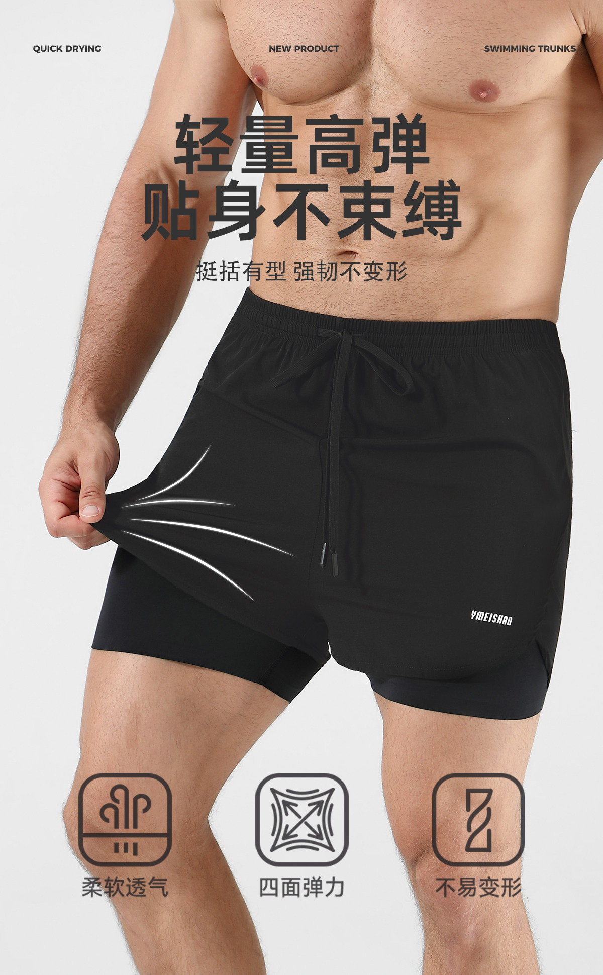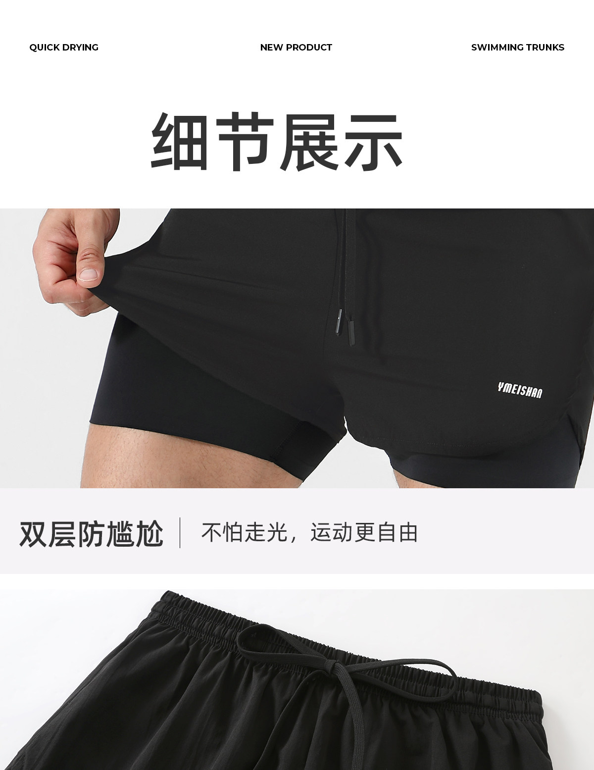 Yimeishan Men's Swimming Trunks, Men's Anti-Embarrassment 2025 New Model, Adult Boys and Teenagers Double-Layer Hot Spring Swimwear