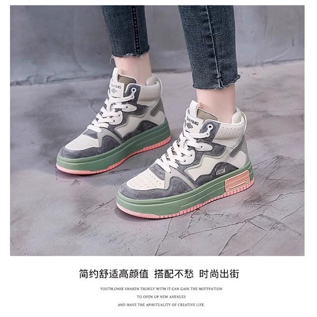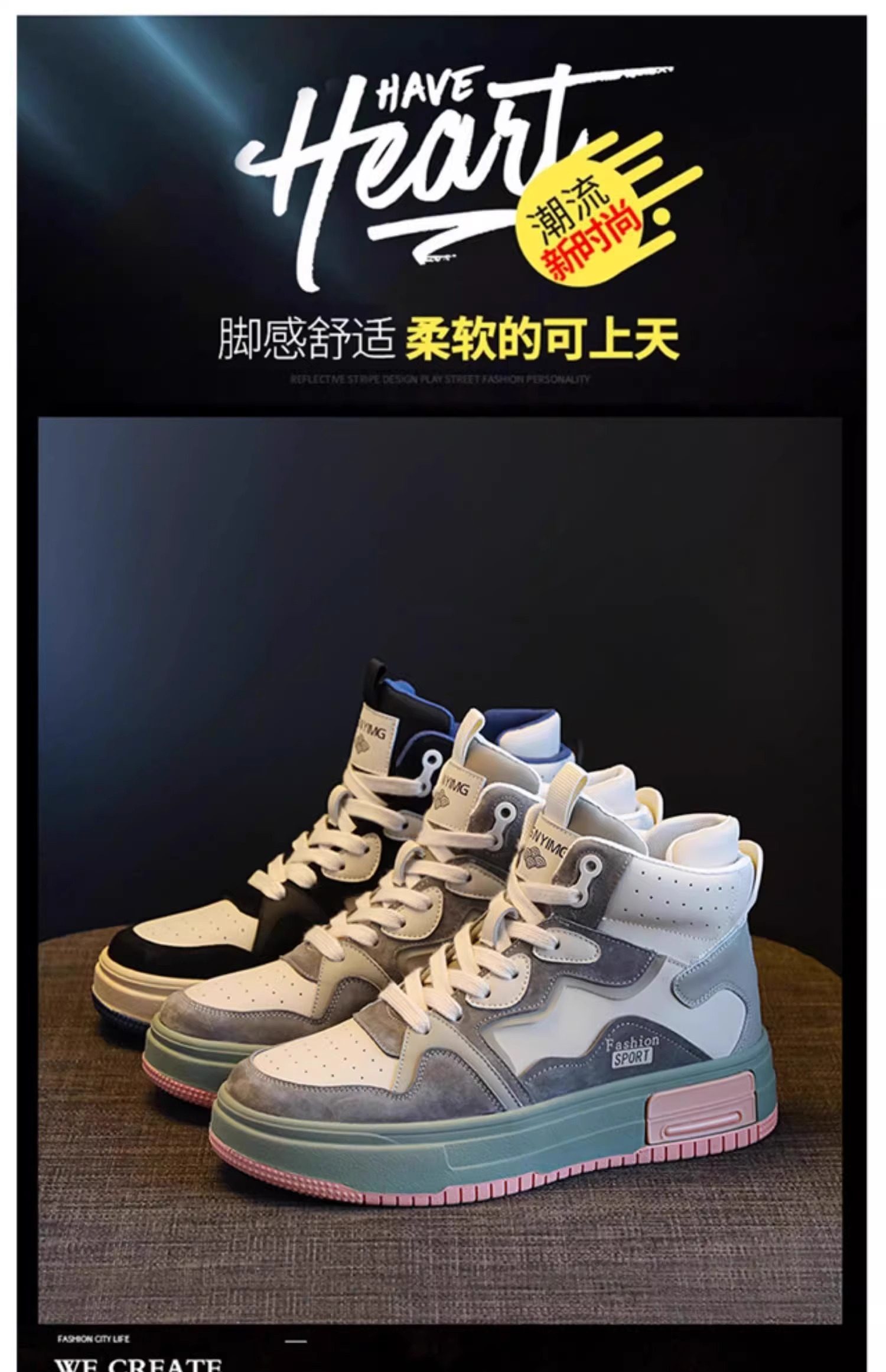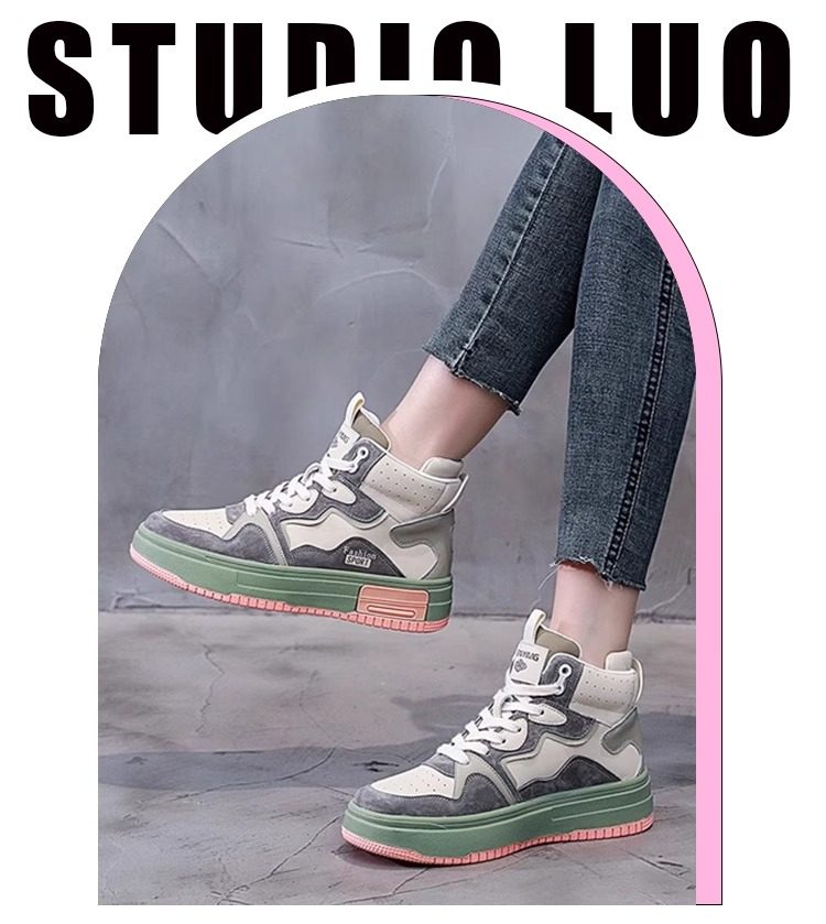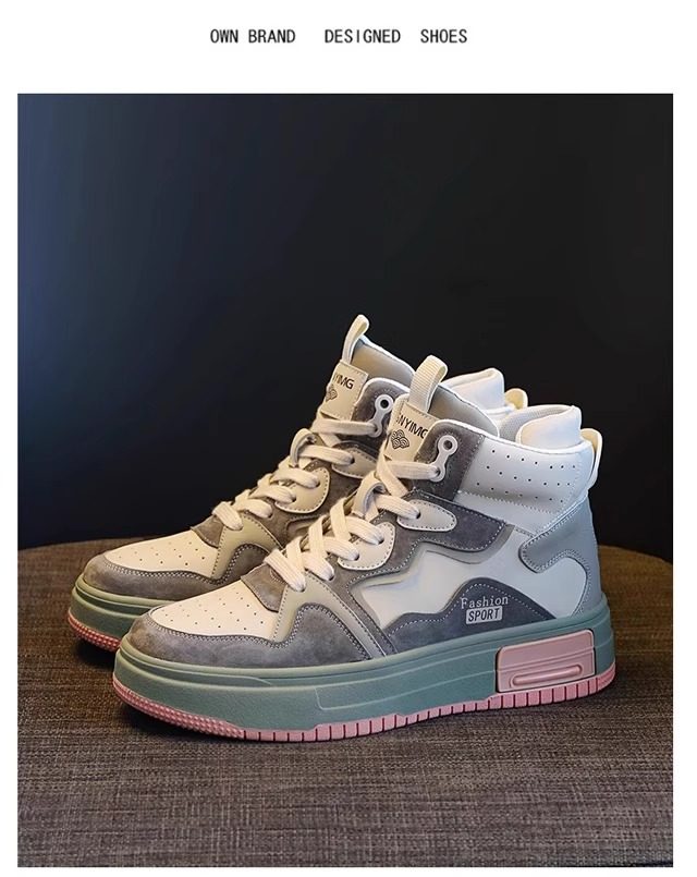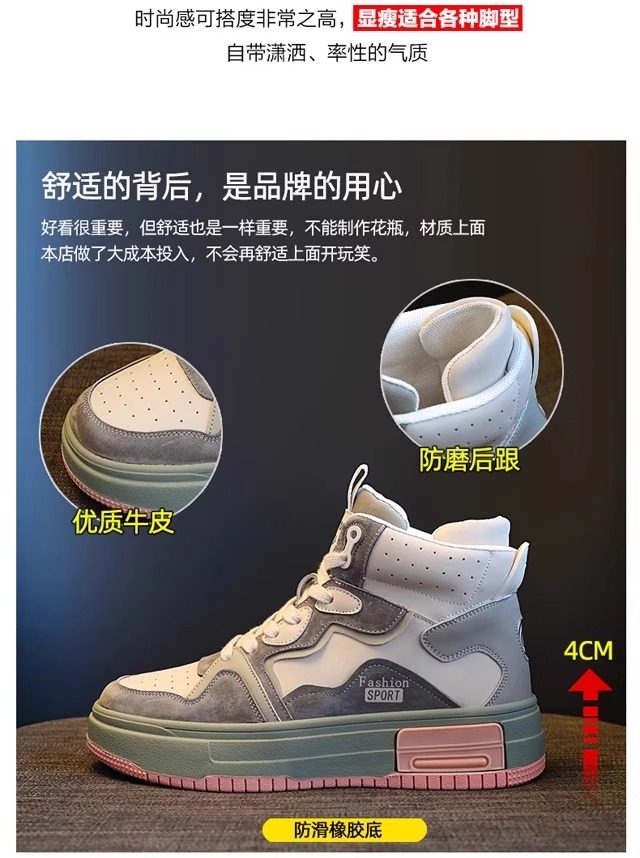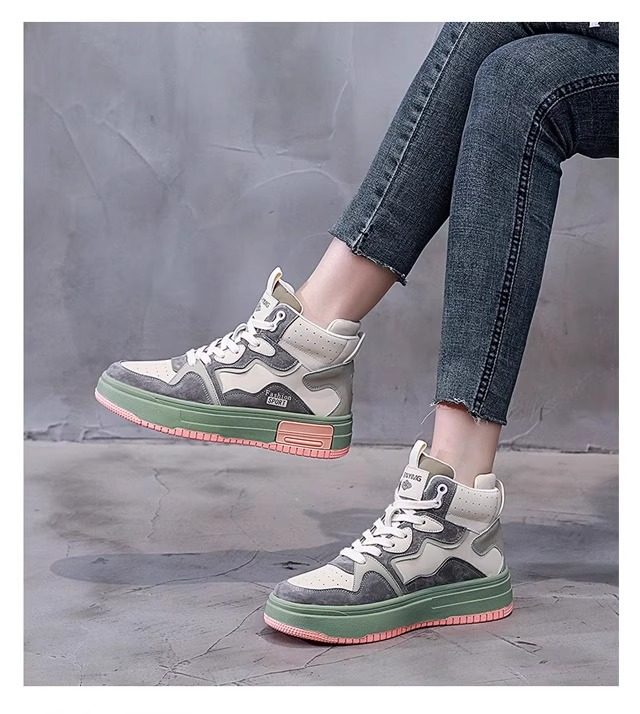 Sanli Genuine Leather Martin Boots for Women 2025 Spring and Autumn New High-Top Sports Casual Shoes Sneakers Thick-Soled Color-Blocked Short Boots Trendy