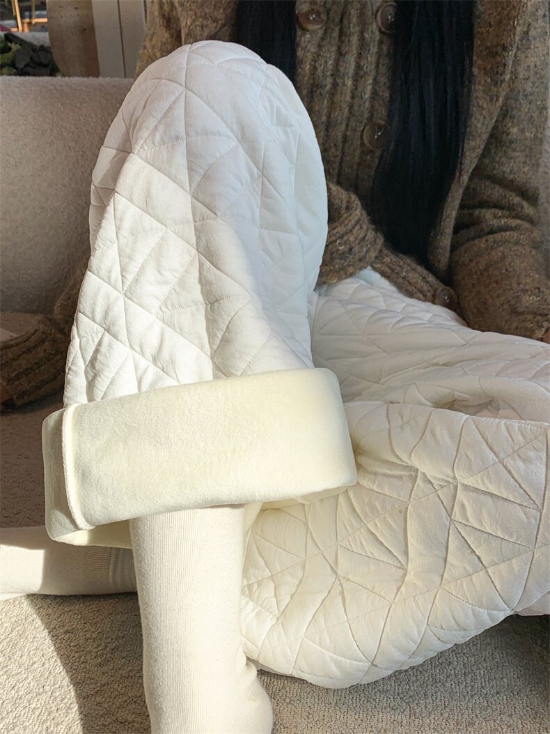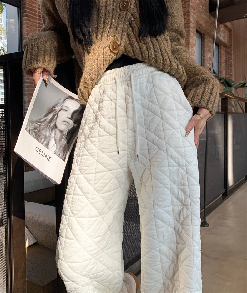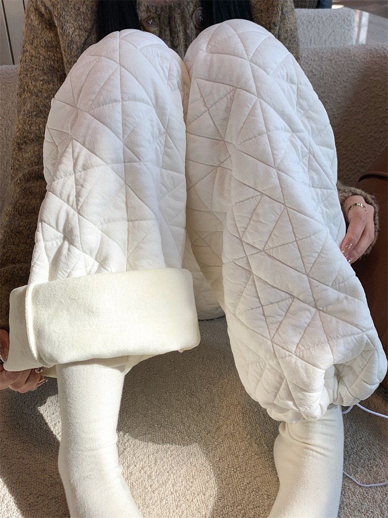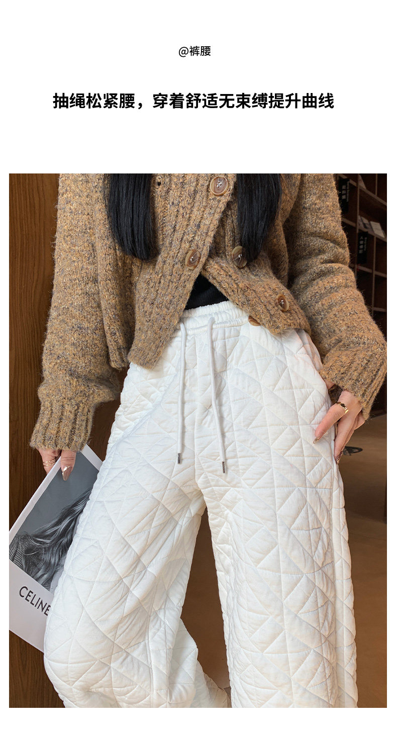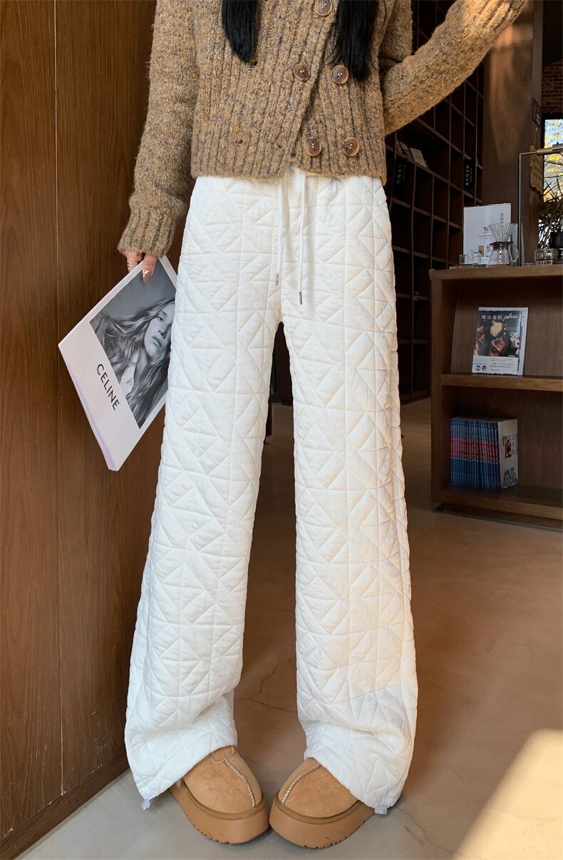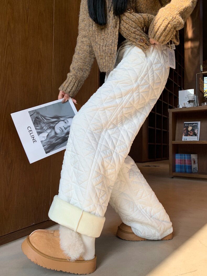 Women's Thick Cotton Pants for Outdoor Wear in Autumn and Winter, Fleece-Lined and Thickened, 2025 New Casual Sports Straight-Leg Quilted White Wide-Leg Pants