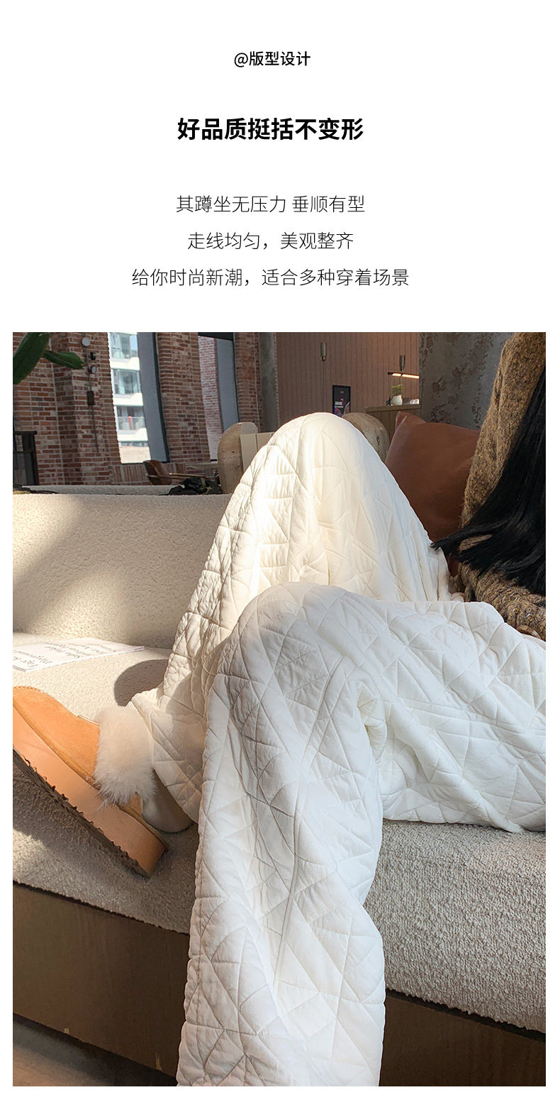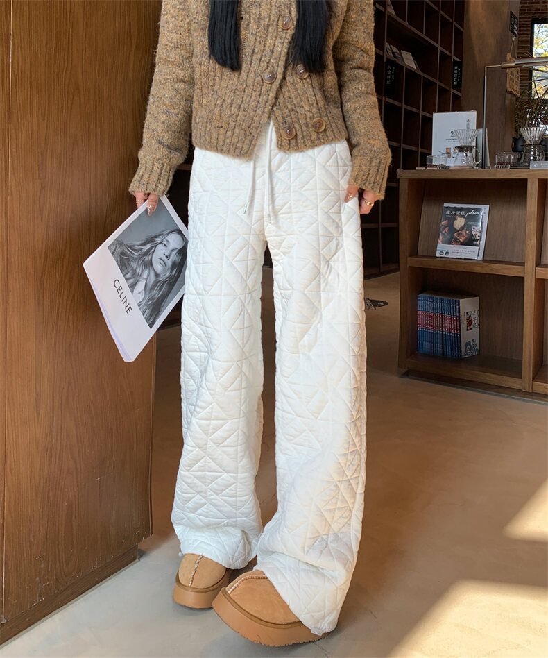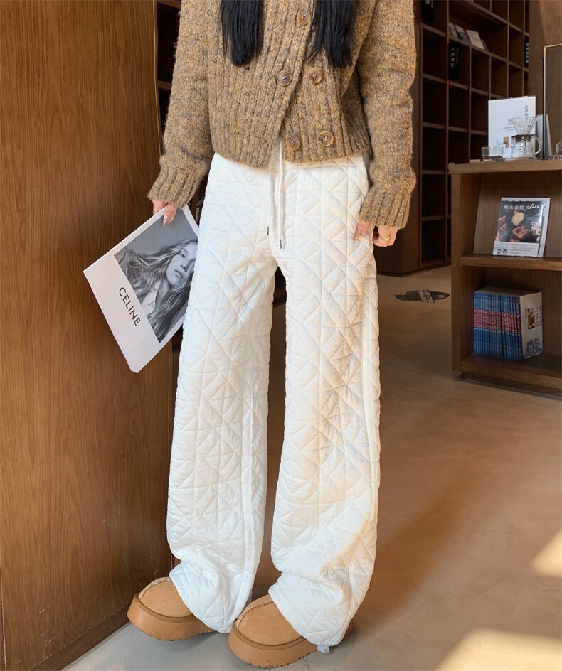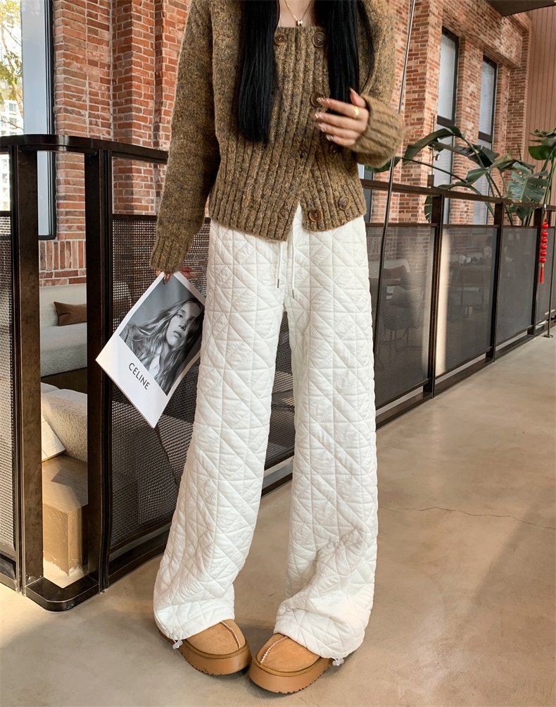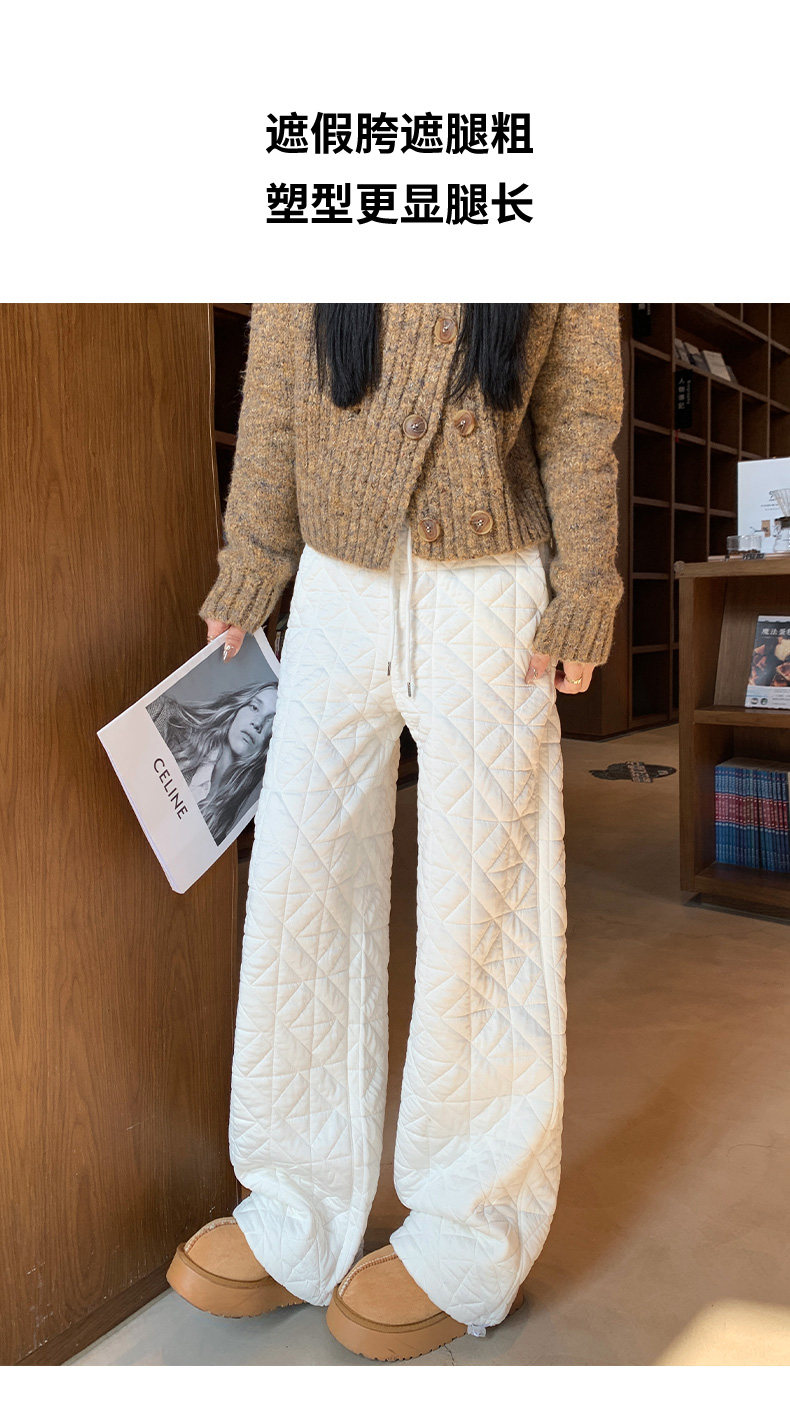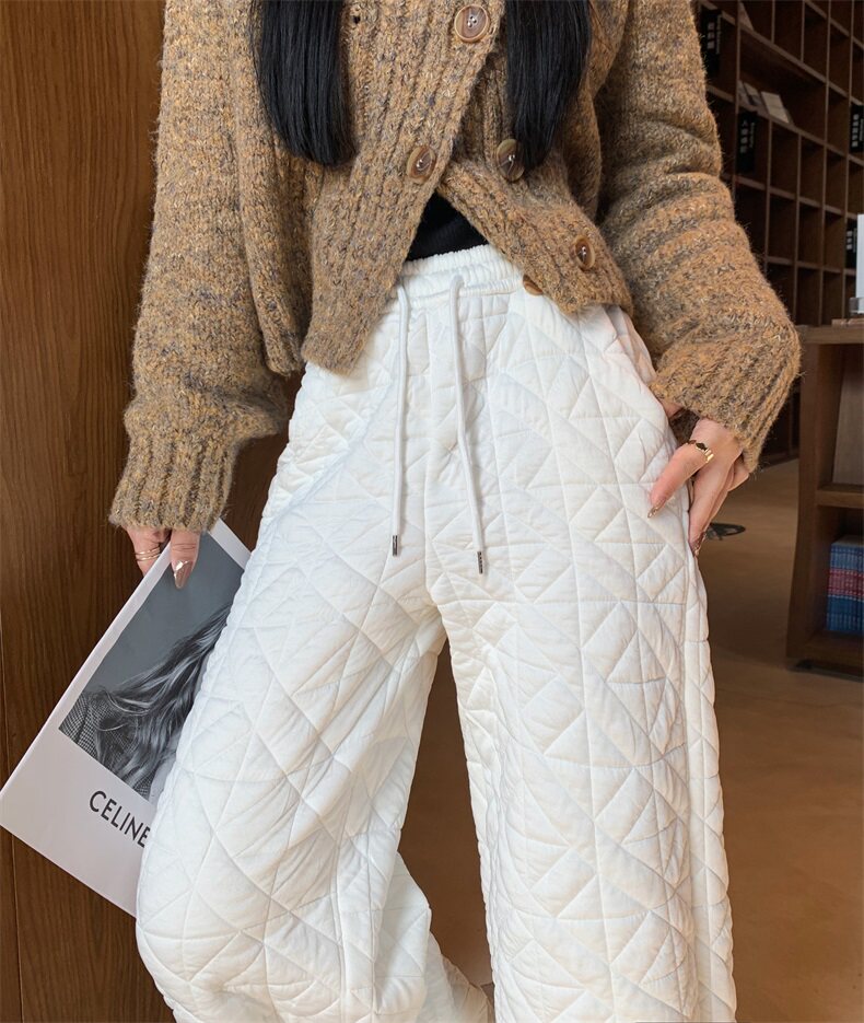 Women's Thick Cotton Pants for Outdoor Wear in Autumn and Winter, Fleece-Lined and Thickened, 2025 New Casual Sports Straight-Leg Quilted White Wide-Leg Pants