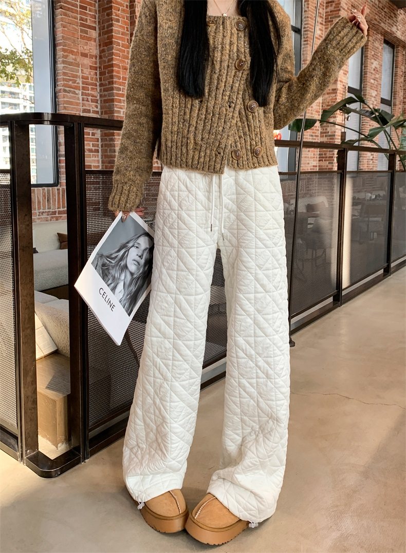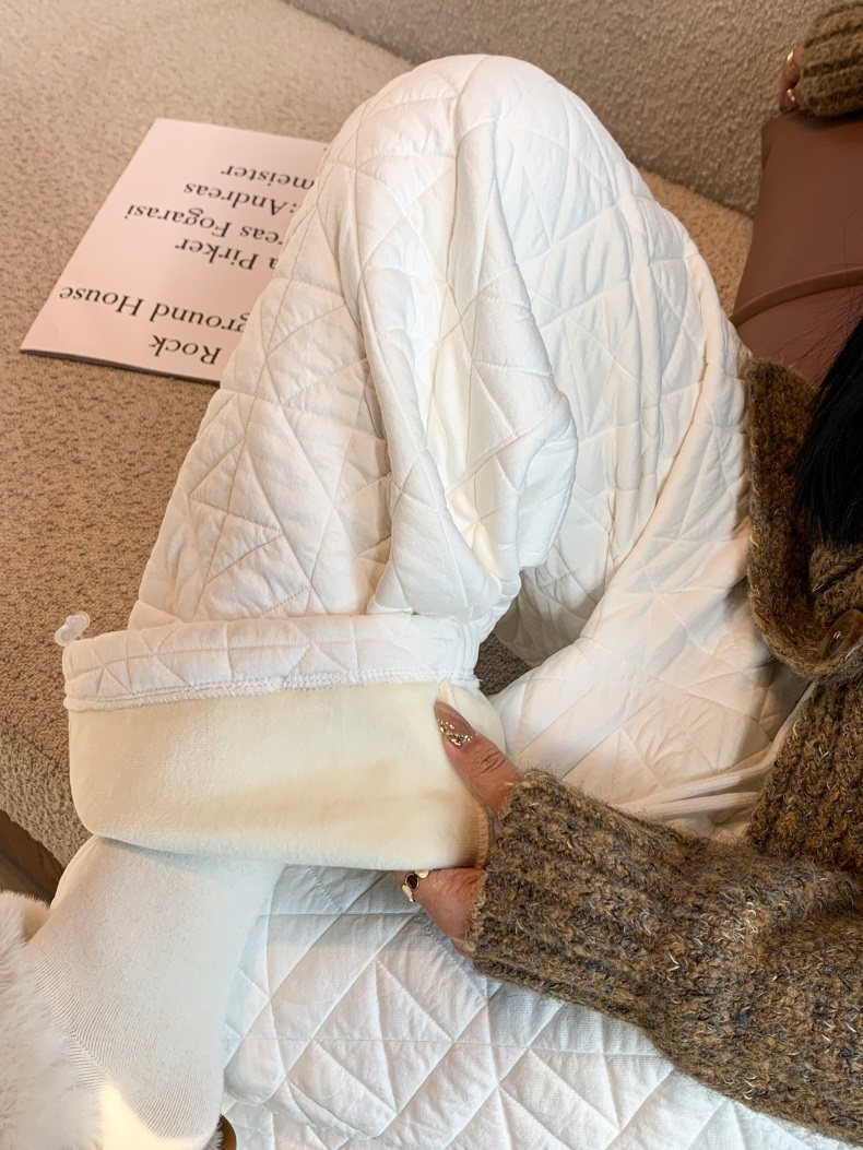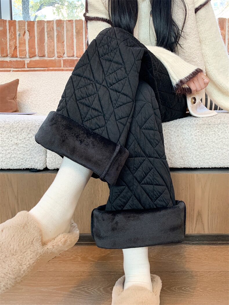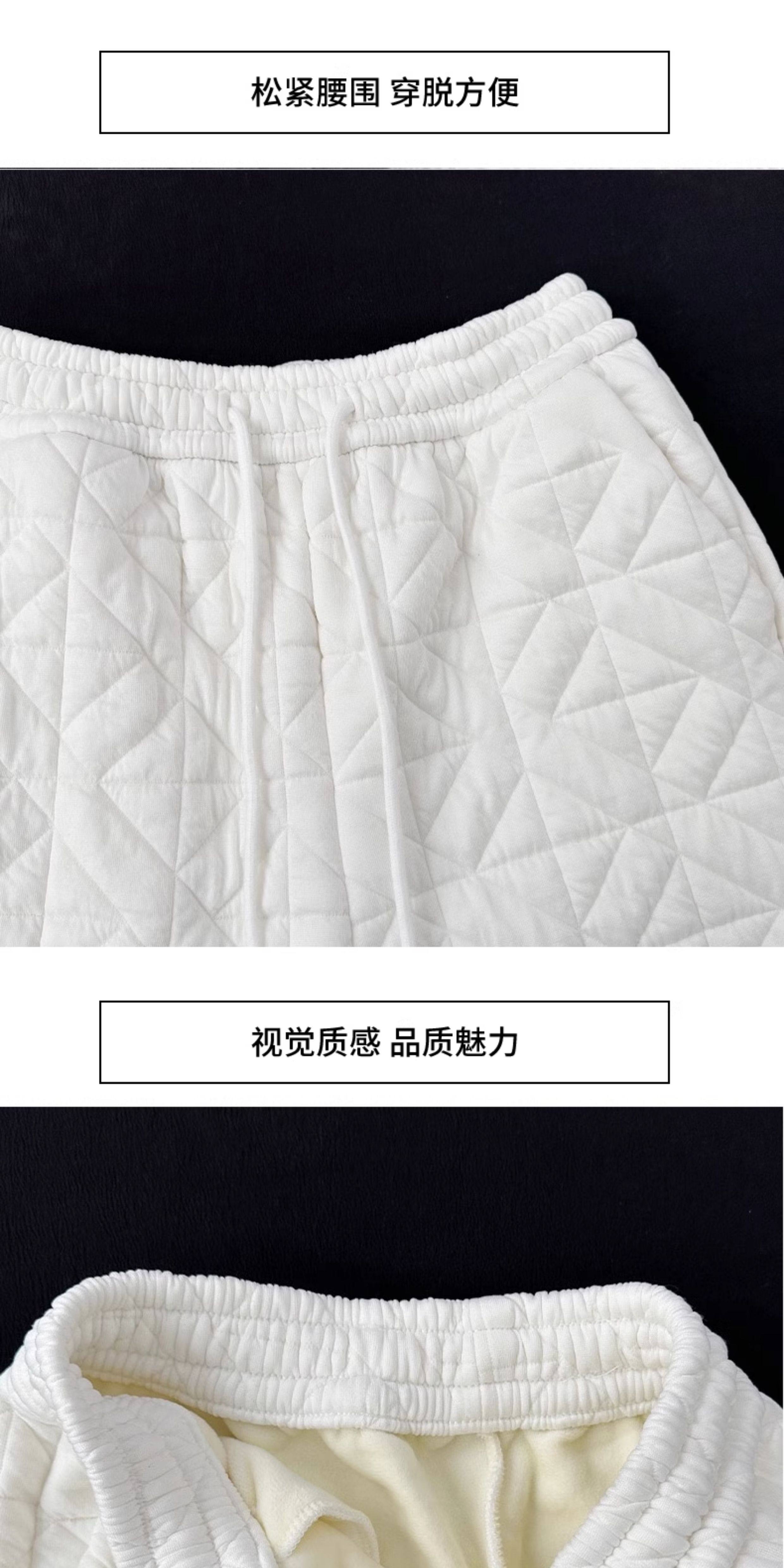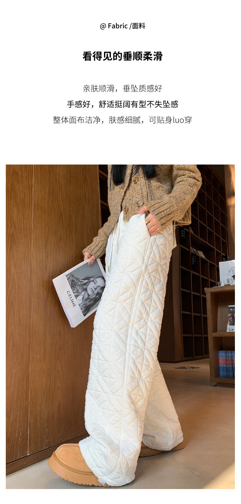 Women's Thick Cotton Pants for Outdoor Wear in Autumn and Winter, Fleece-Lined and Thickened, 2025 New Casual Sports Straight-Leg Quilted White Wide-Leg Pants