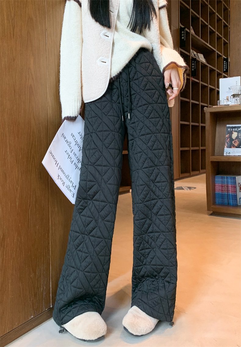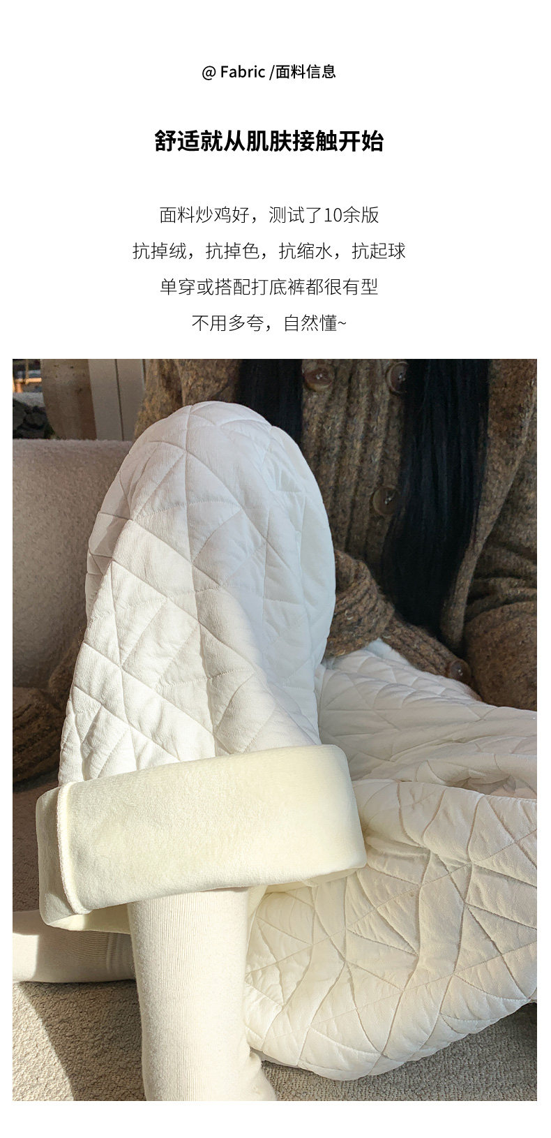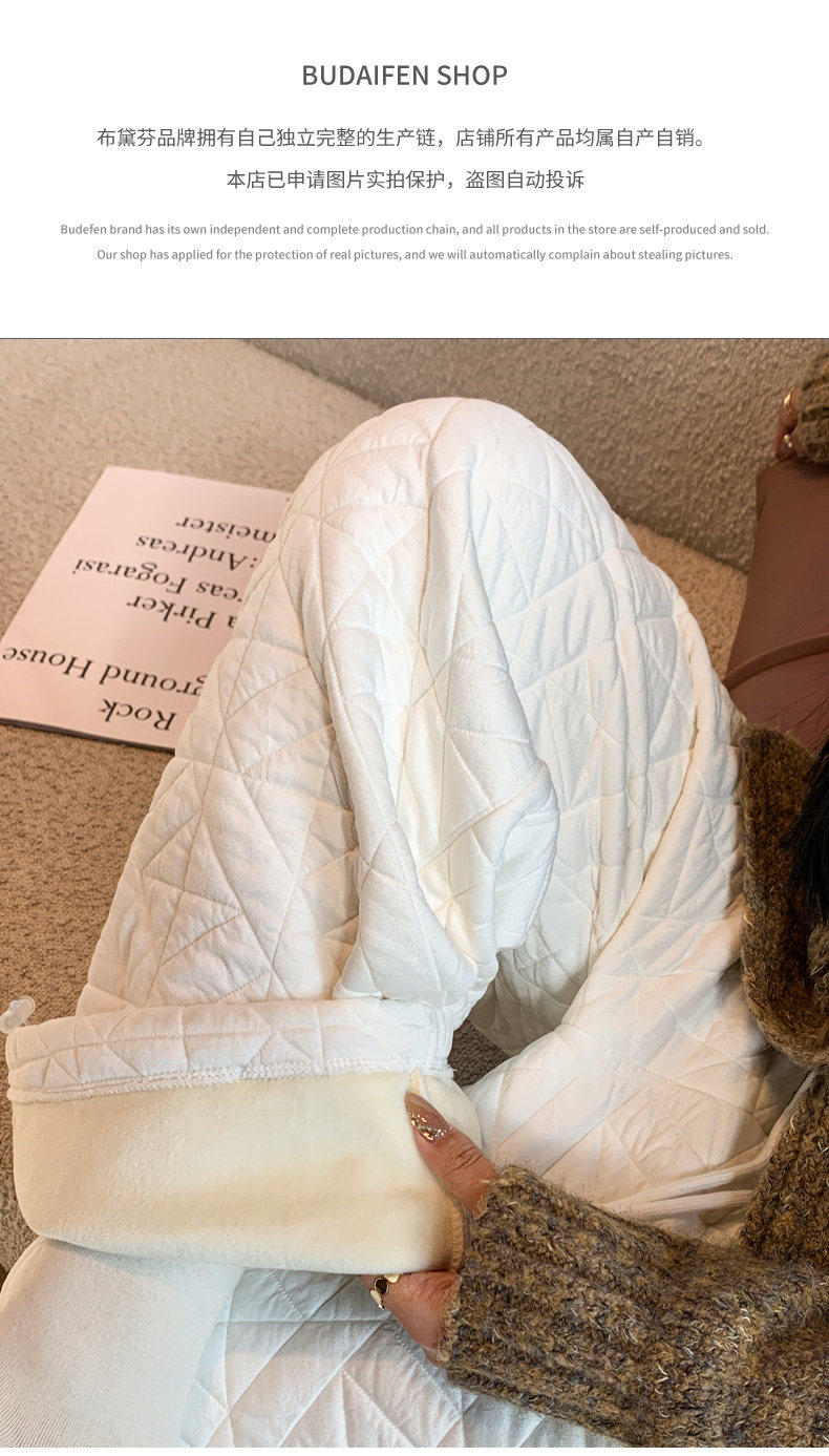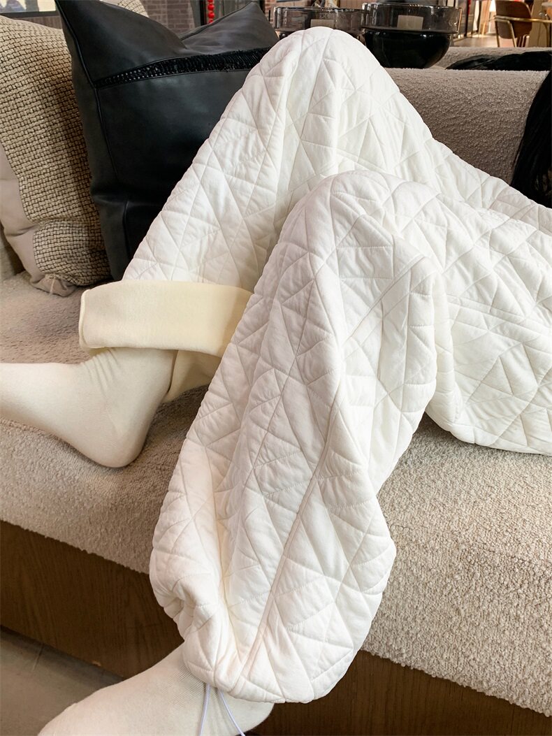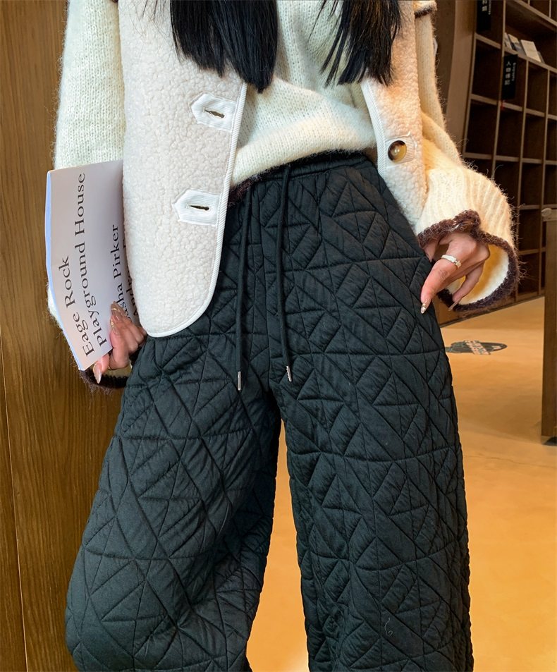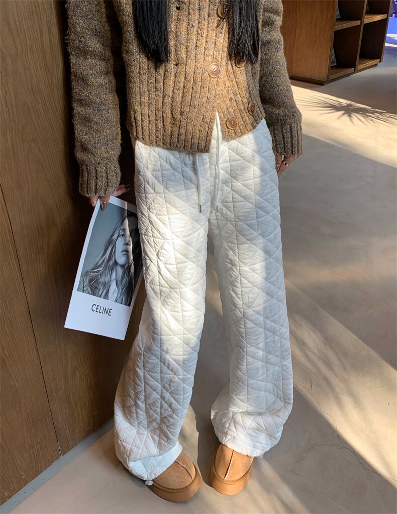 Women's Thick Cotton Pants for Outdoor Wear in Autumn and Winter, Fleece-Lined and Thickened, 2025 New Casual Sports Straight-Leg Quilted White Wide-Leg Pants