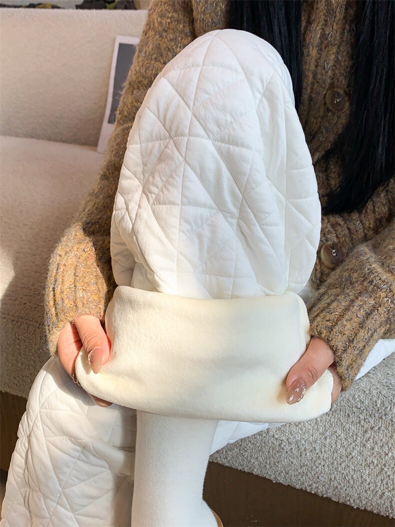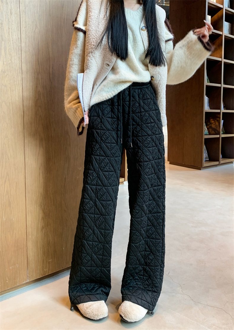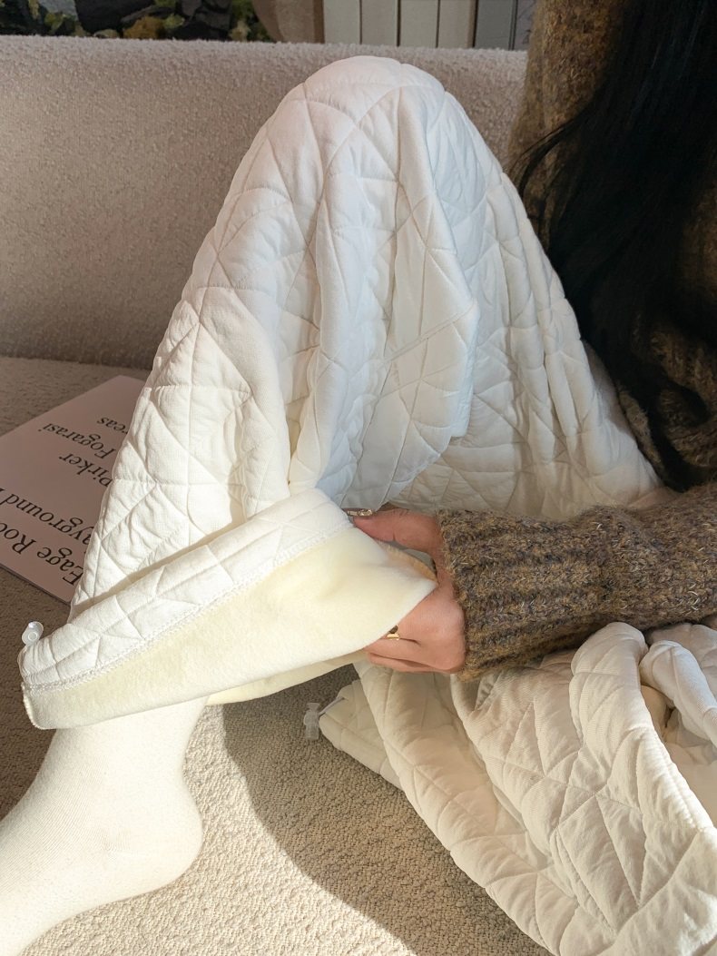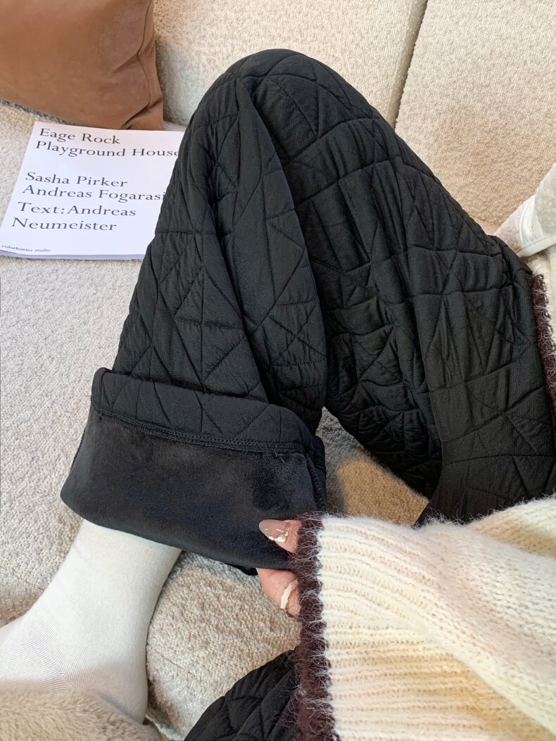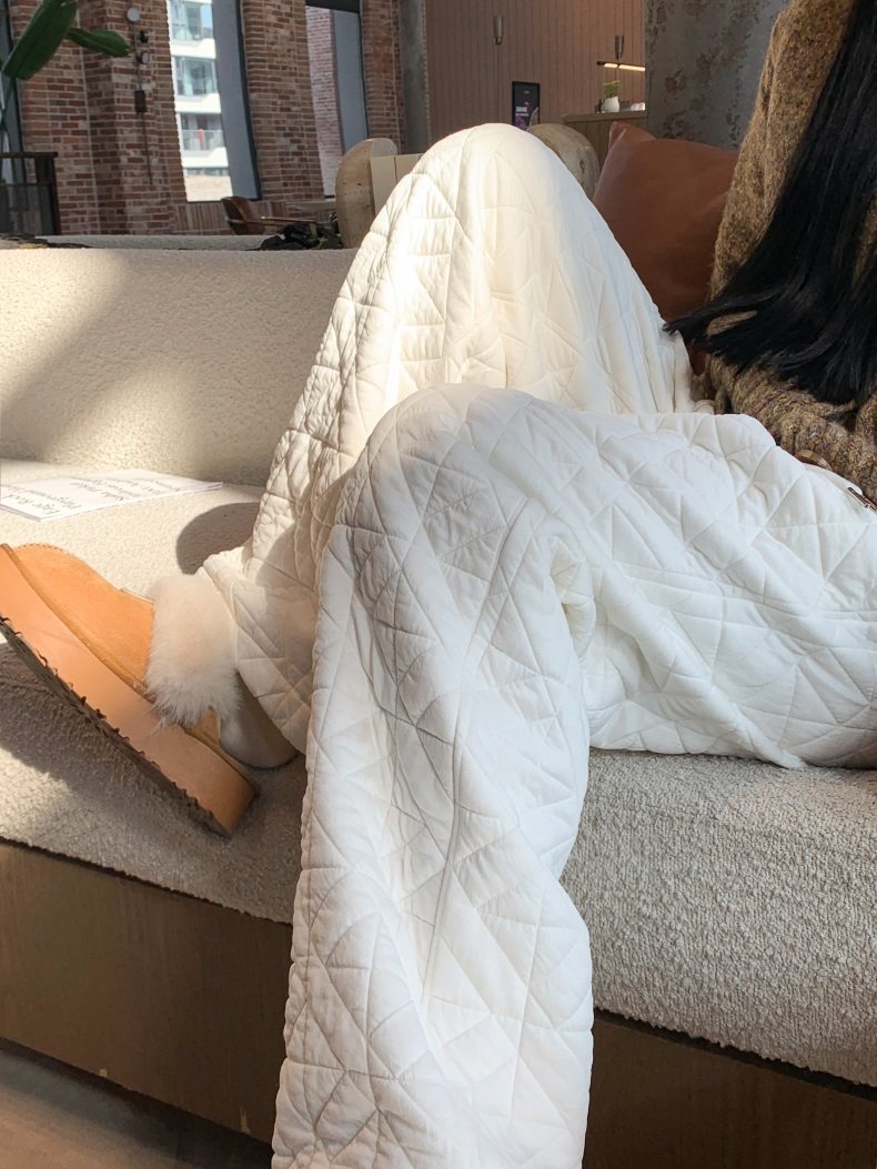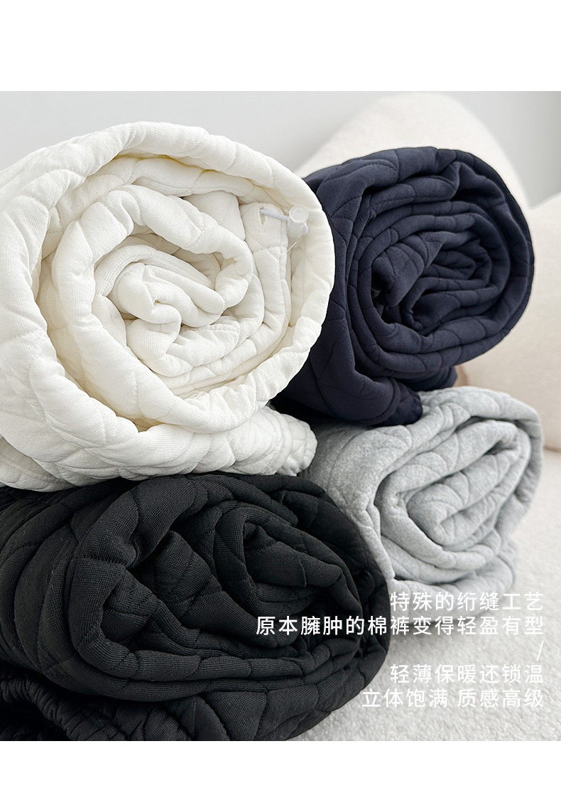 Women's Thick Cotton Pants for Outdoor Wear in Autumn and Winter, Fleece-Lined and Thickened, 2025 New Casual Sports Straight-Leg Quilted White Wide-Leg Pants