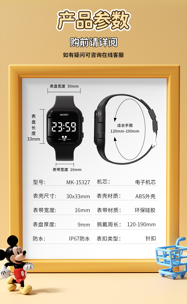 Disney Watch Men's Model for Junior High School Students Only Watch Time Waterproof Sports Digital Watch for Kidsren Boys and Girls