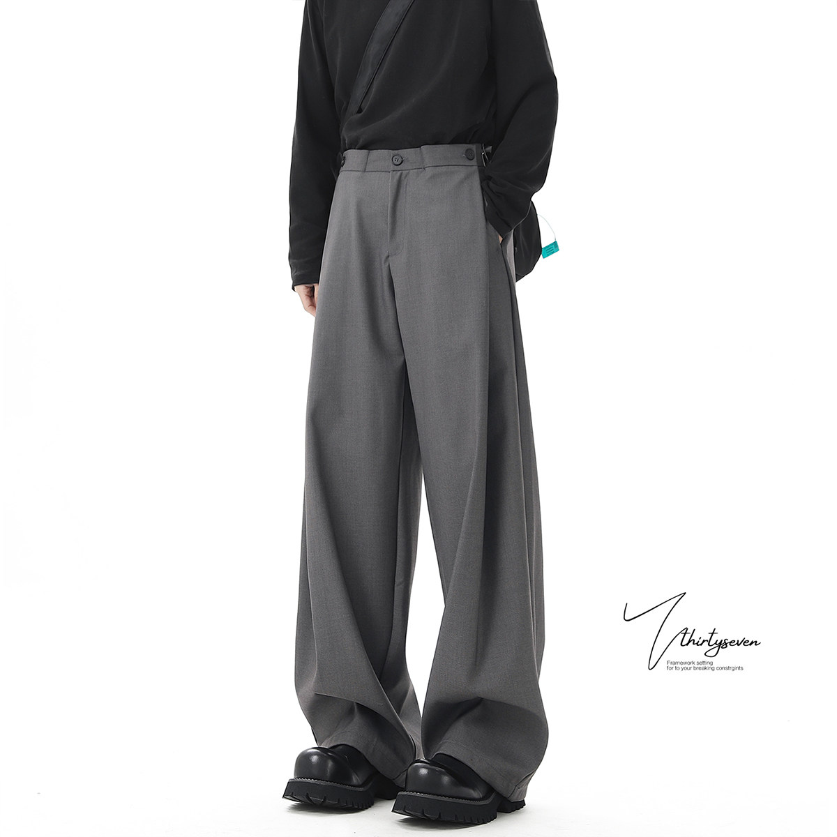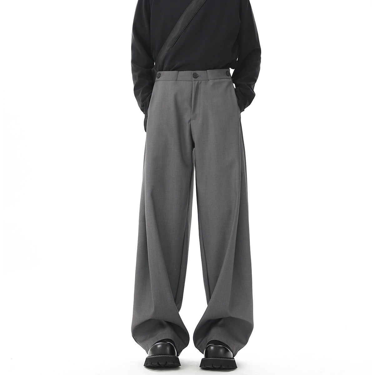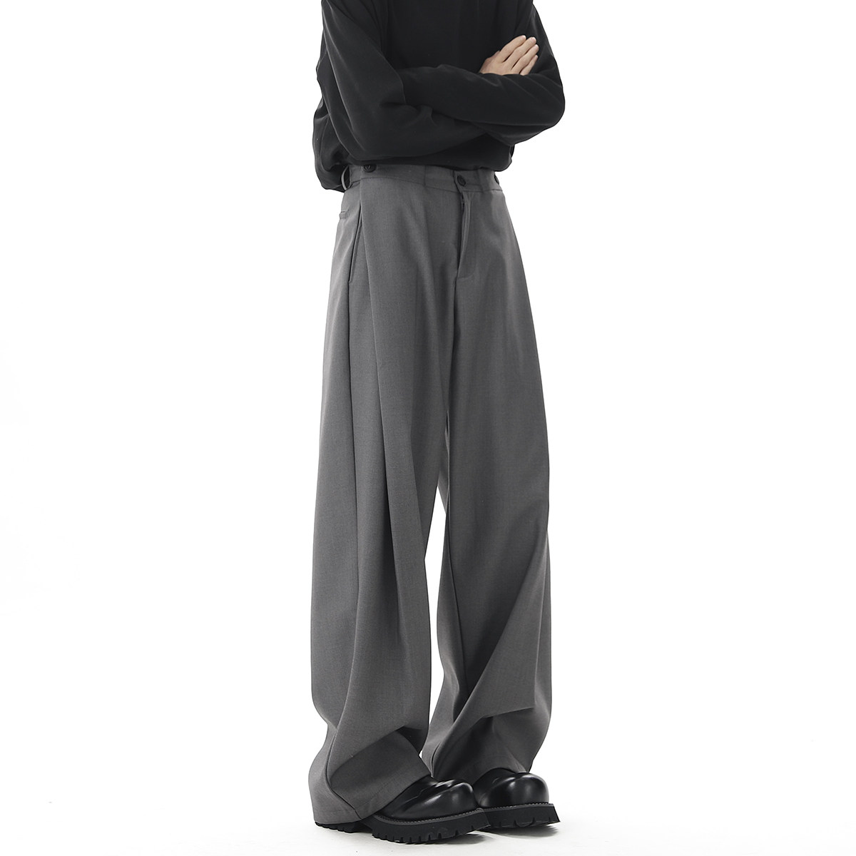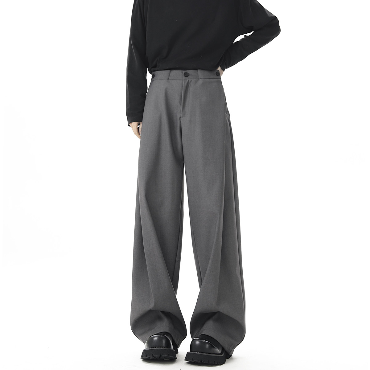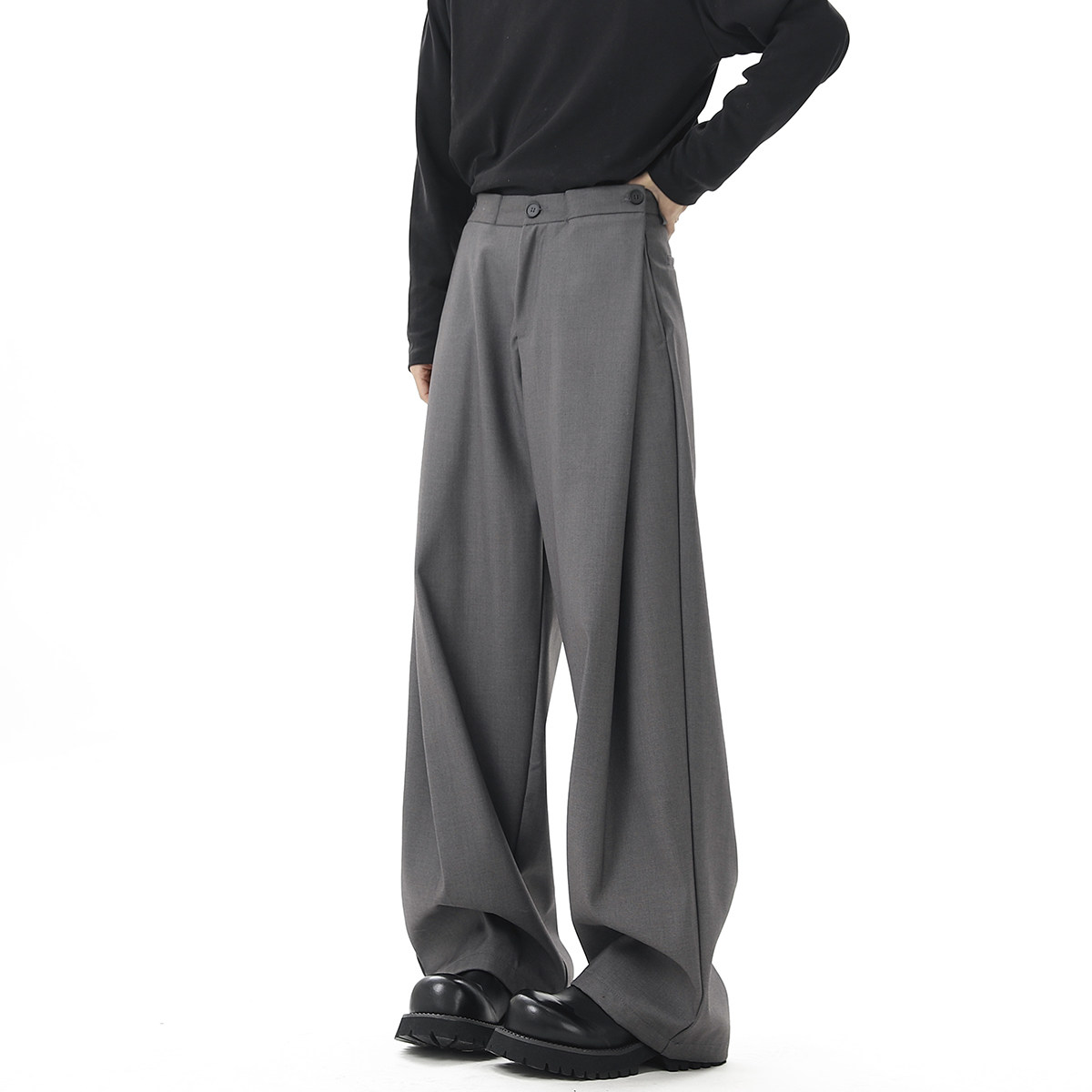 V37 Gray High-End Pants for Men, Popular Autumn Wear, Suit Pants, Loose Straight-Leg Wide-Leg Drape Casual Pants