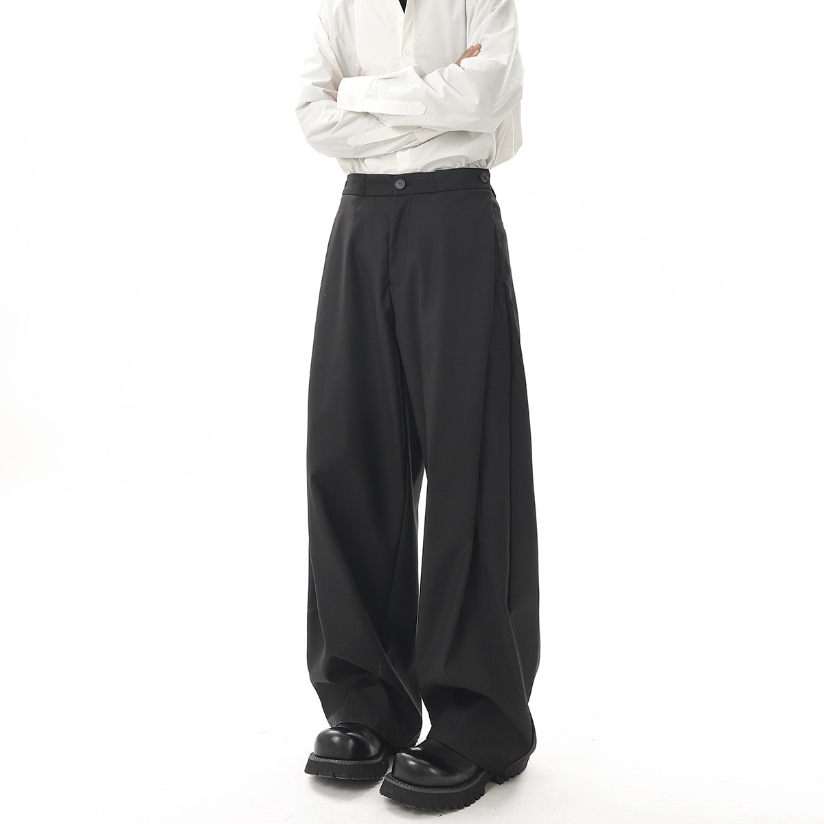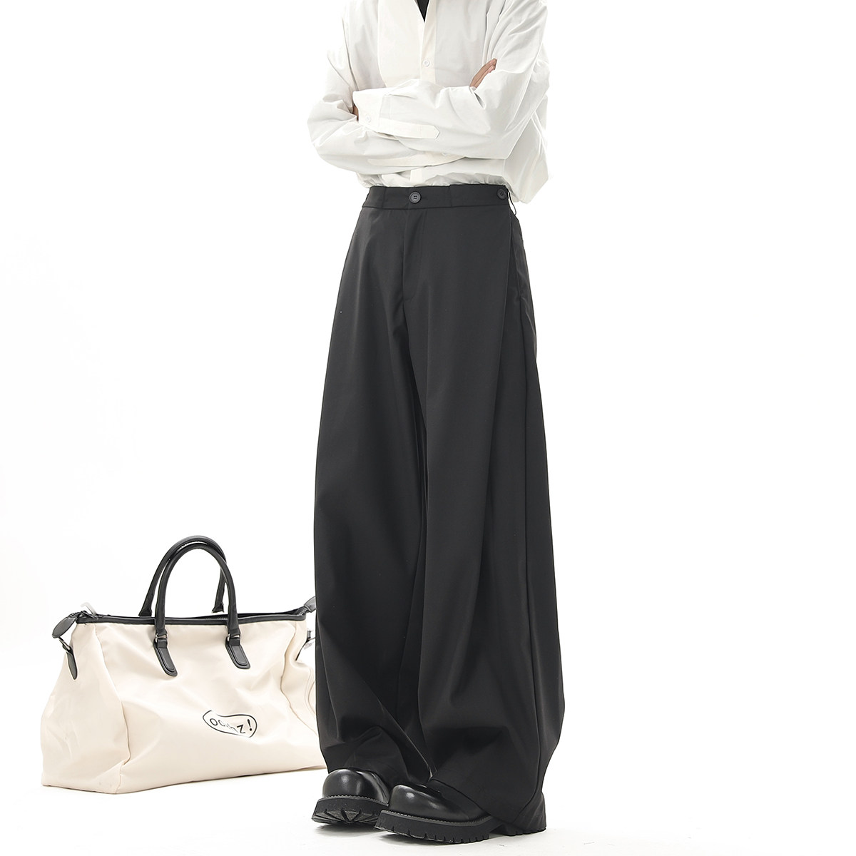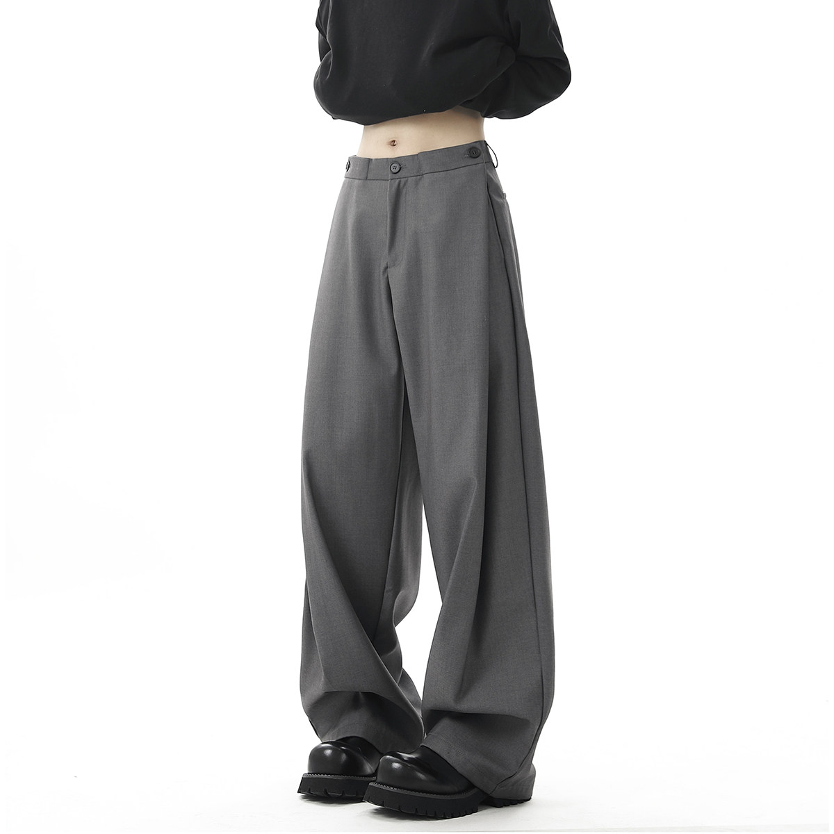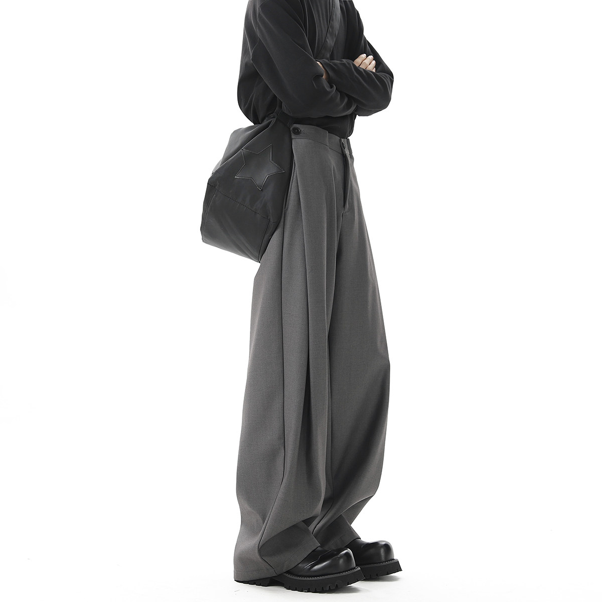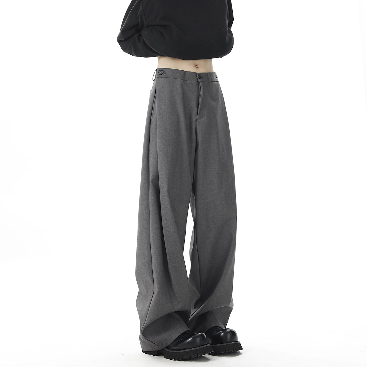 V37 Gray High-End Pants for Men, Popular Autumn Wear, Suit Pants, Loose Straight-Leg Wide-Leg Drape Casual Pants