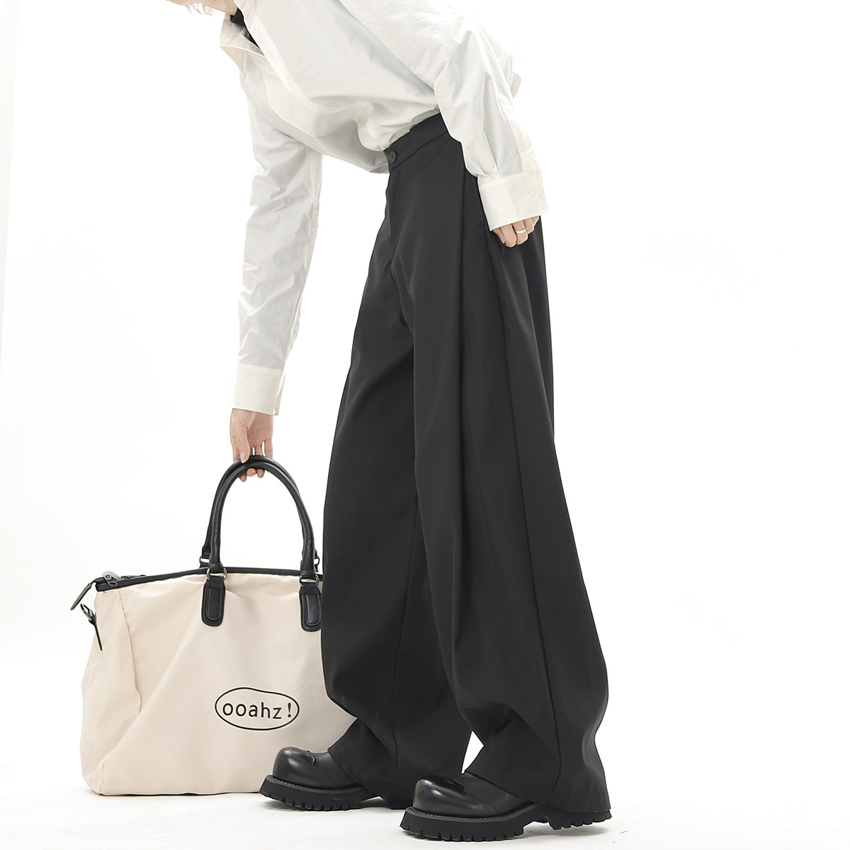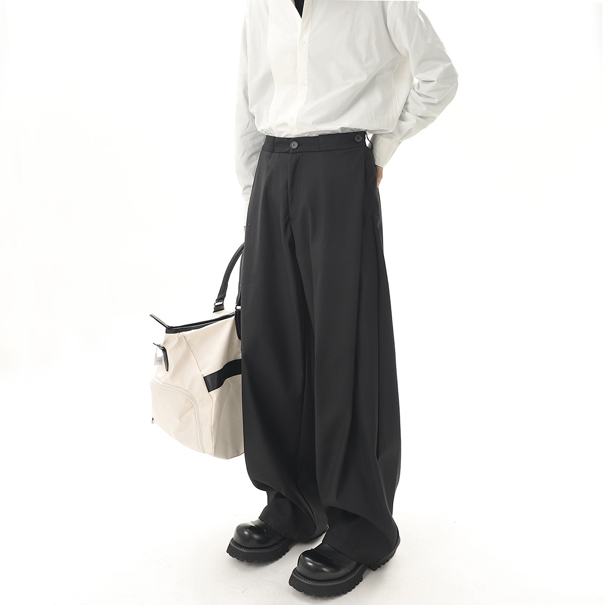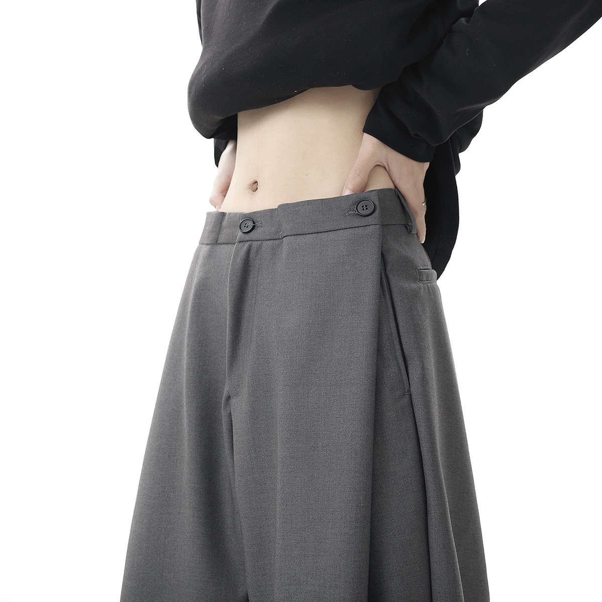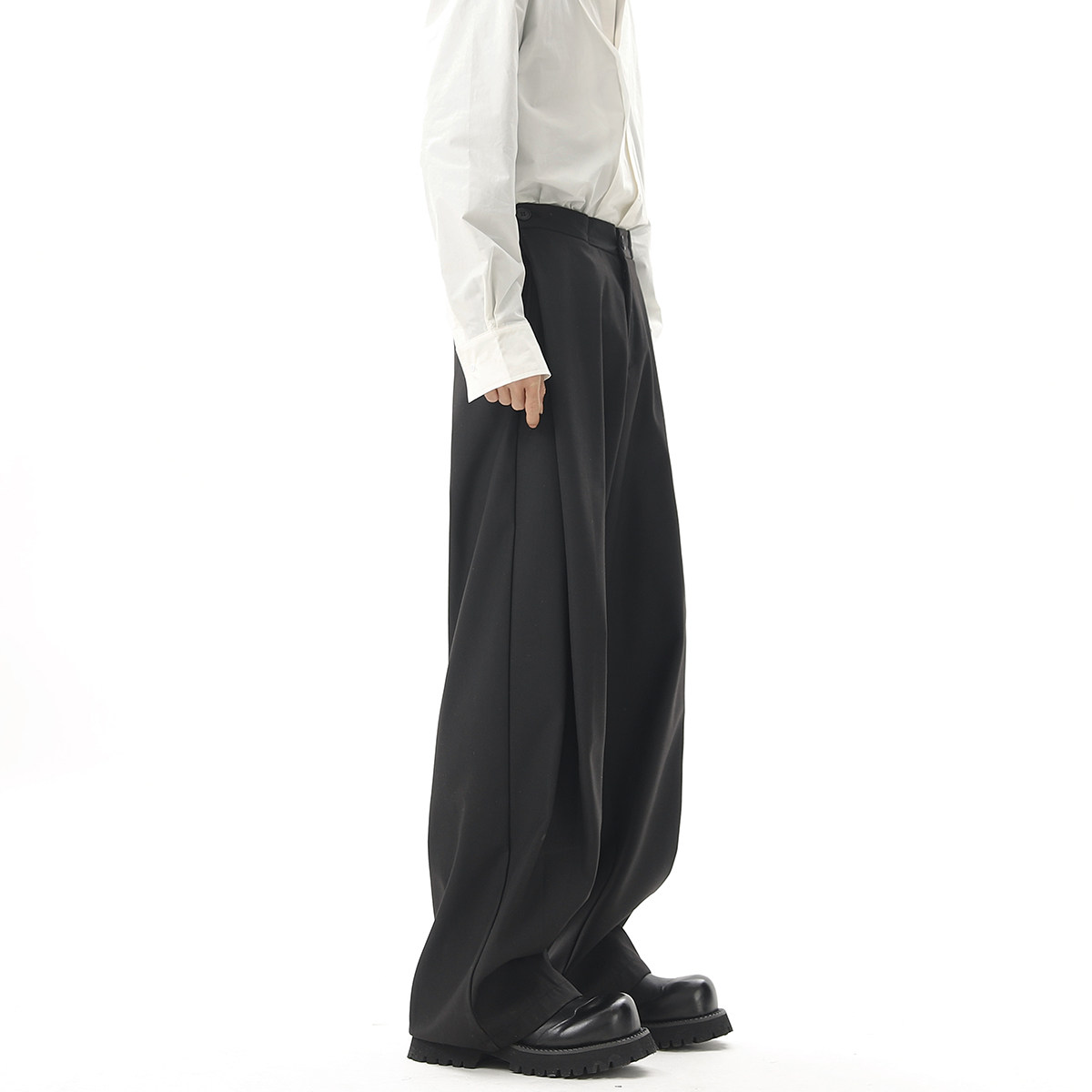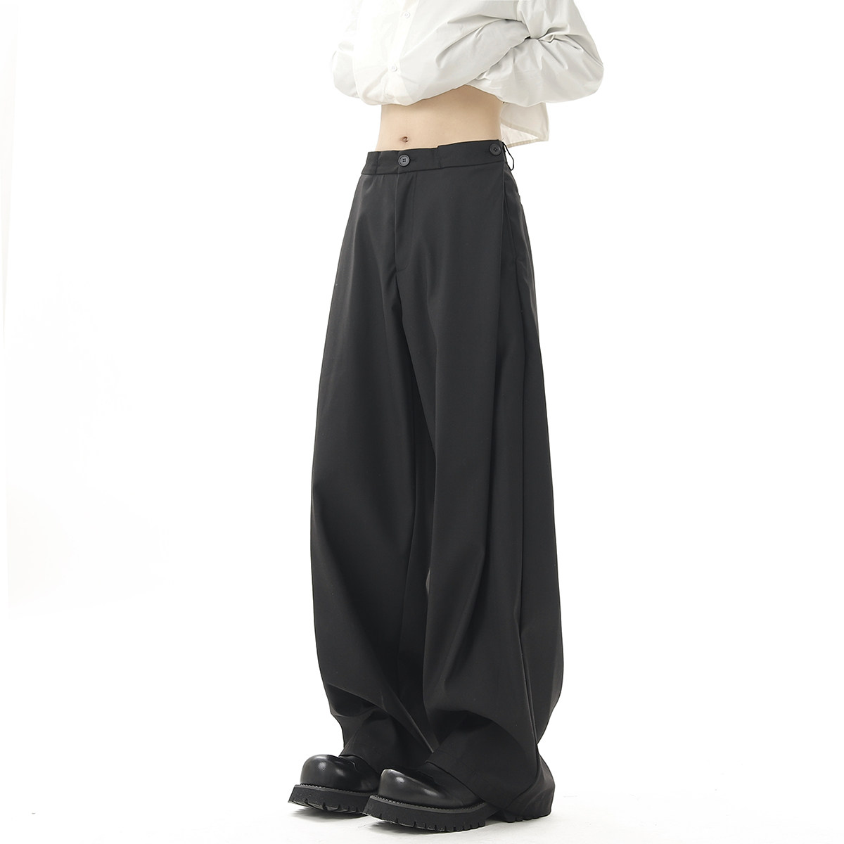V37 Gray High-End Pants for Men, Popular Autumn Wear, Suit Pants, Loose Straight-Leg Wide-Leg Drape Casual Pants