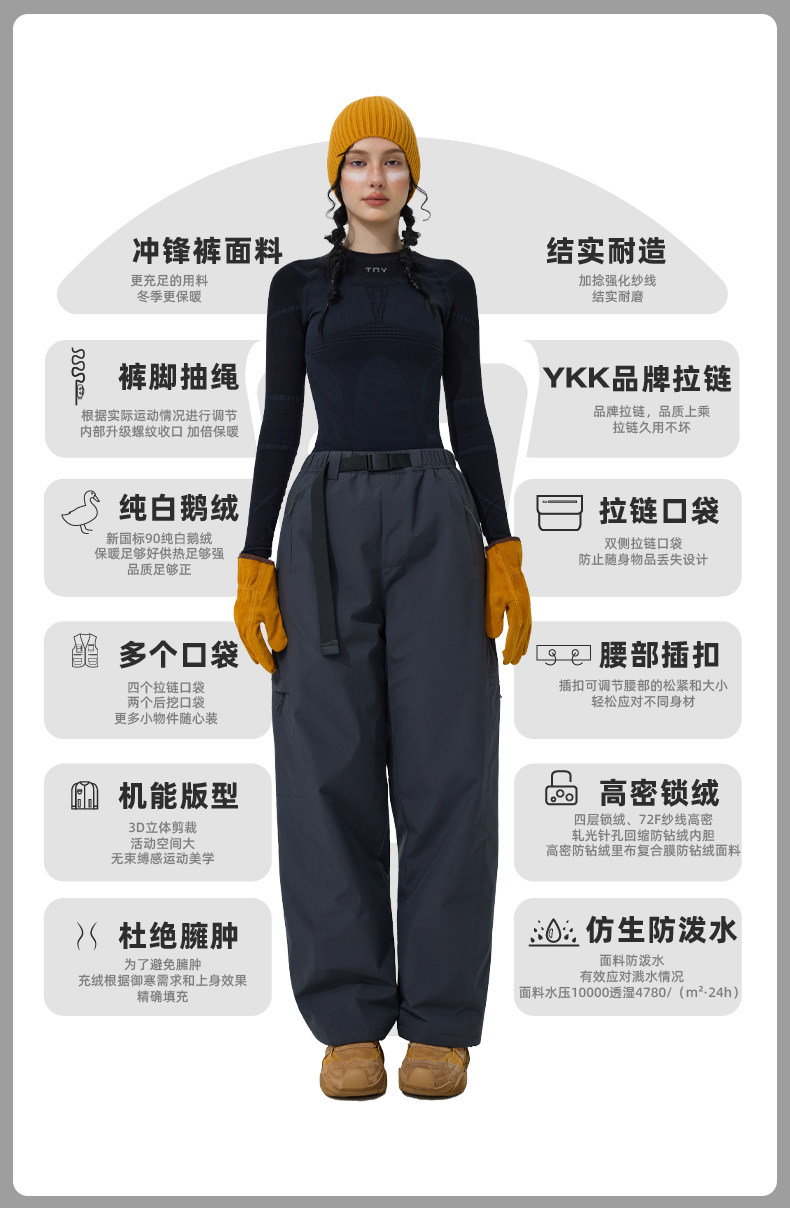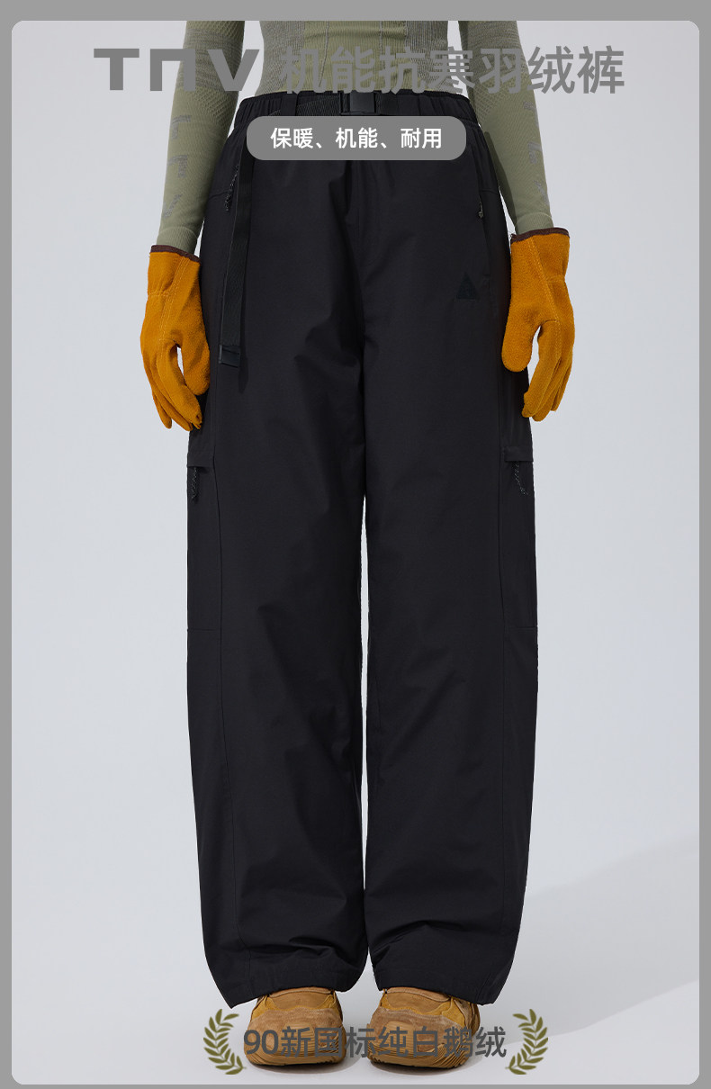 Tnv Goose down Cold-Resistant Thickened down Pants, Three-Proof Snow Mountain Climbing Outdoor Warm Loose Workwear Pants for Men and Women