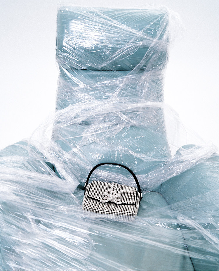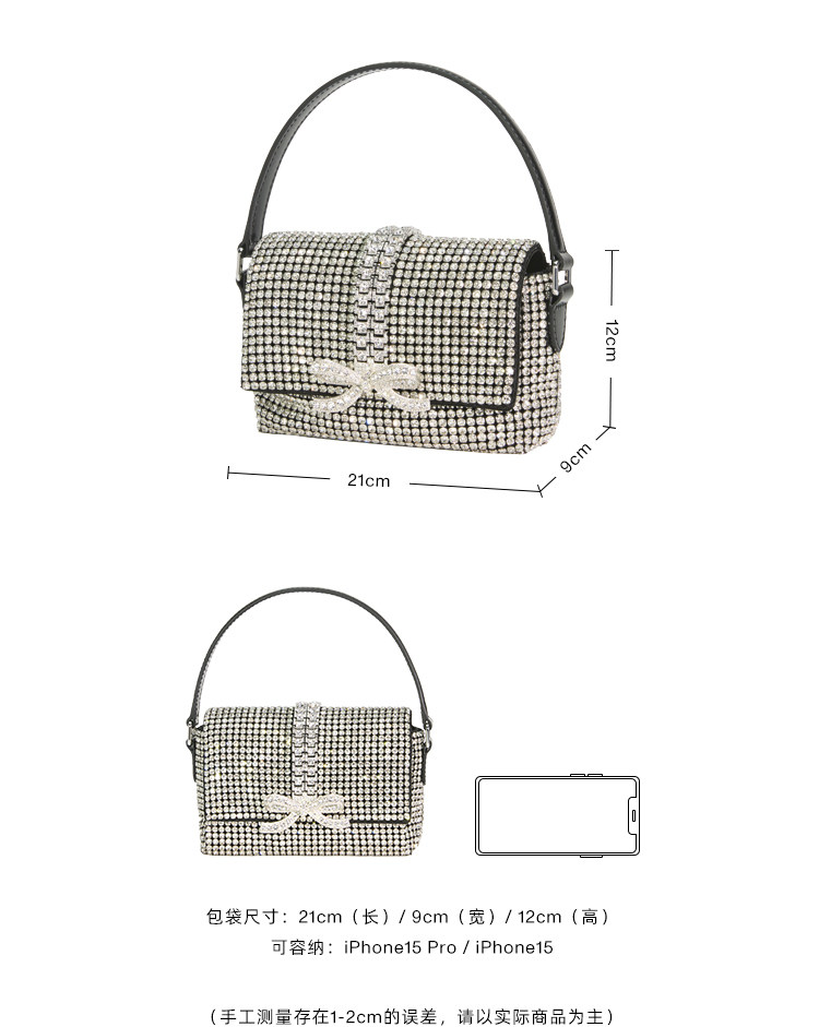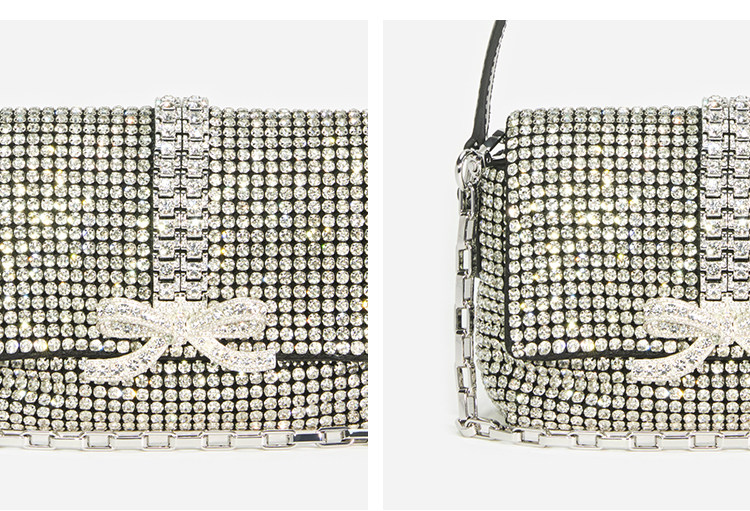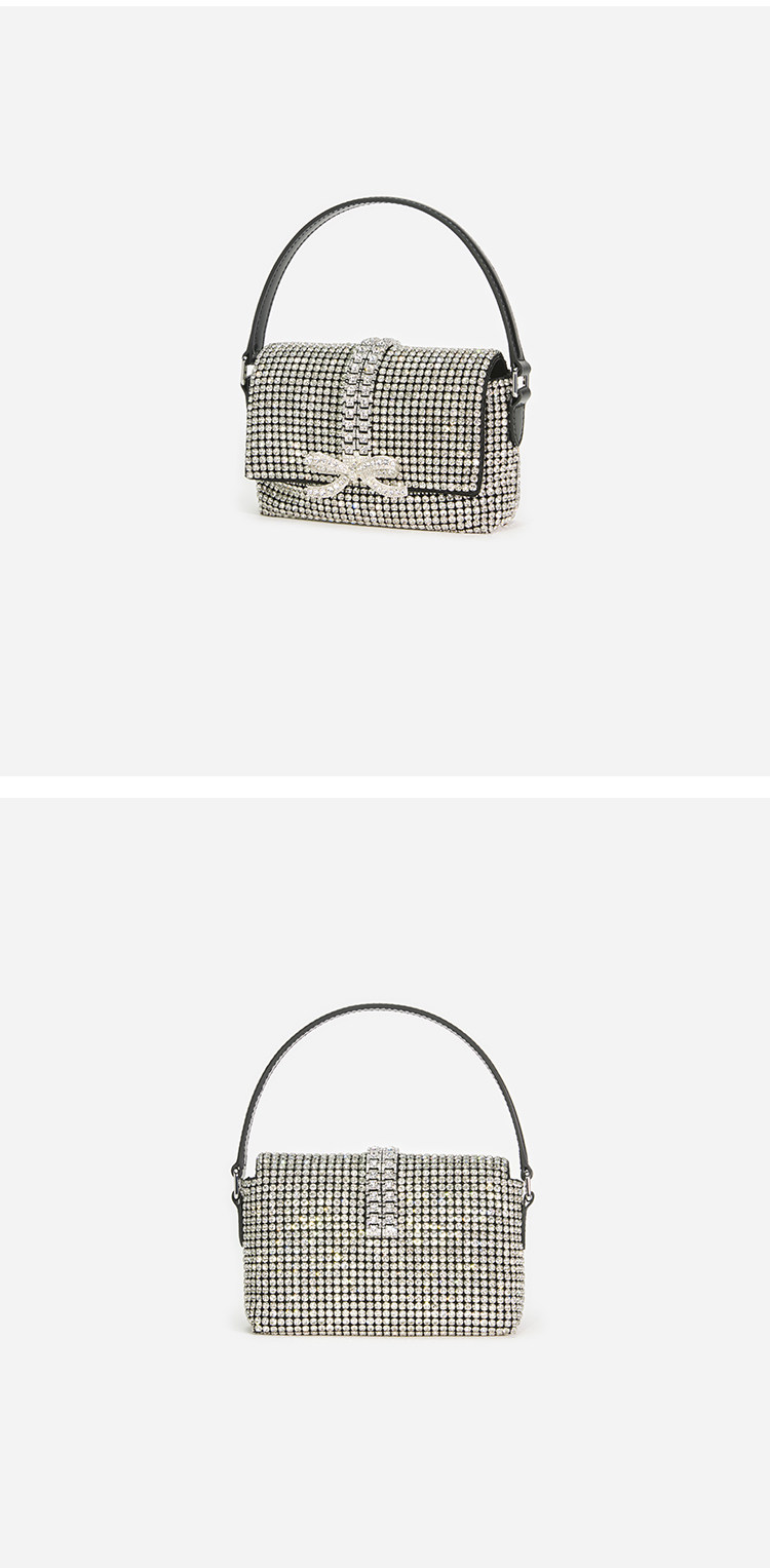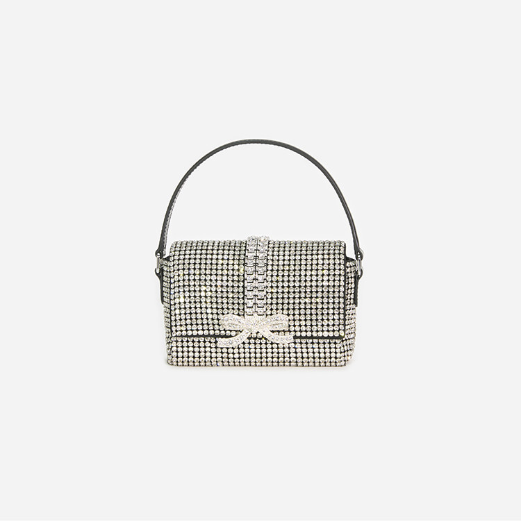 [Gift] Self-Portrait Early Autumn Silver Bow Full Diamond Banquet Clutch Bag
