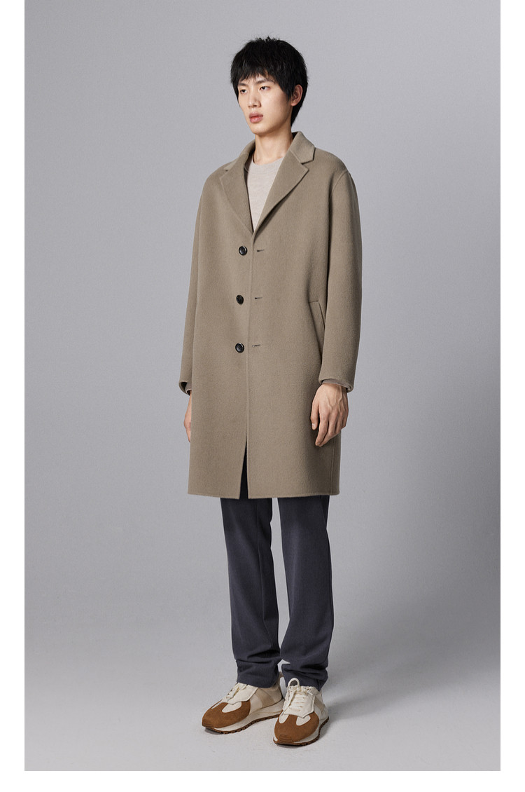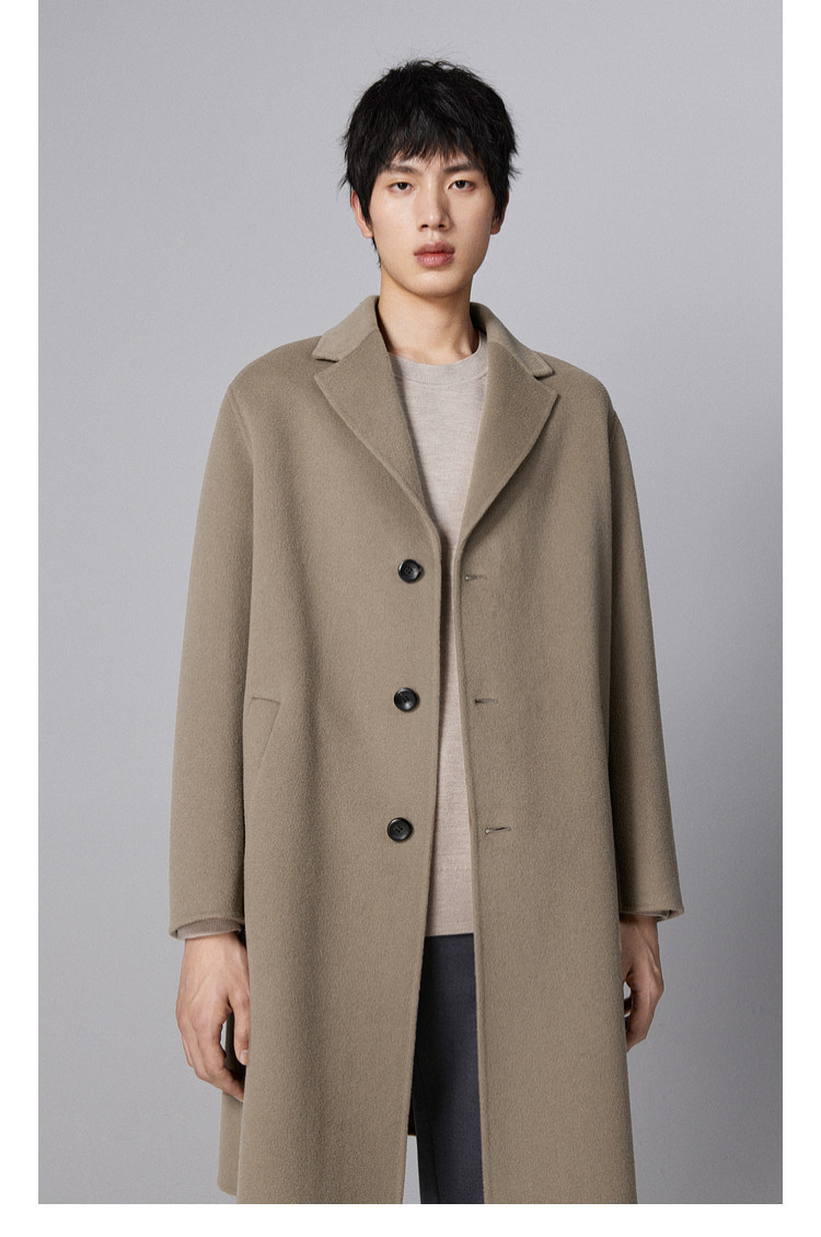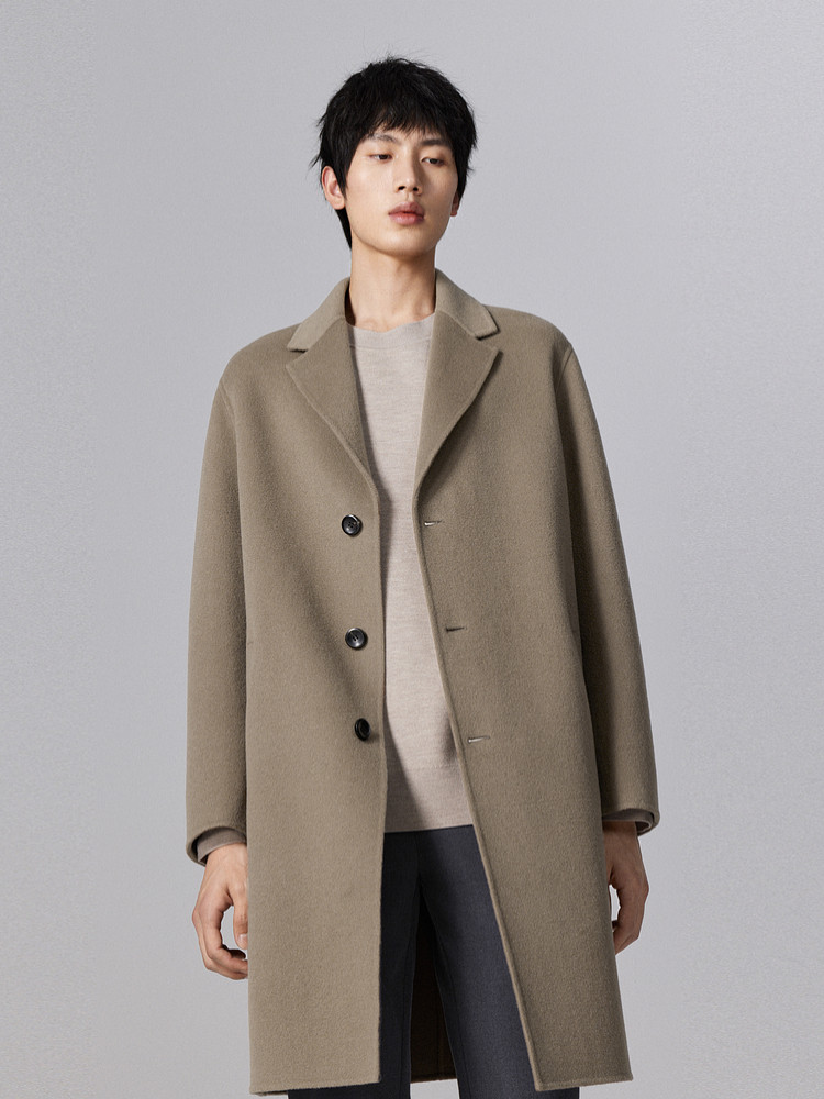 Dou Xiao Endorses mm Mai Meng Men's Mid-Length Wool and Cashmere Woolen Coat, Light Khaki Overcoat for Men 9Ea370122