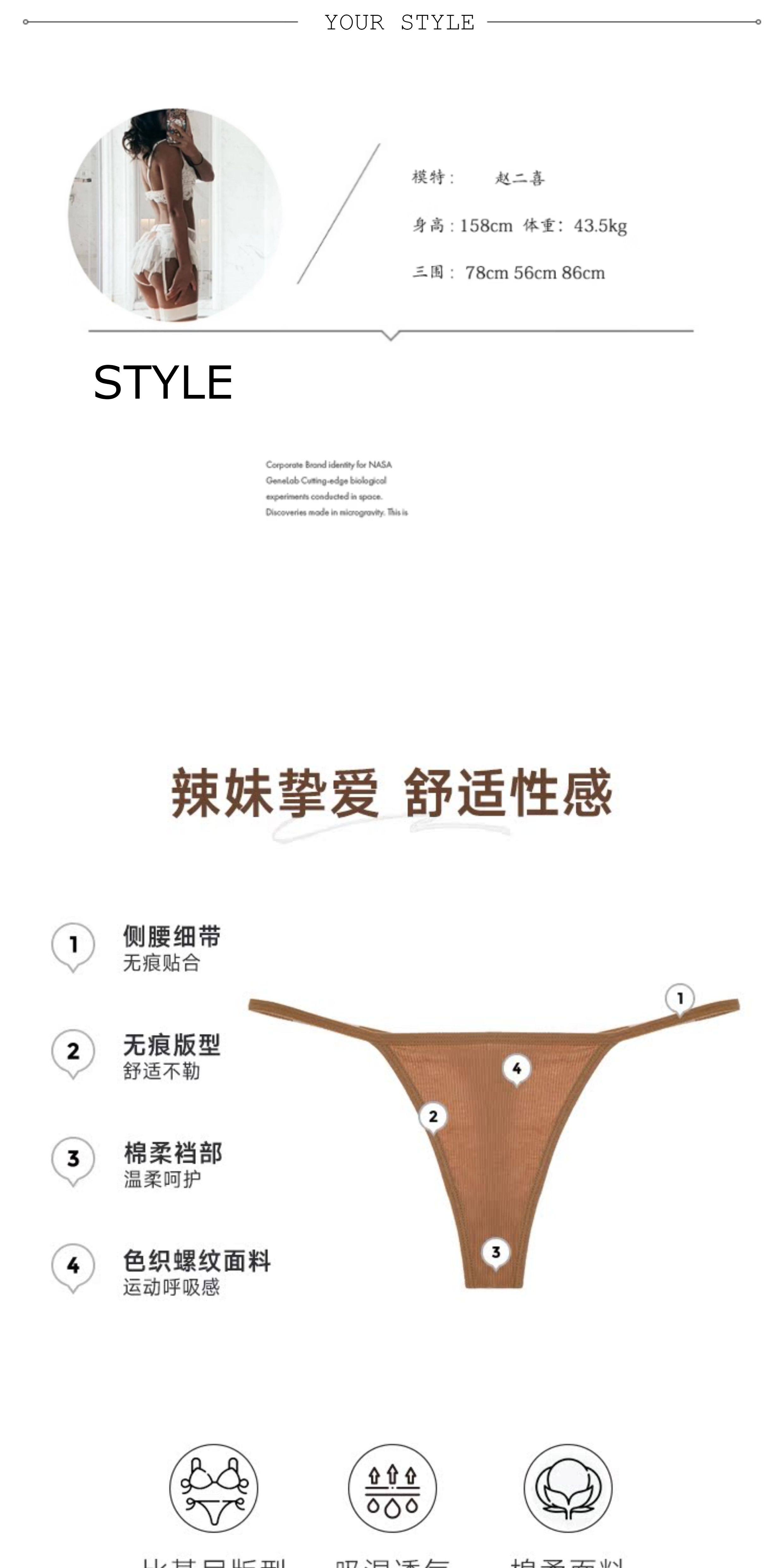 2025 New Luxury Fashion European and American Women's Underwear Sports Low-Waist Sexy Butt-Lifting Seamless Cotton Thong T-Pants