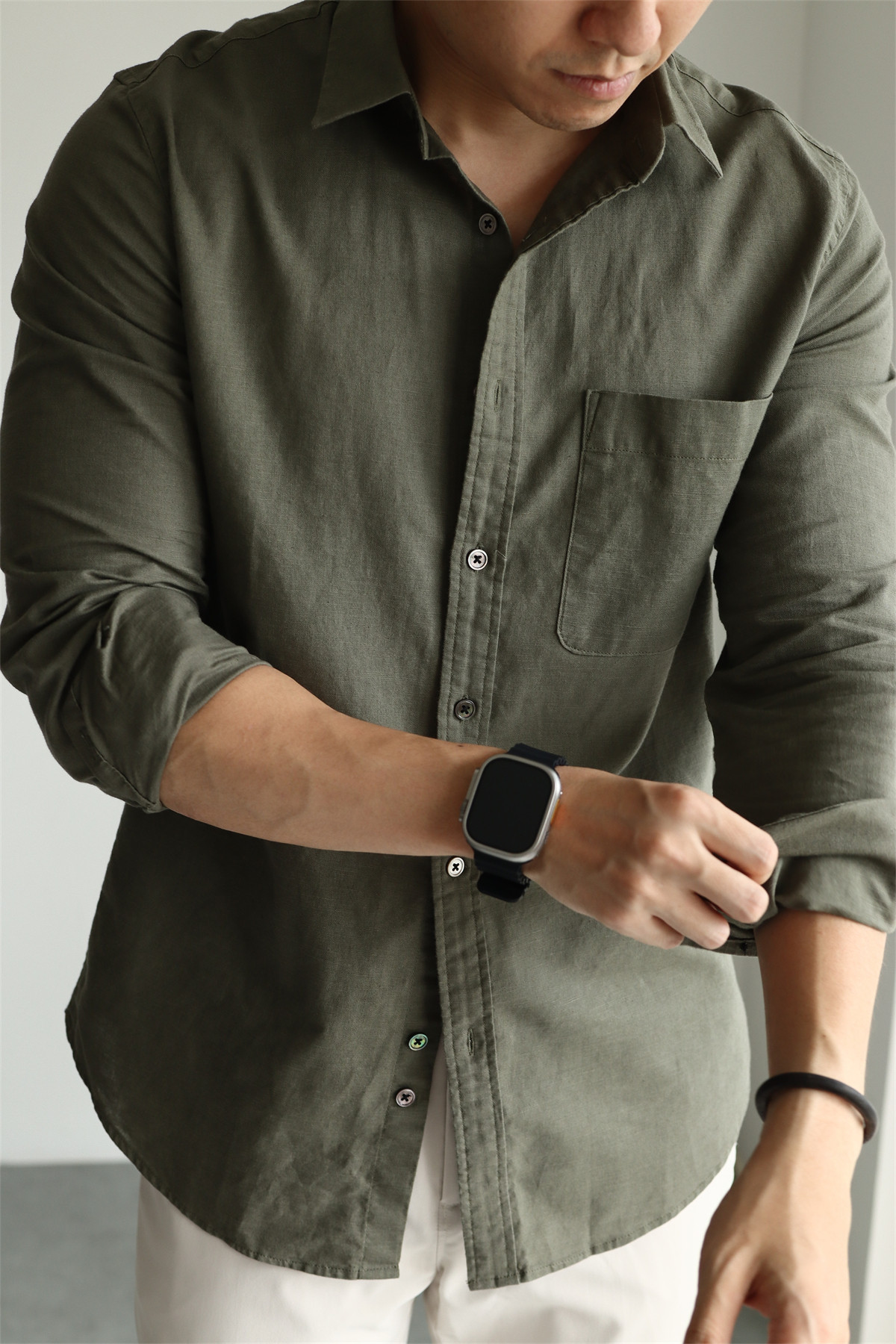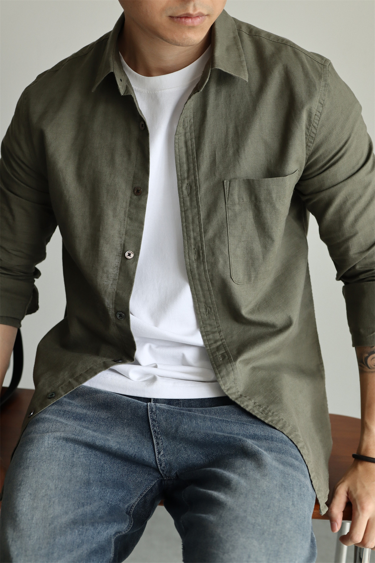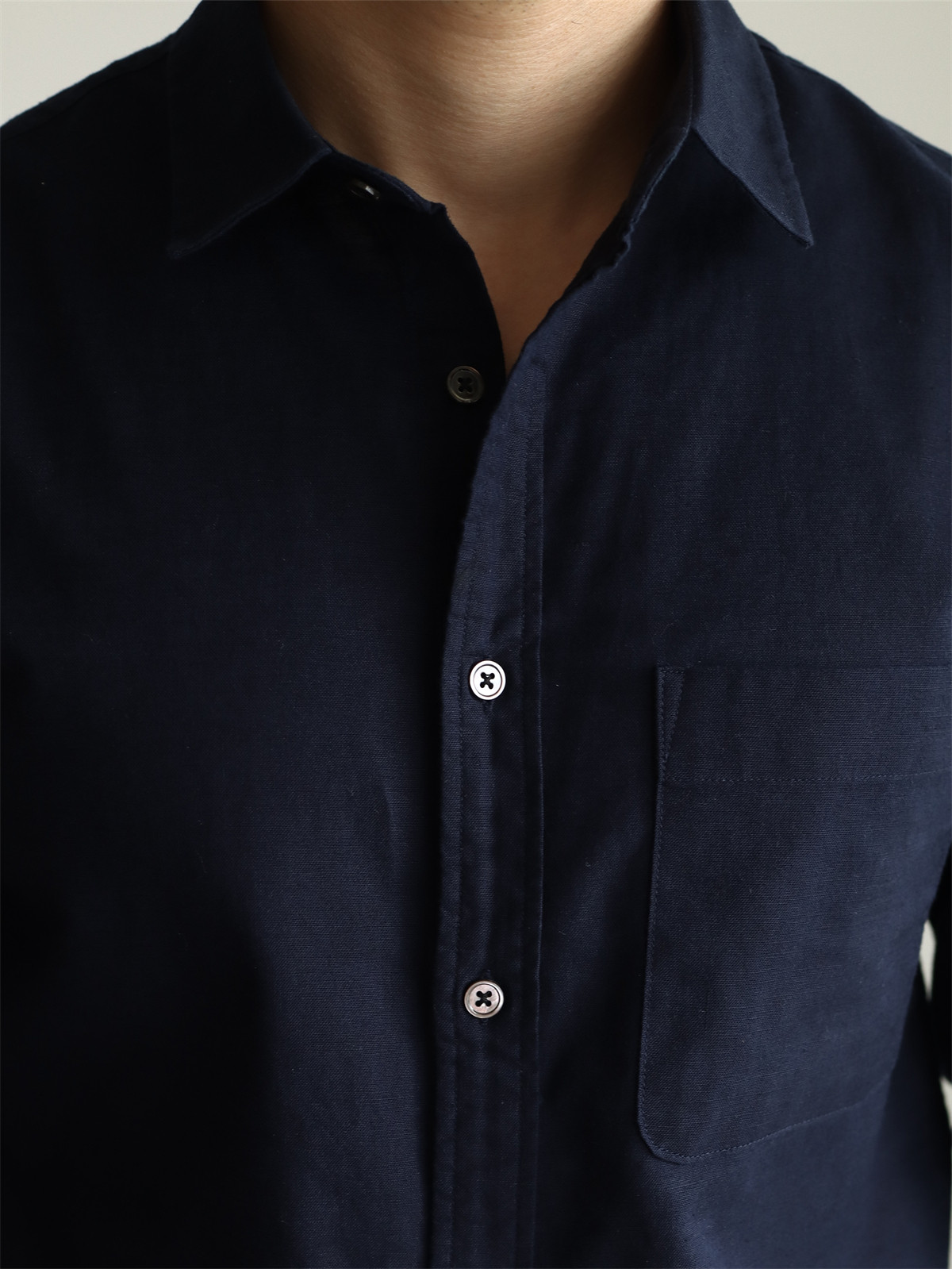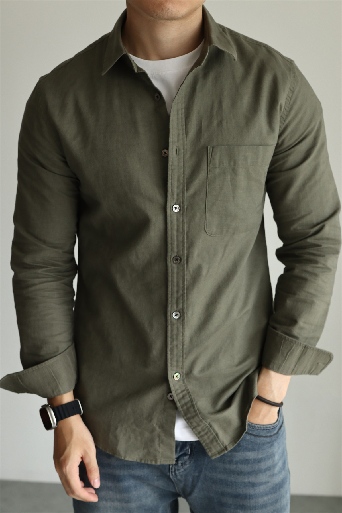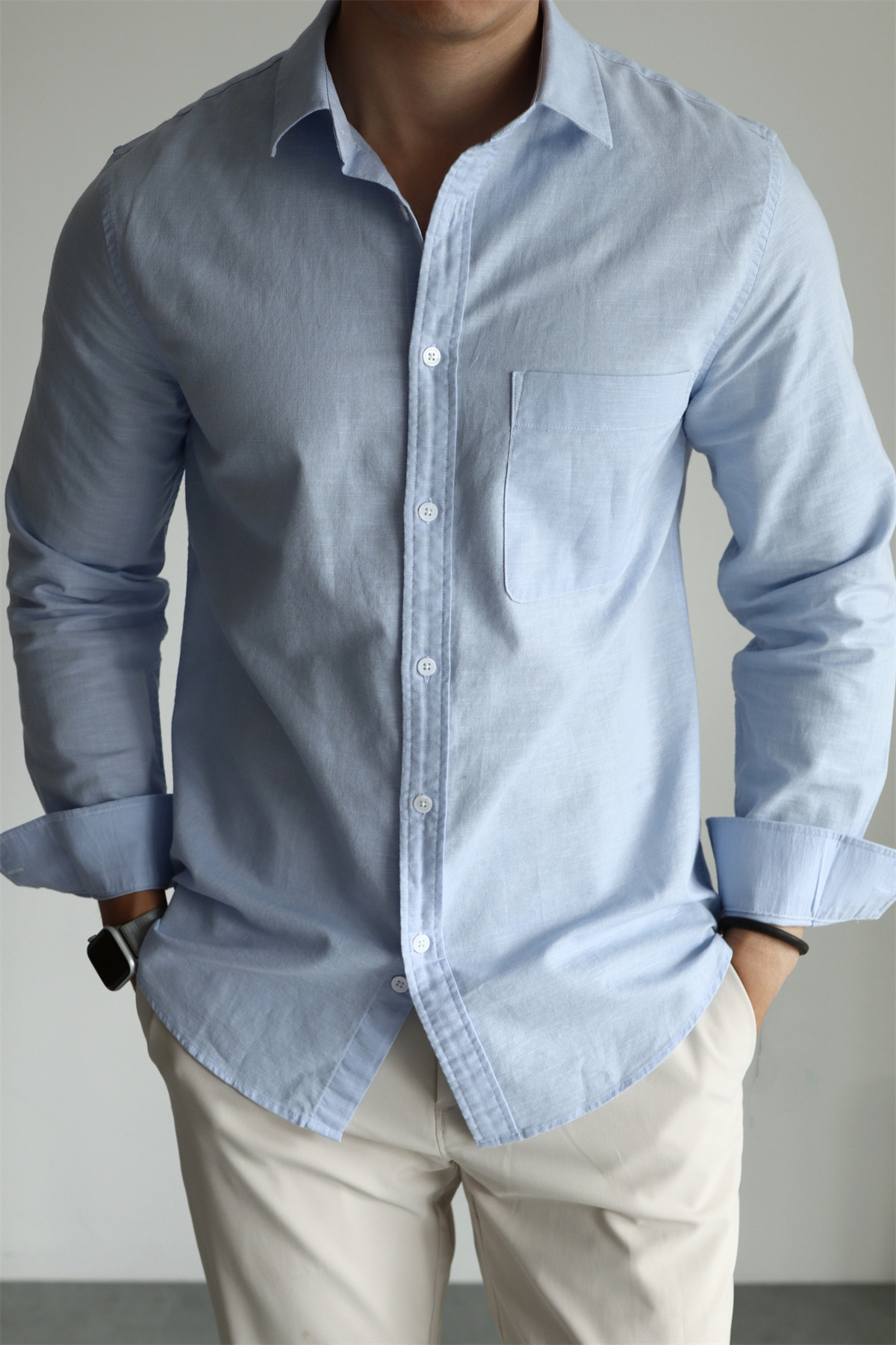 Yuxian High-End Linen Cotton Long-Sleeve Shirt with Pockets, Casual Business Lapel, Slim Fit for Commuting, Spring, Autumn and Summer for Men