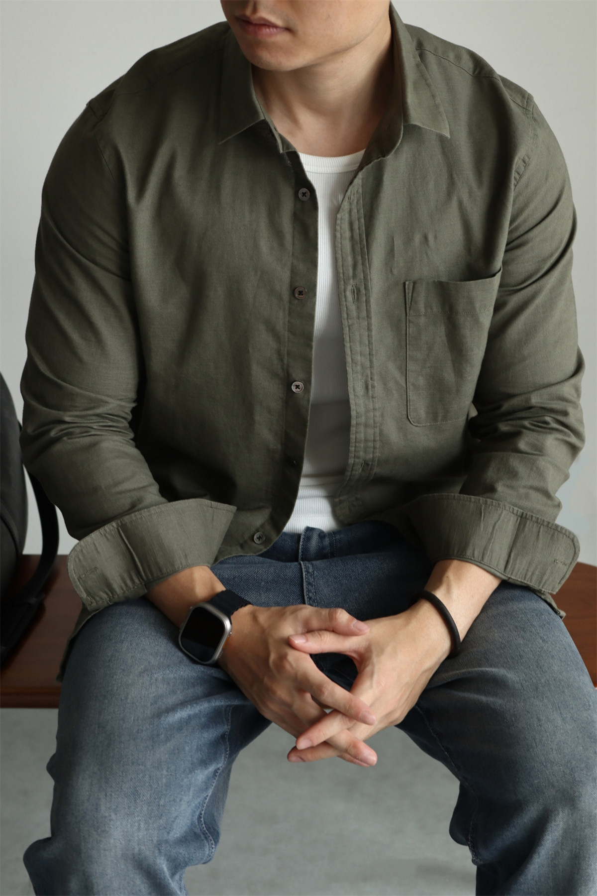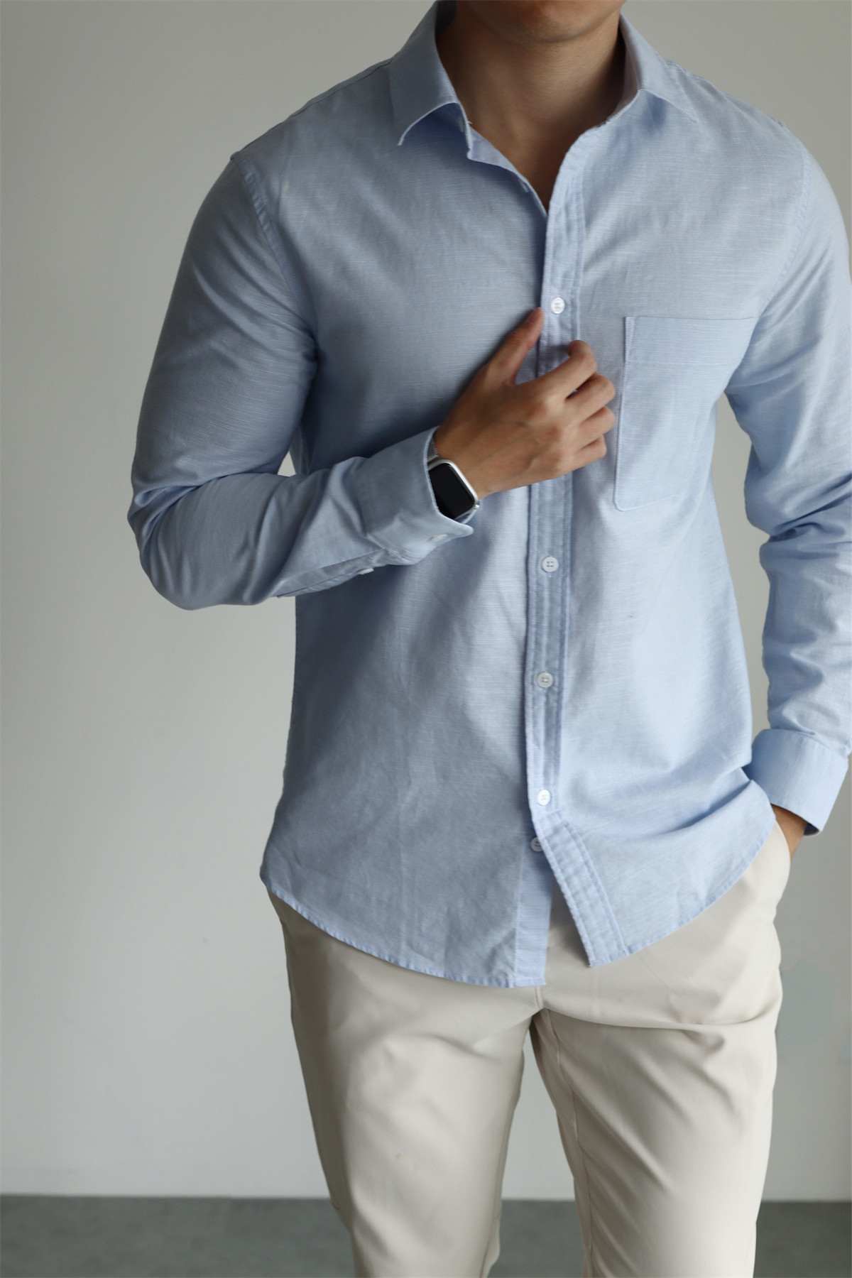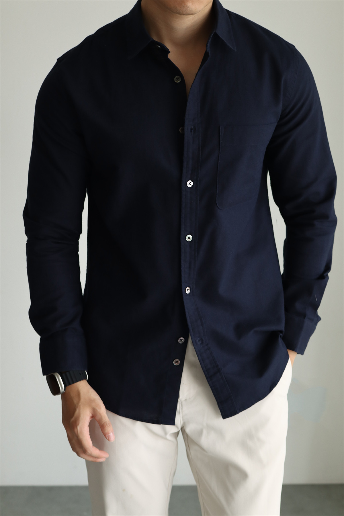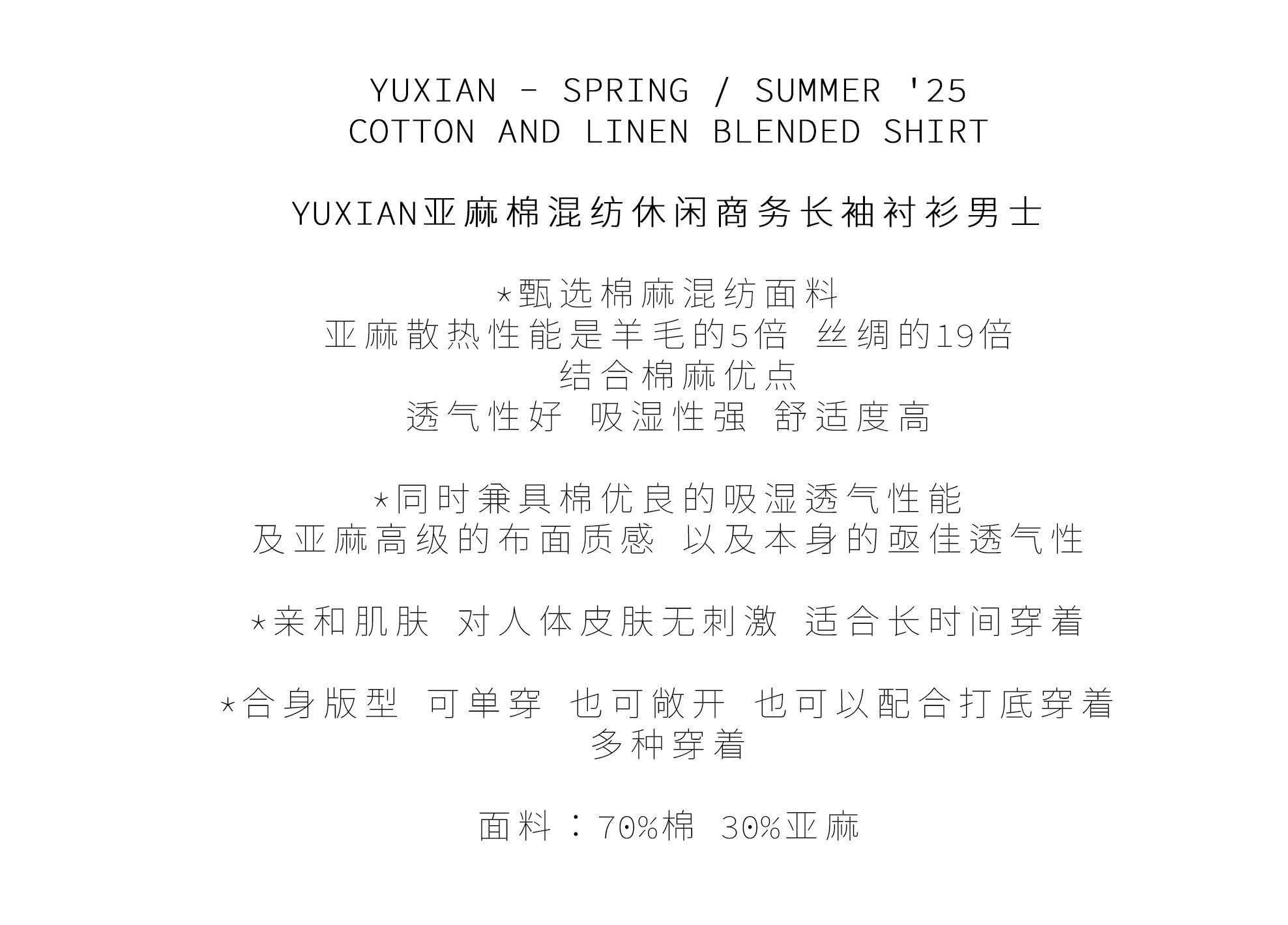 Yuxian High-End Linen Cotton Long-Sleeve Shirt with Pockets, Casual Business Lapel, Slim Fit for Commuting, Spring, Autumn and Summer for Men