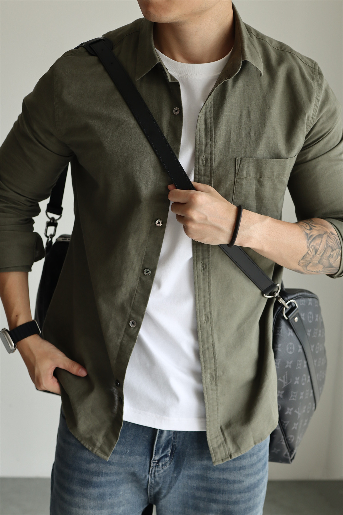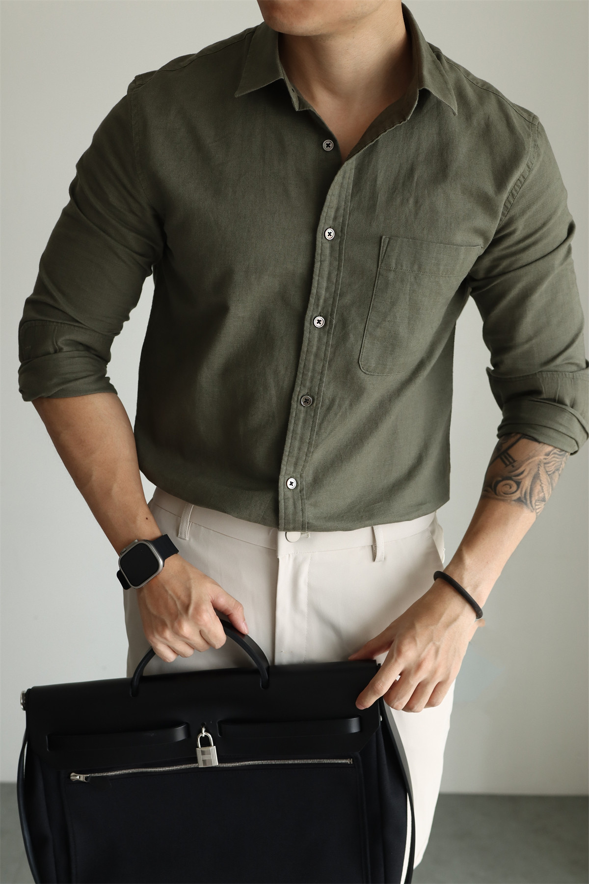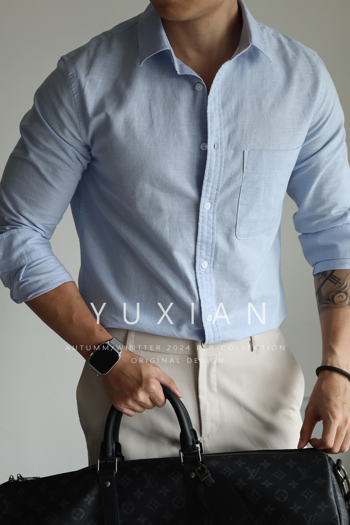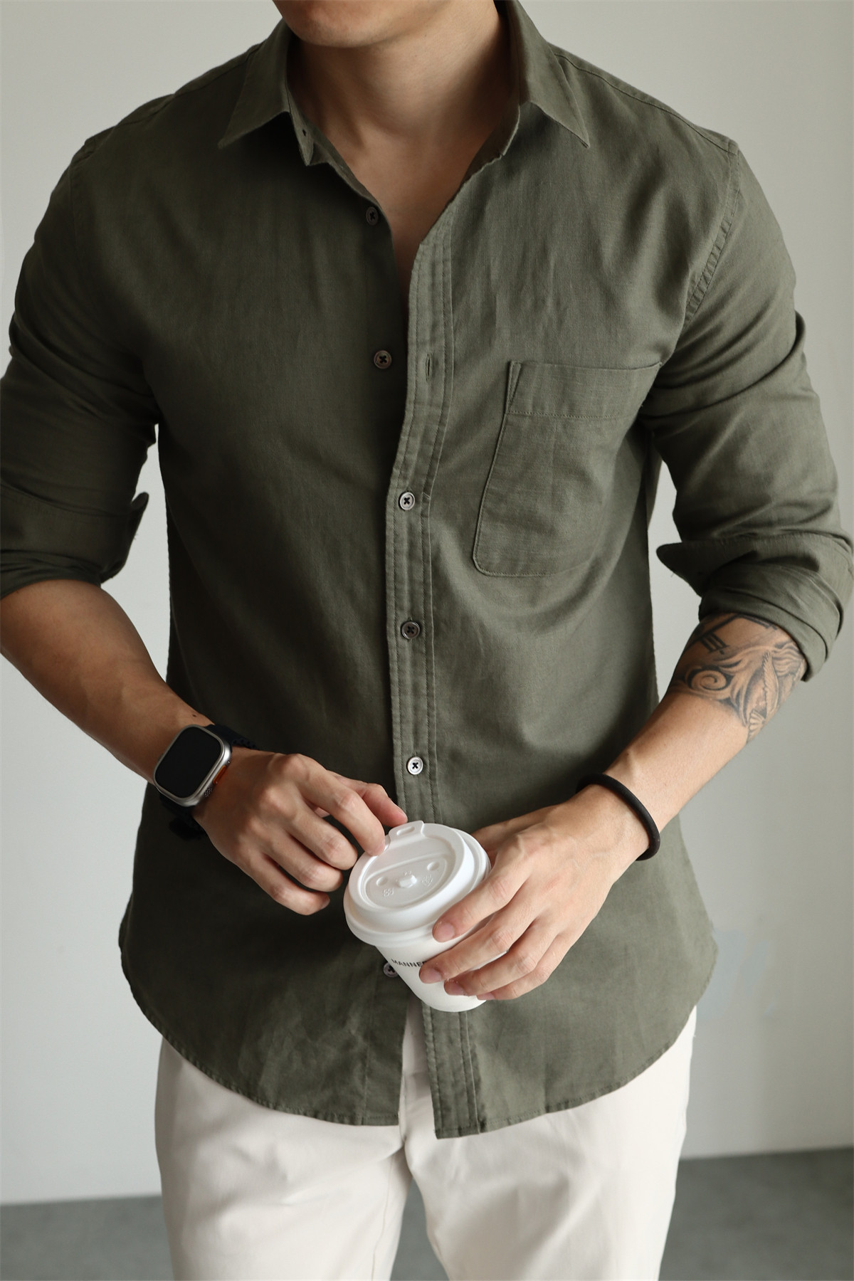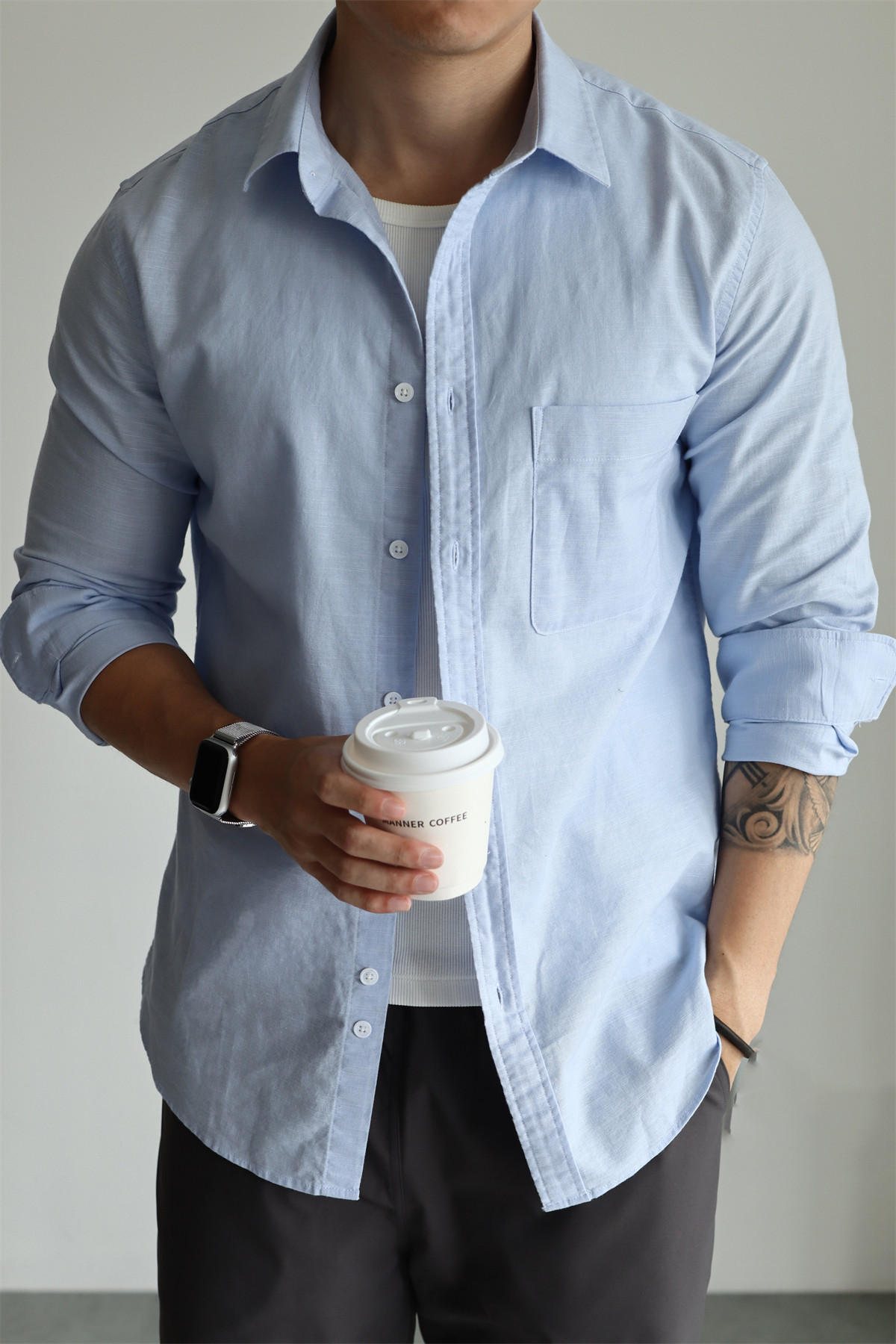 Yuxian High-End Linen Cotton Long-Sleeve Shirt with Pockets, Casual Business Lapel, Slim Fit for Commuting, Spring, Autumn and Summer for Men