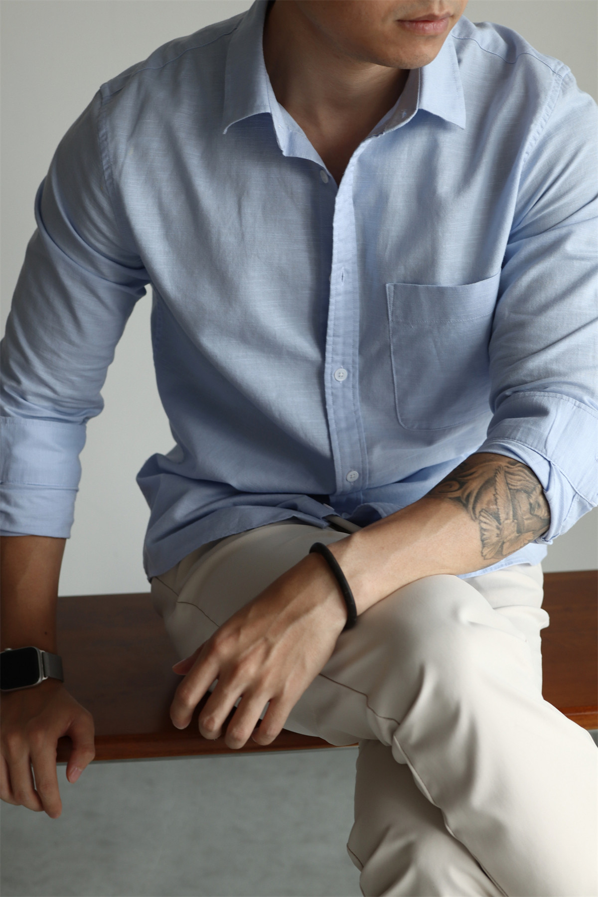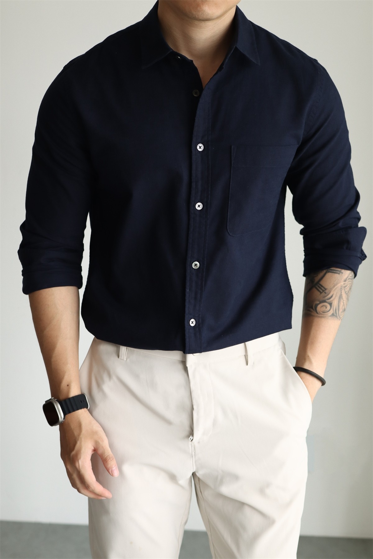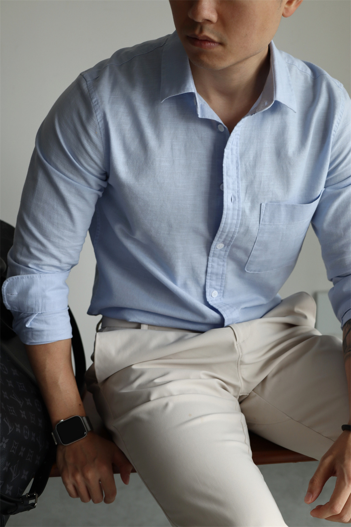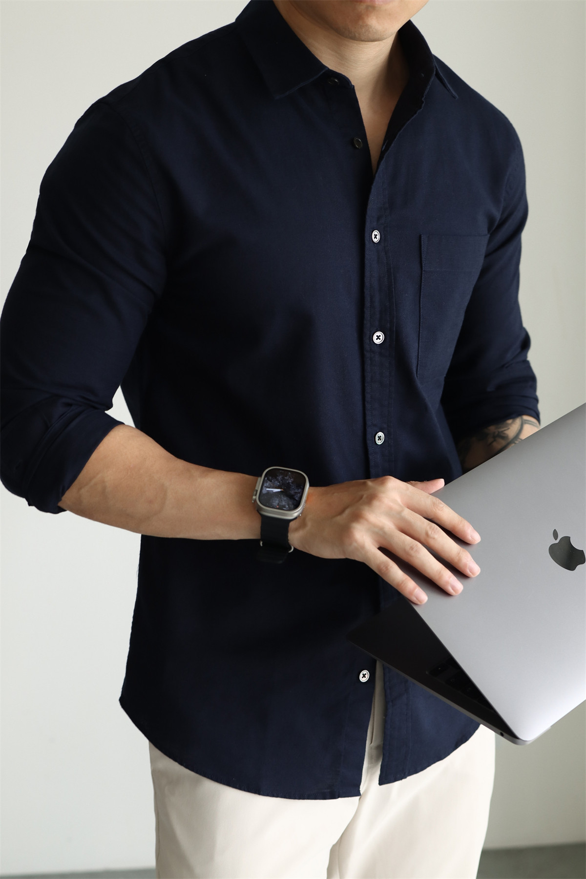 Yuxian High-End Linen Cotton Long-Sleeve Shirt with Pockets, Casual Business Lapel, Slim Fit for Commuting, Spring, Autumn and Summer for Men