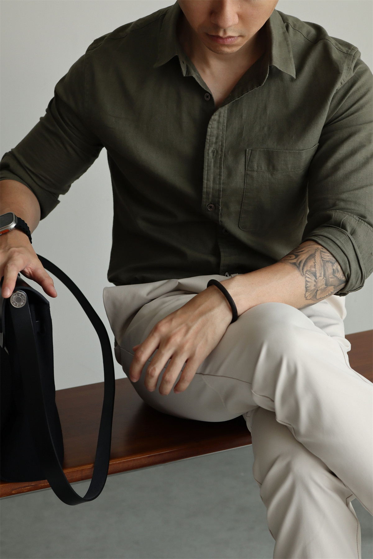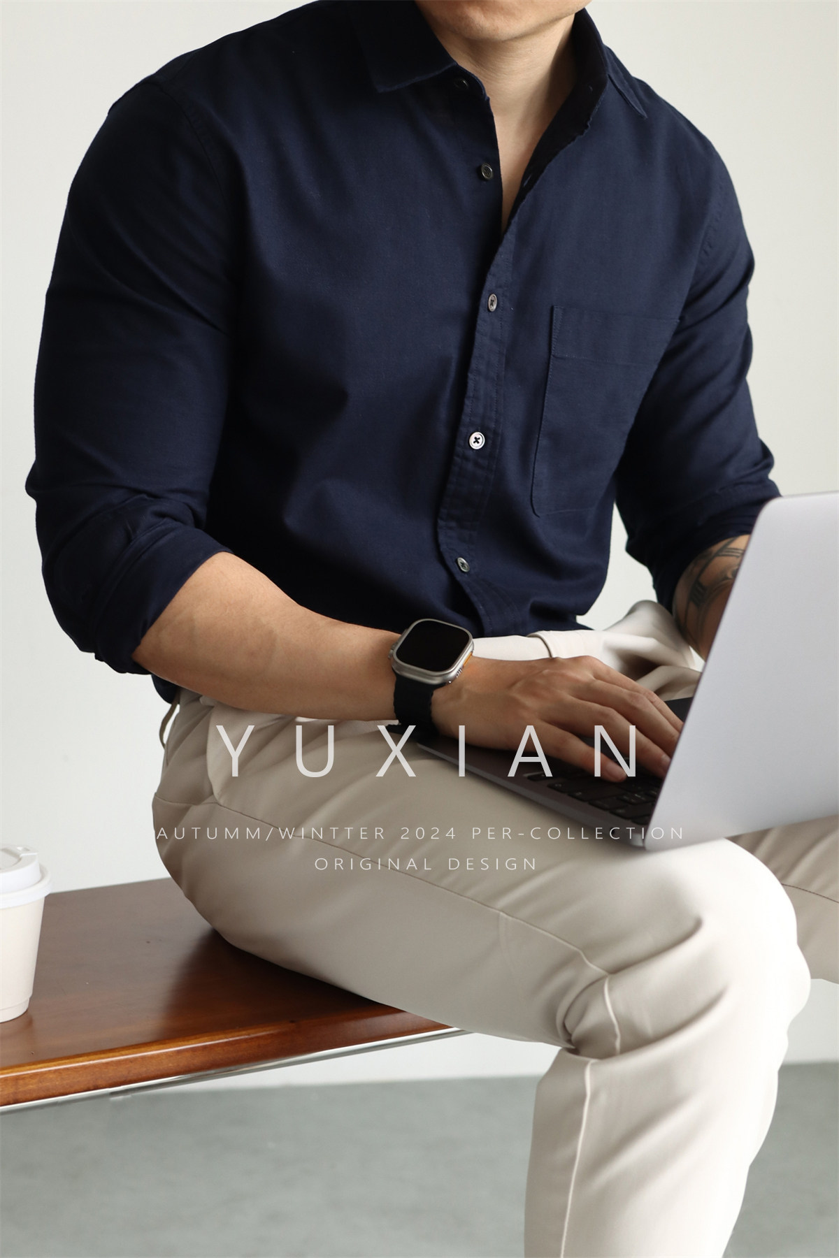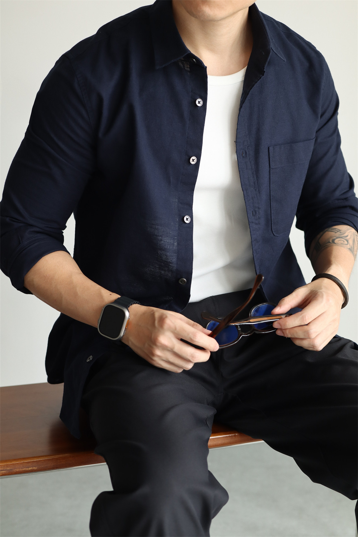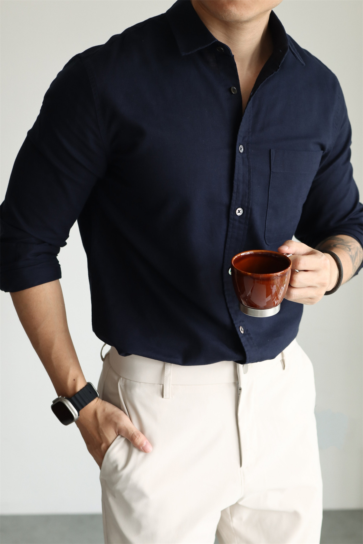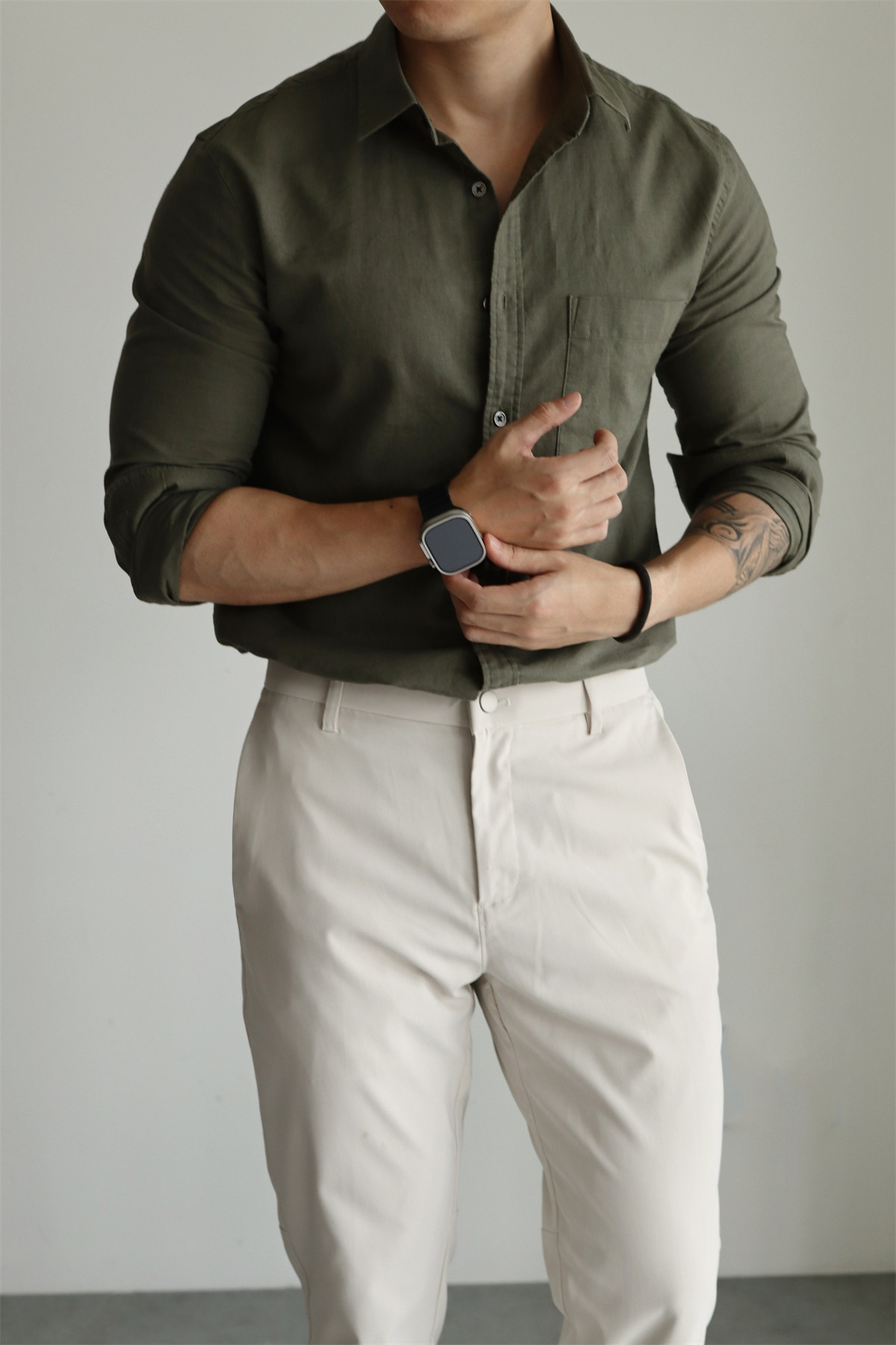 Yuxian High-End Linen Cotton Long-Sleeve Shirt with Pockets, Casual Business Lapel, Slim Fit for Commuting, Spring, Autumn and Summer for Men