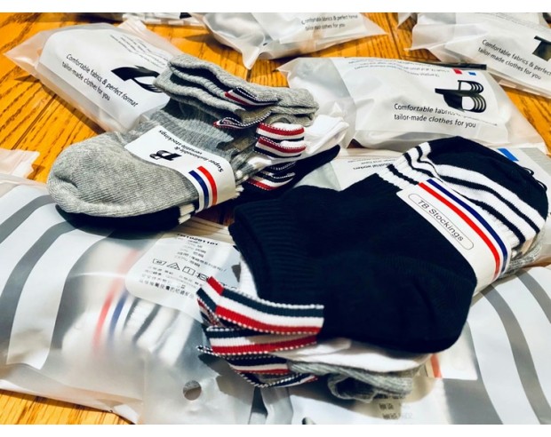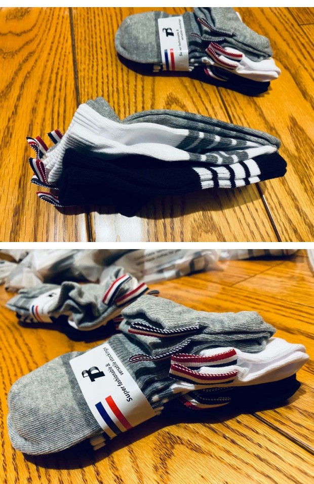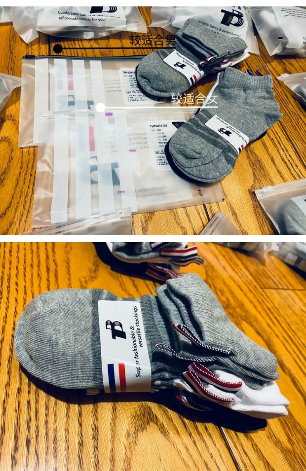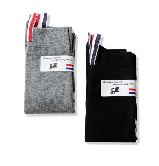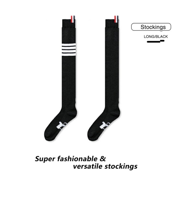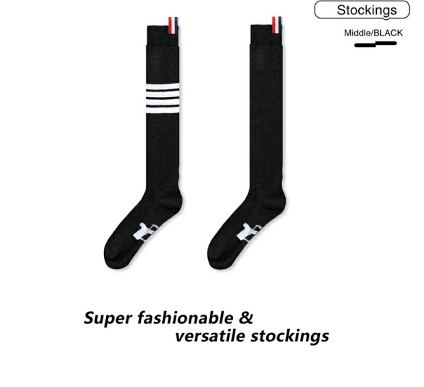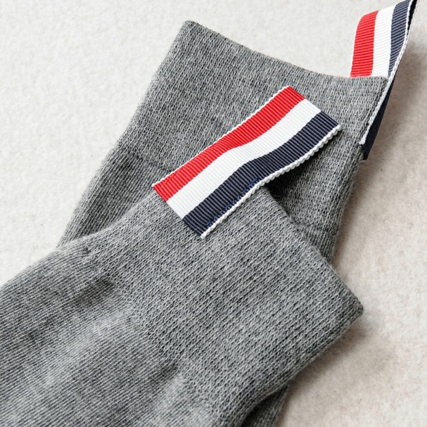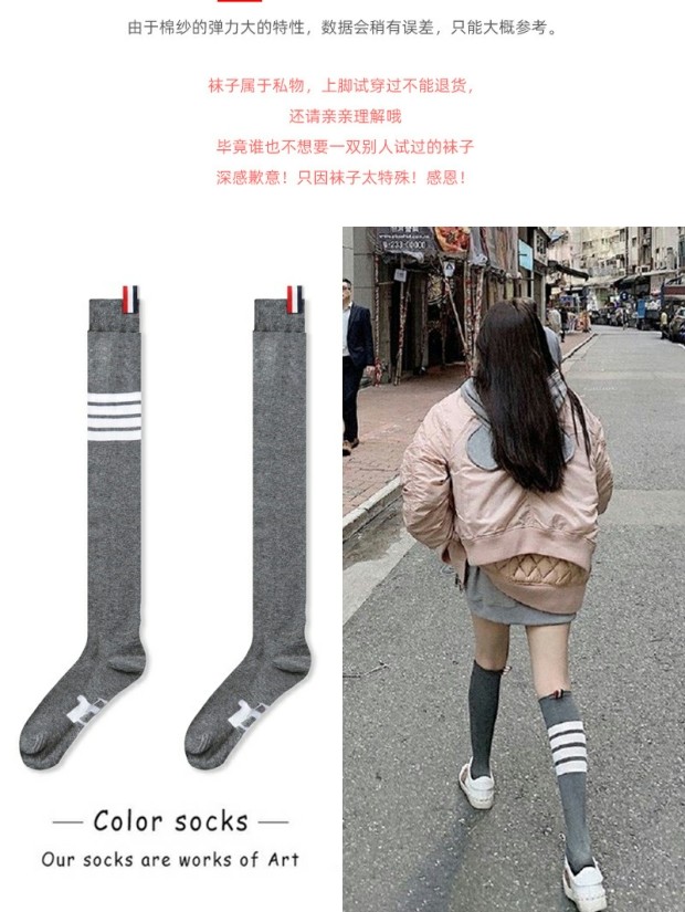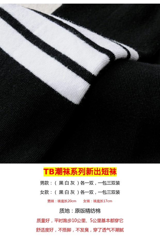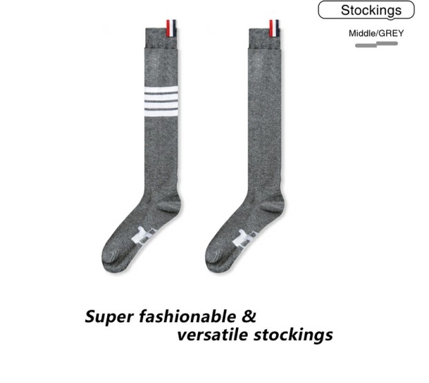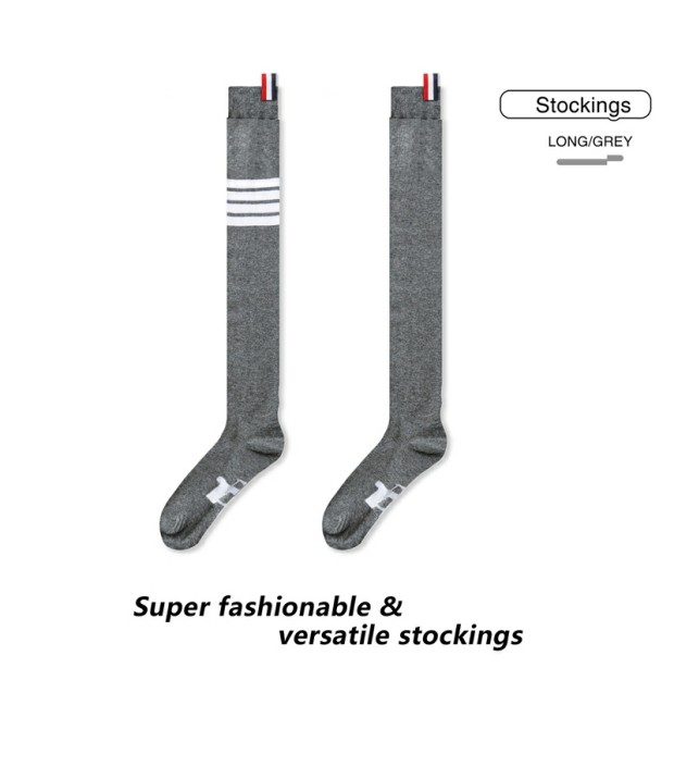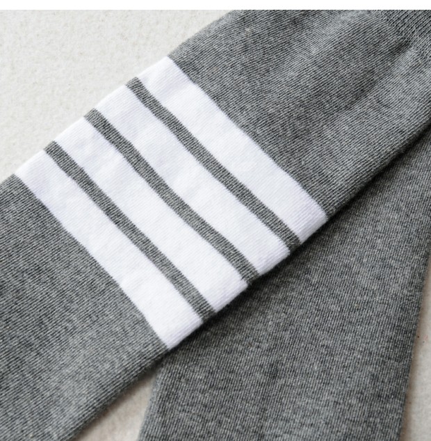 Tb Four-Stripe Gray Mid-Calf Socks, Pure Cotton Japanese Style Over-The-Knee Socks, Long Socks, Short Socks, Trendy Jk Style for Women