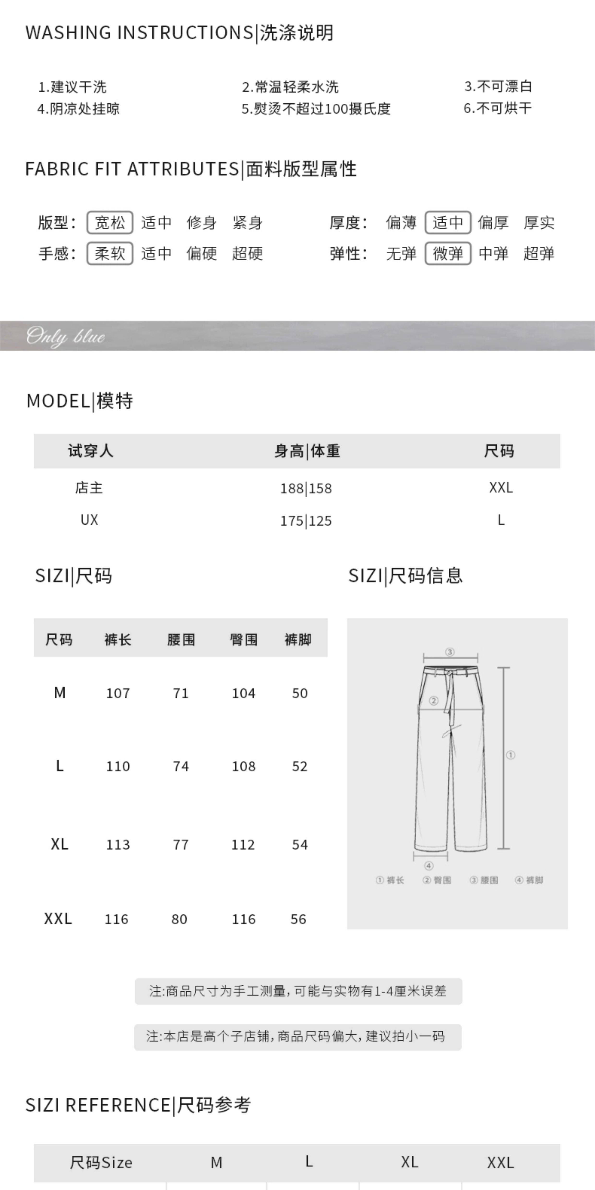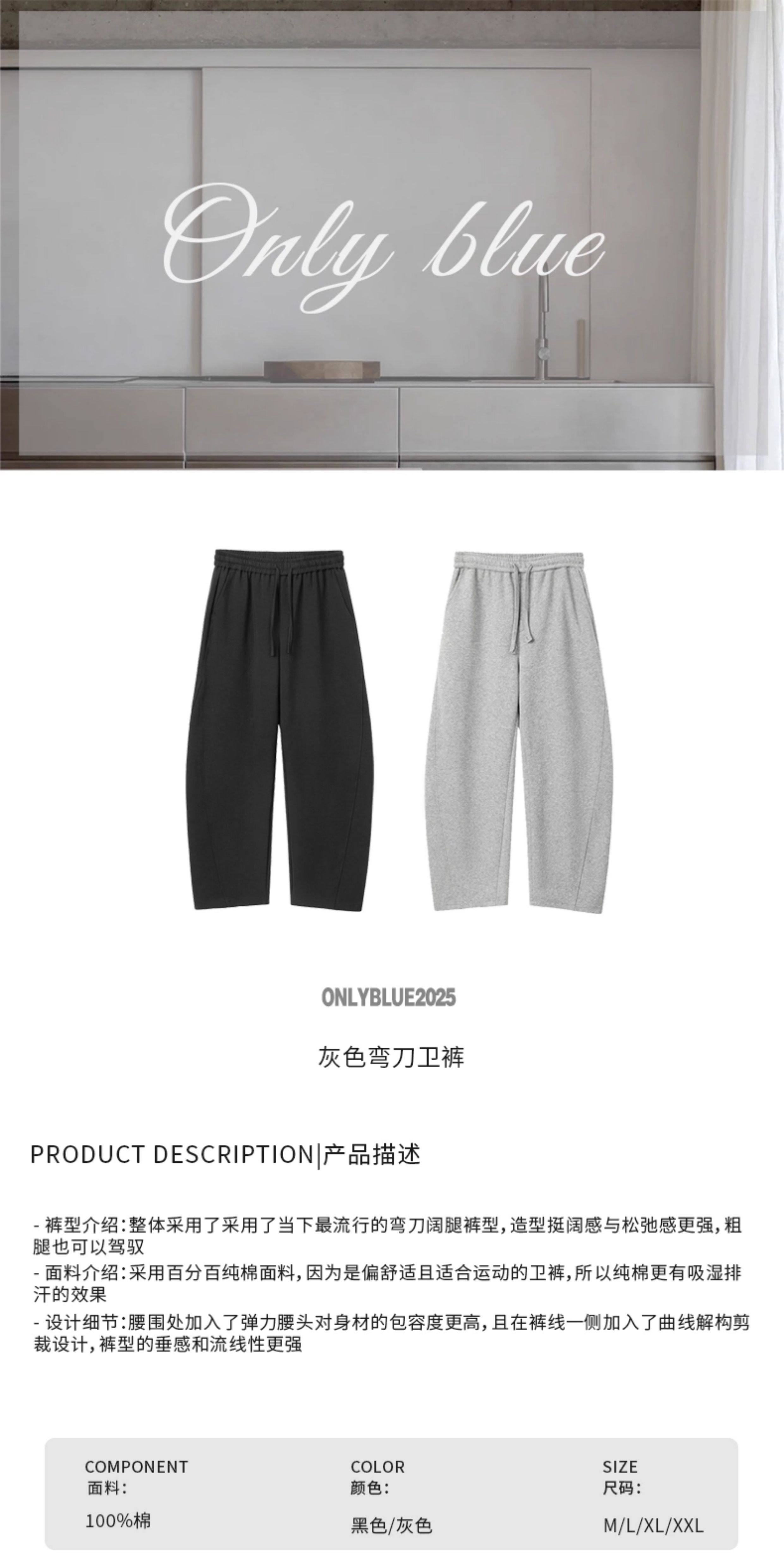 Only Blue【Scimitar Pants】 Air Layer Minimalist Scimitar Three-Dimensional Cut Draped Wide-Leg Sweatpants
