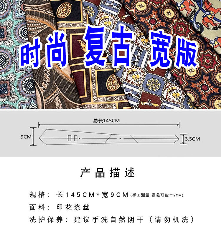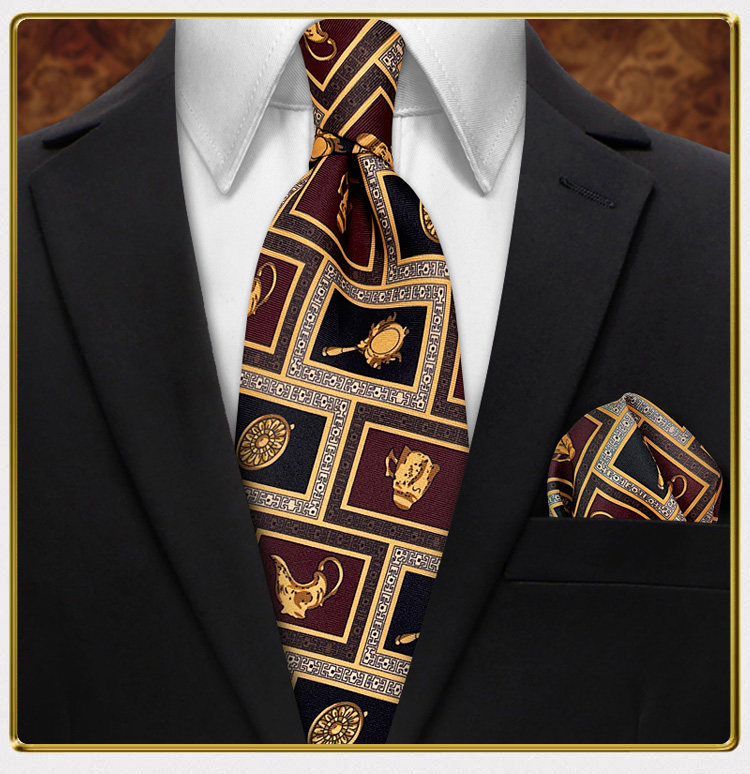 Hong Kong Style 90S Retro 9cm Wide Tie British Hand-Tied Men's Pocket Square Formal Business Pocket Square Set