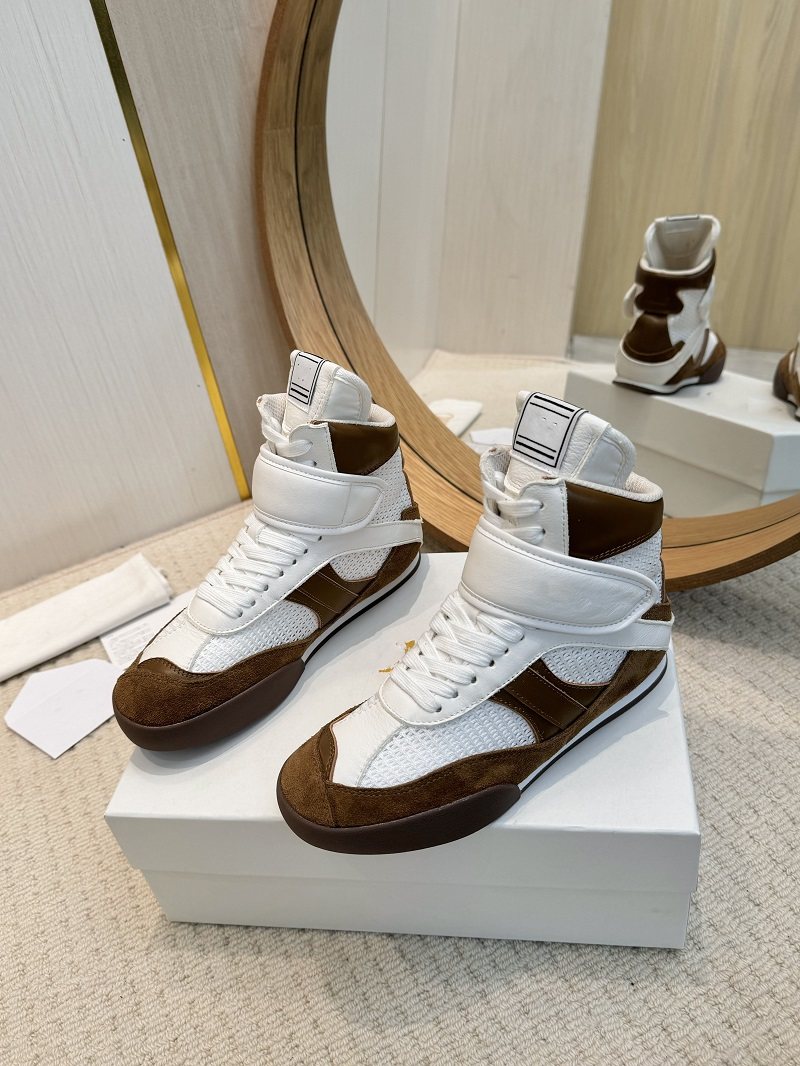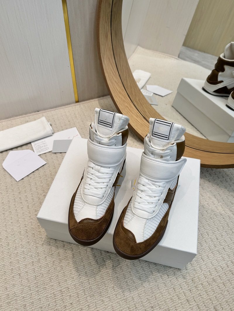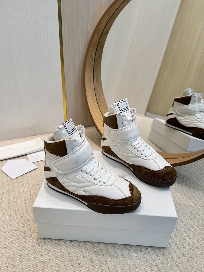 2025 Early Spring New High-Top Color-Blocked German Training Shoes for Women, Casual Retro Sneakers, Leather Lace-Up Thick-Soled White Shoes