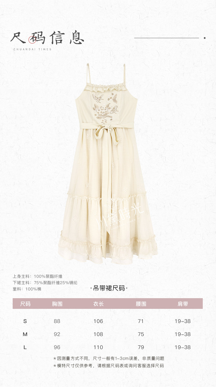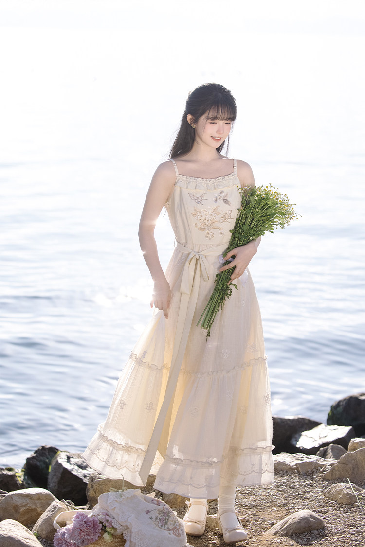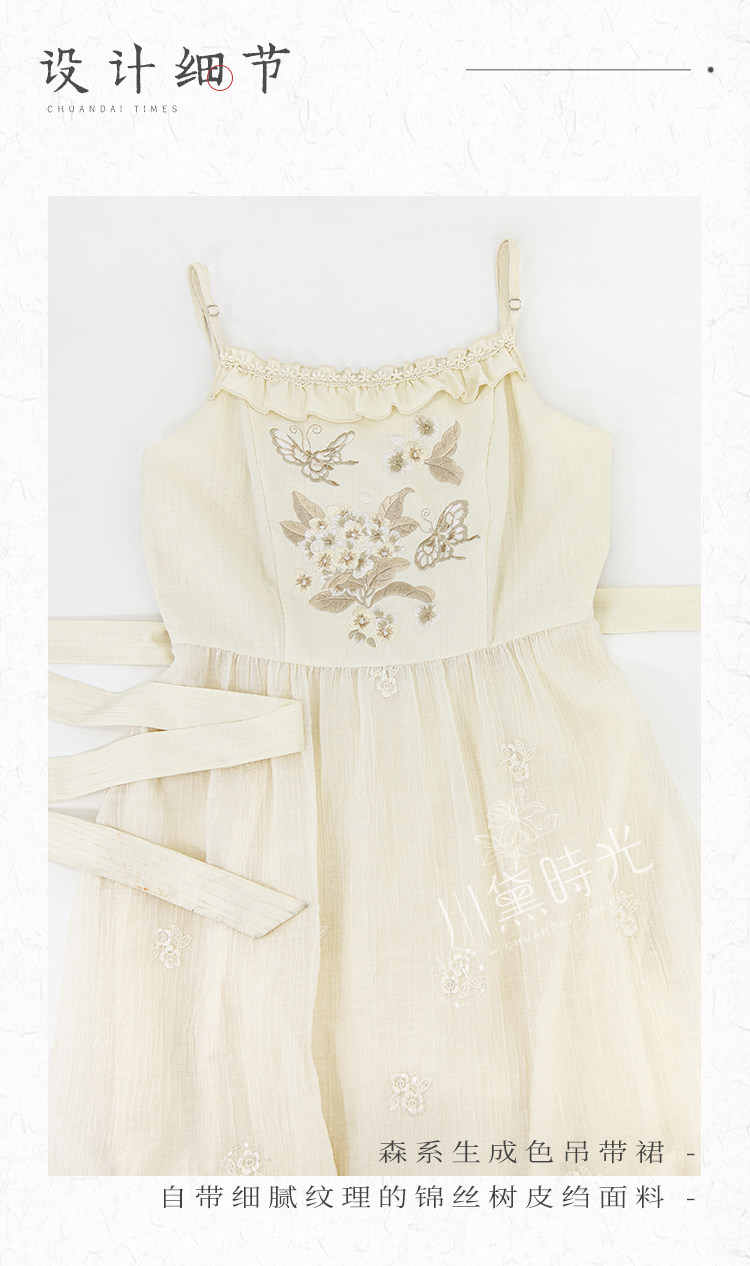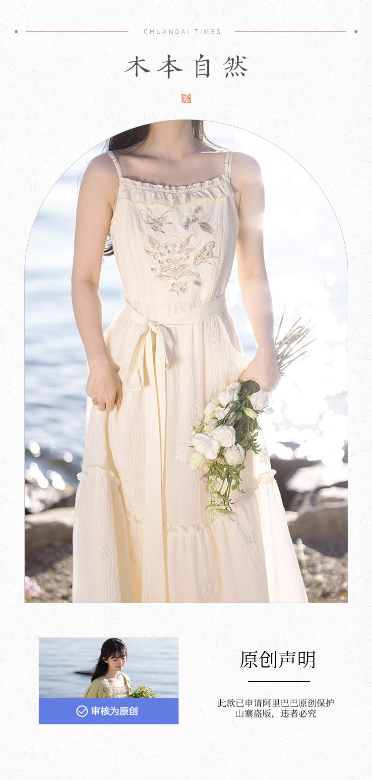 Chuandai Time: Natural and Elegant Everyday Wear Dress with Lace Hem, Gentle Embroidered Camisole Dress