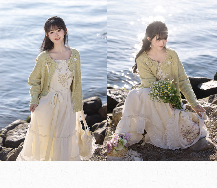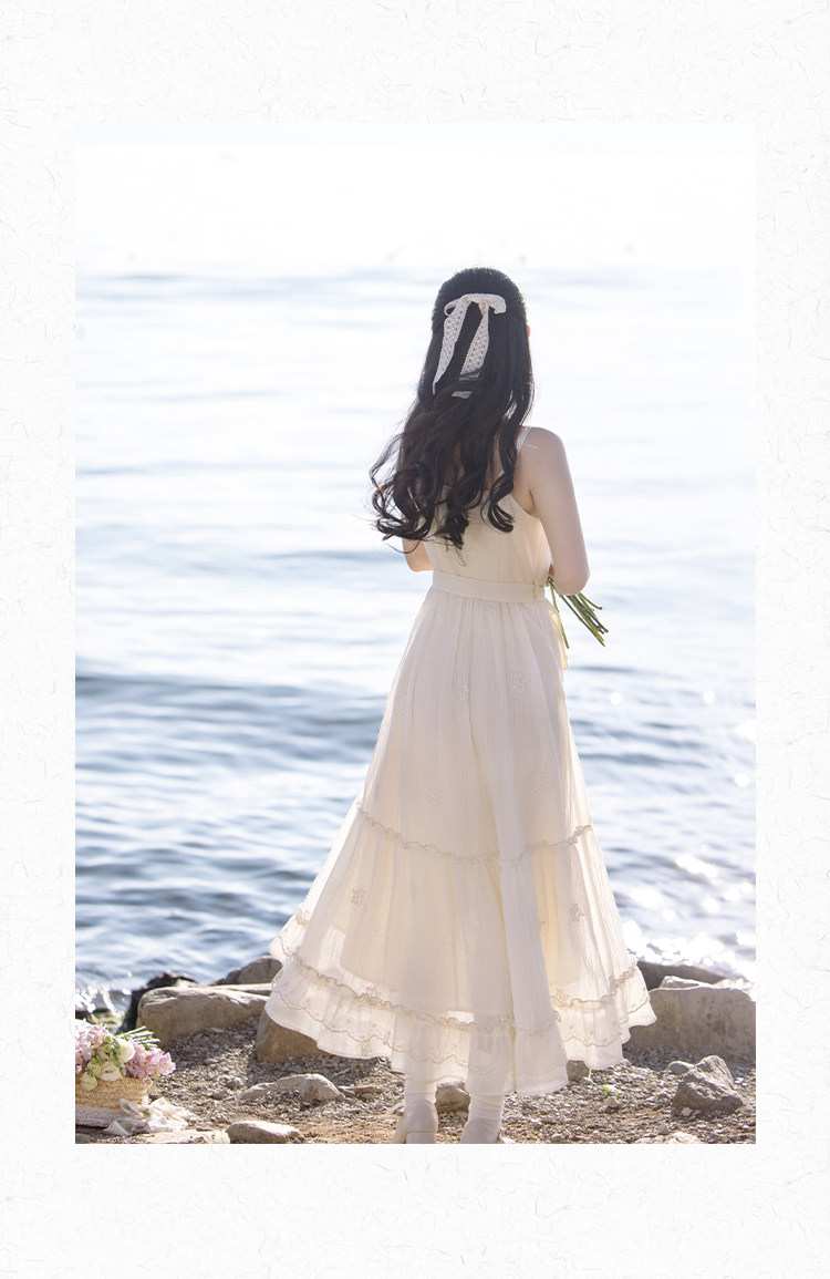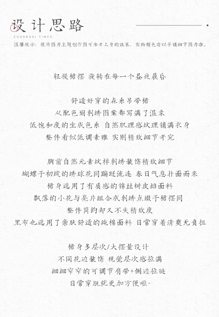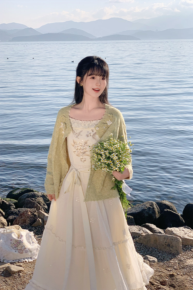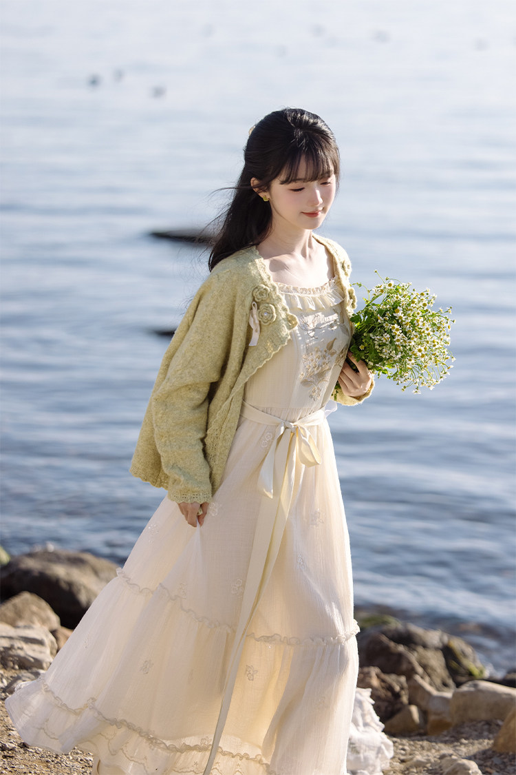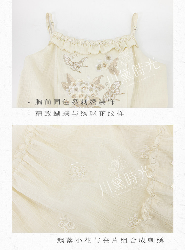 Chuandai Time: Natural and Elegant Everyday Wear Dress with Lace Hem, Gentle Embroidered Camisole Dress