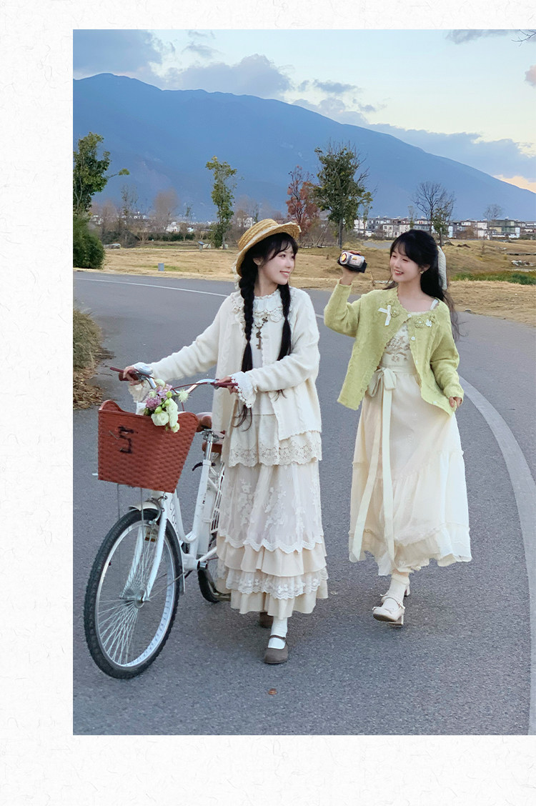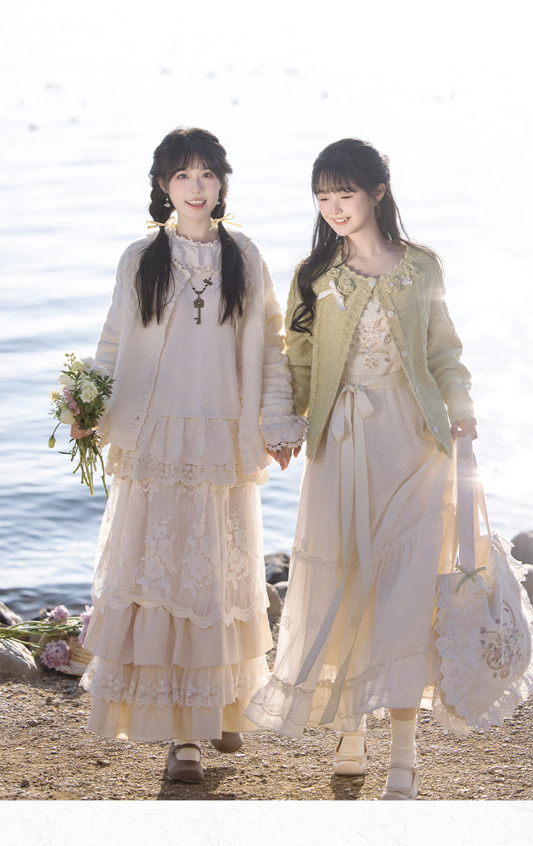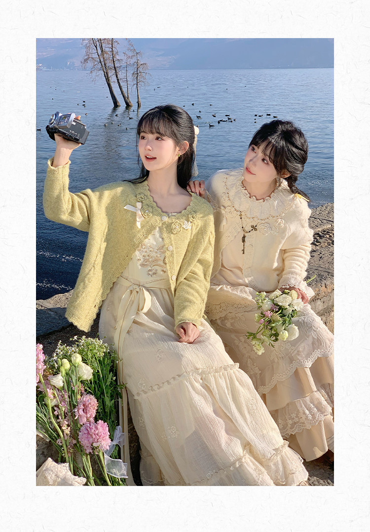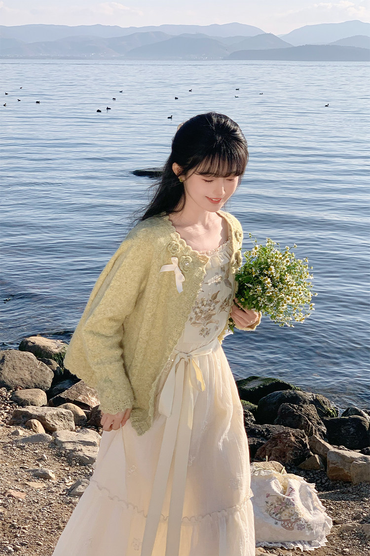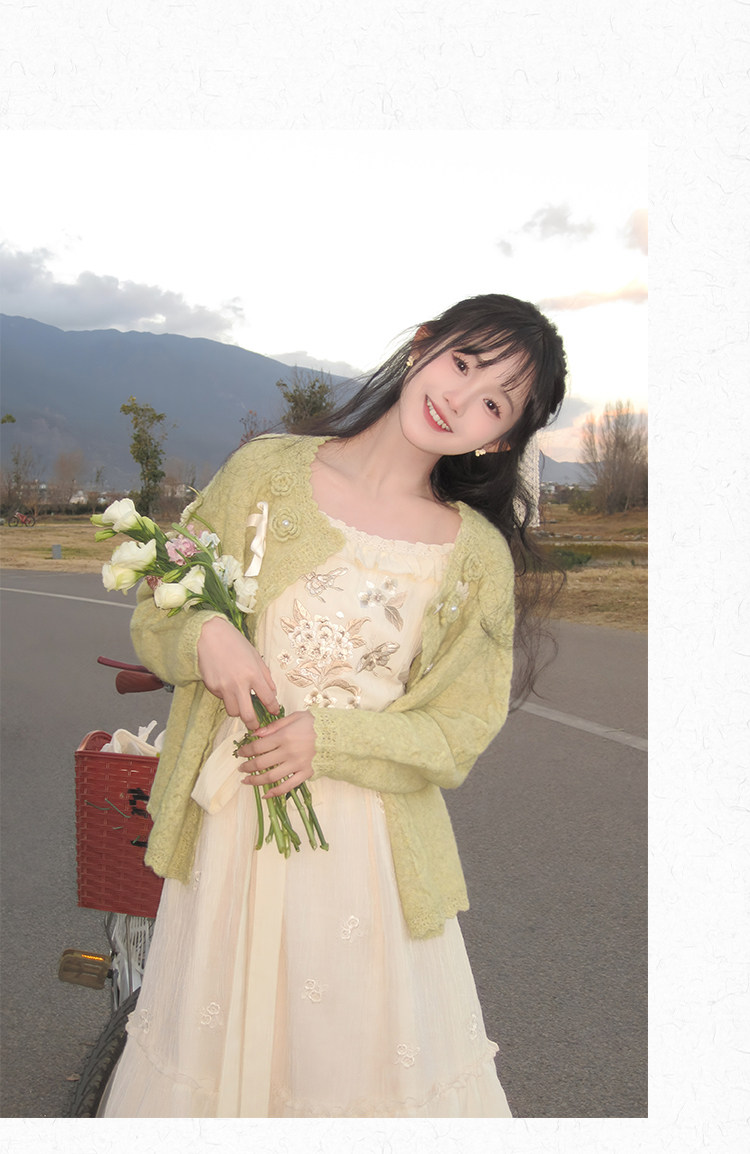 Chuandai Time: Natural and Elegant Everyday Wear Dress with Lace Hem, Gentle Embroidered Camisole Dress