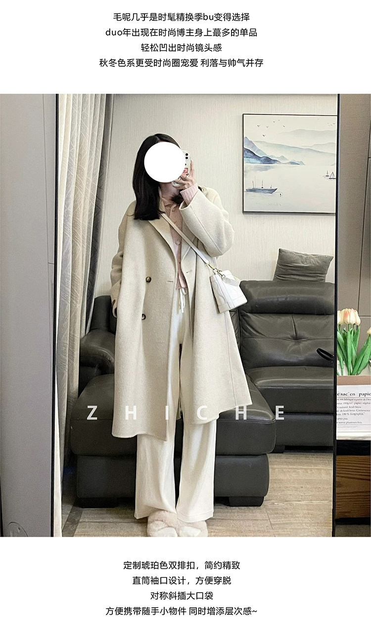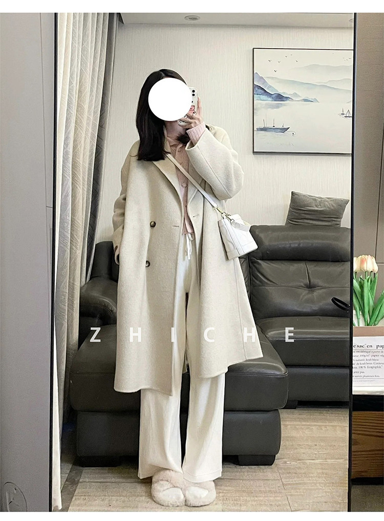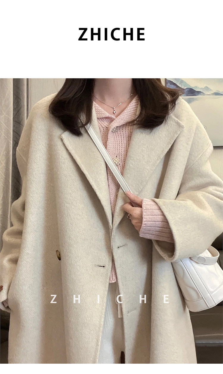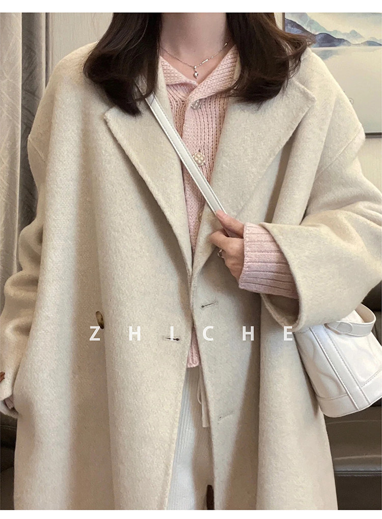 High-End Oatmeal-Colored Petite Woolen Coat for Women, Mid-Length, 2023 Autumn and Winter, Korean Style Hepburn-Style Woolen Jacket