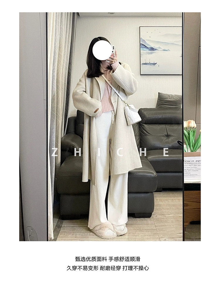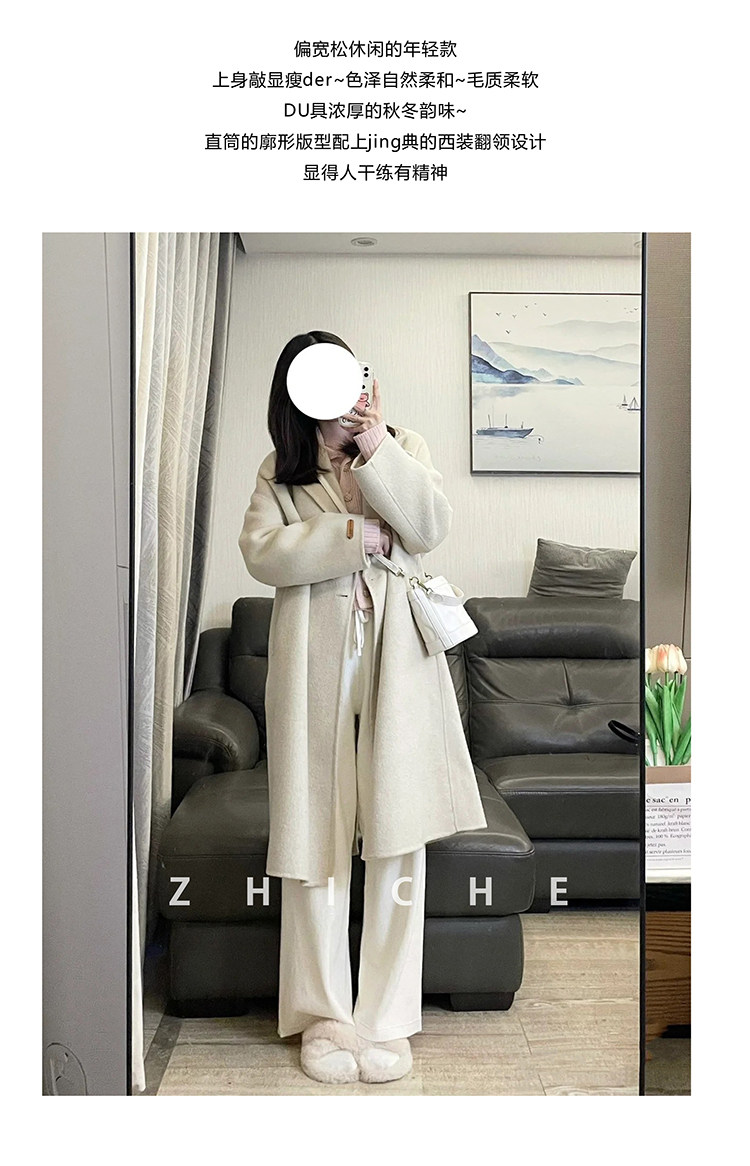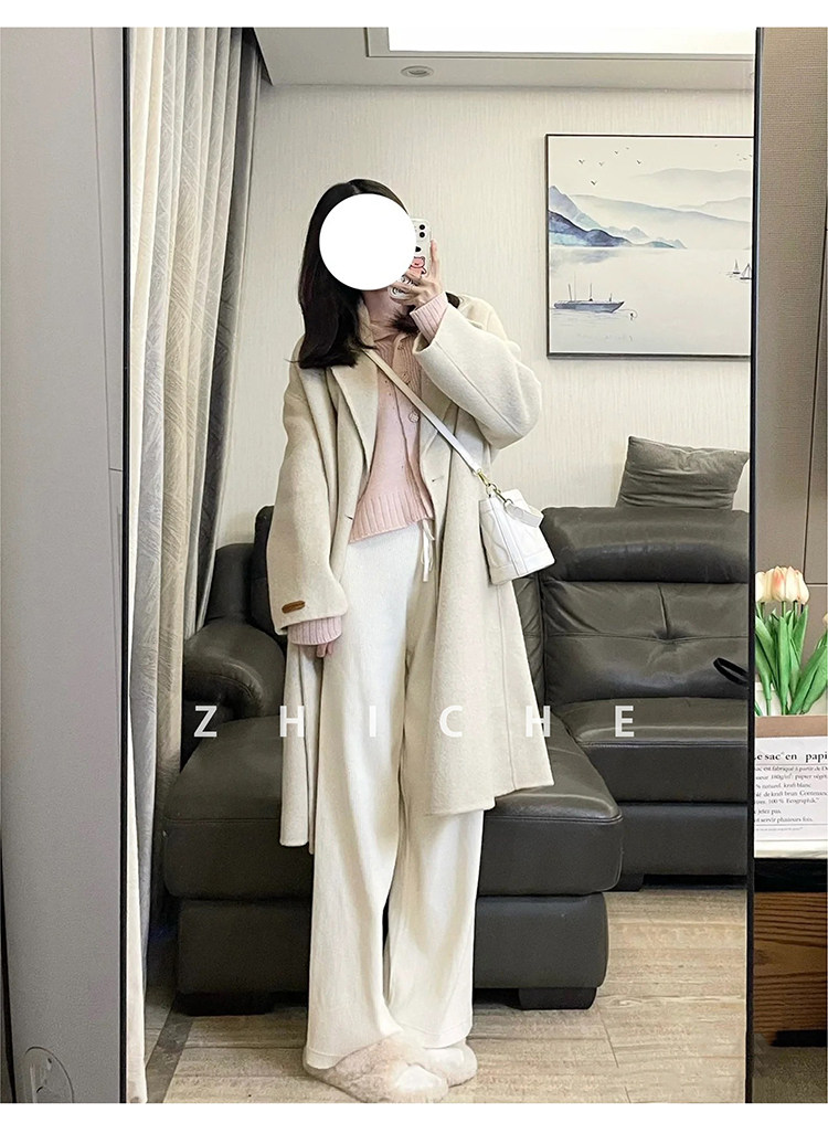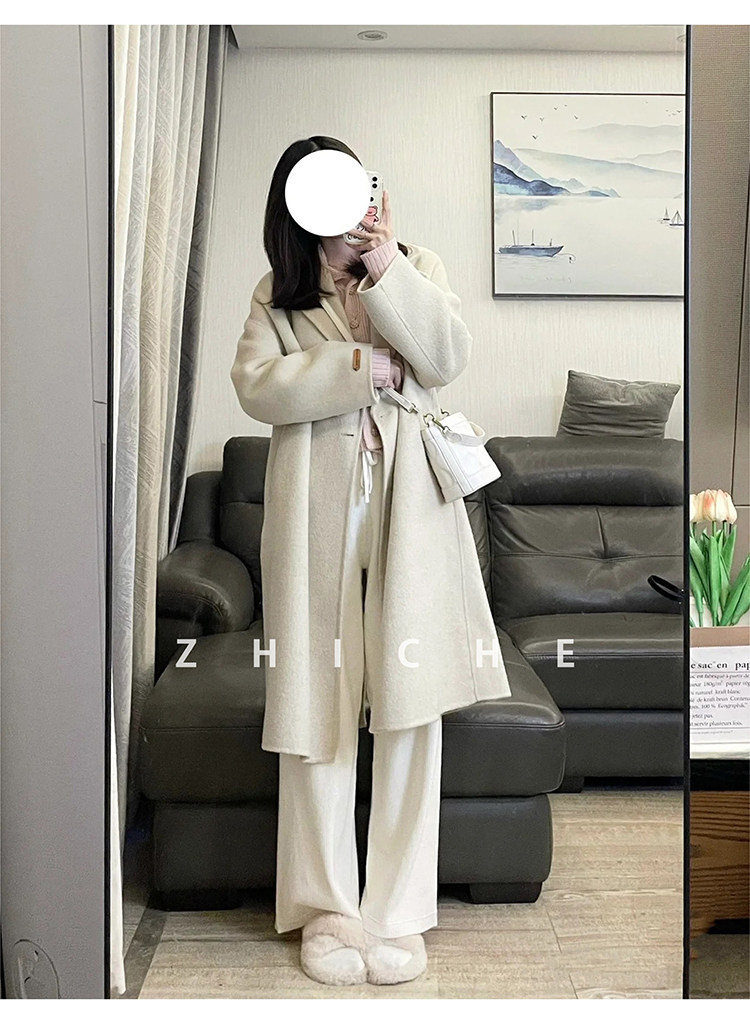 High-End Oatmeal-Colored Petite Woolen Coat for Women, Mid-Length, 2023 Autumn and Winter, Korean Style Hepburn-Style Woolen Jacket