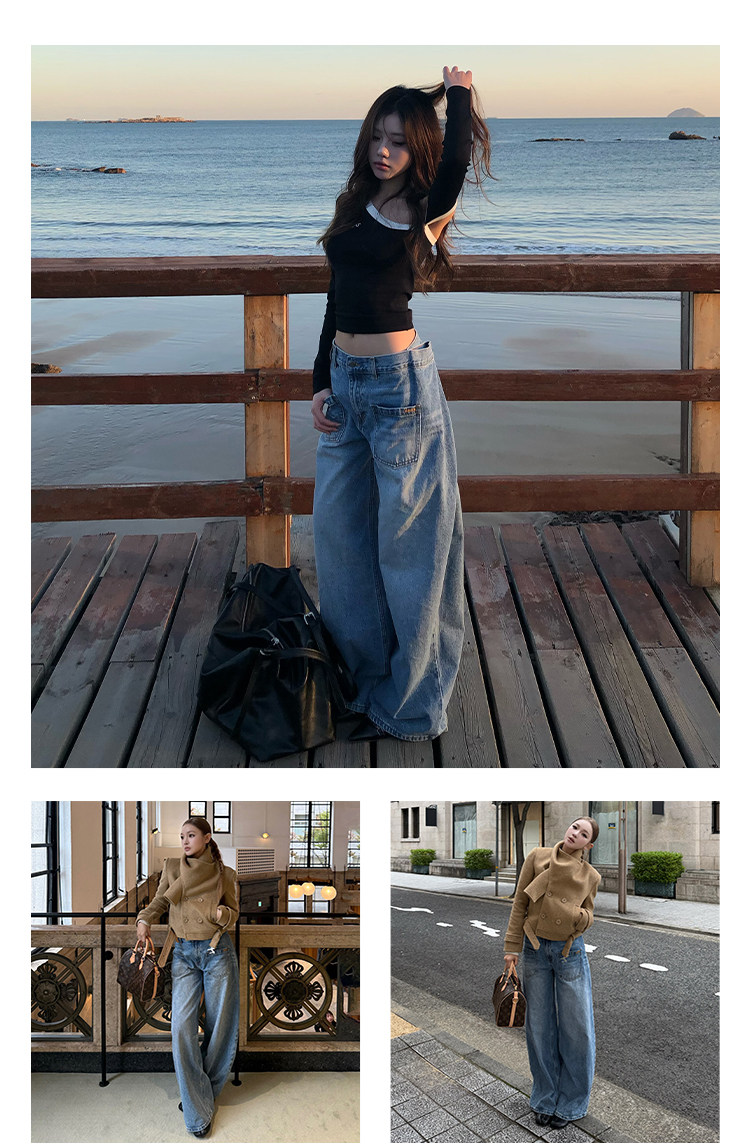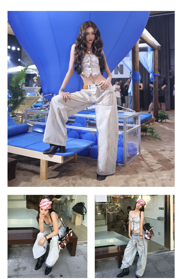 Naws【Same Style as Niyi】Ceramic Denim Baggy Pants Washed Reverse Pocket Wide Leg Jeans Long Pants