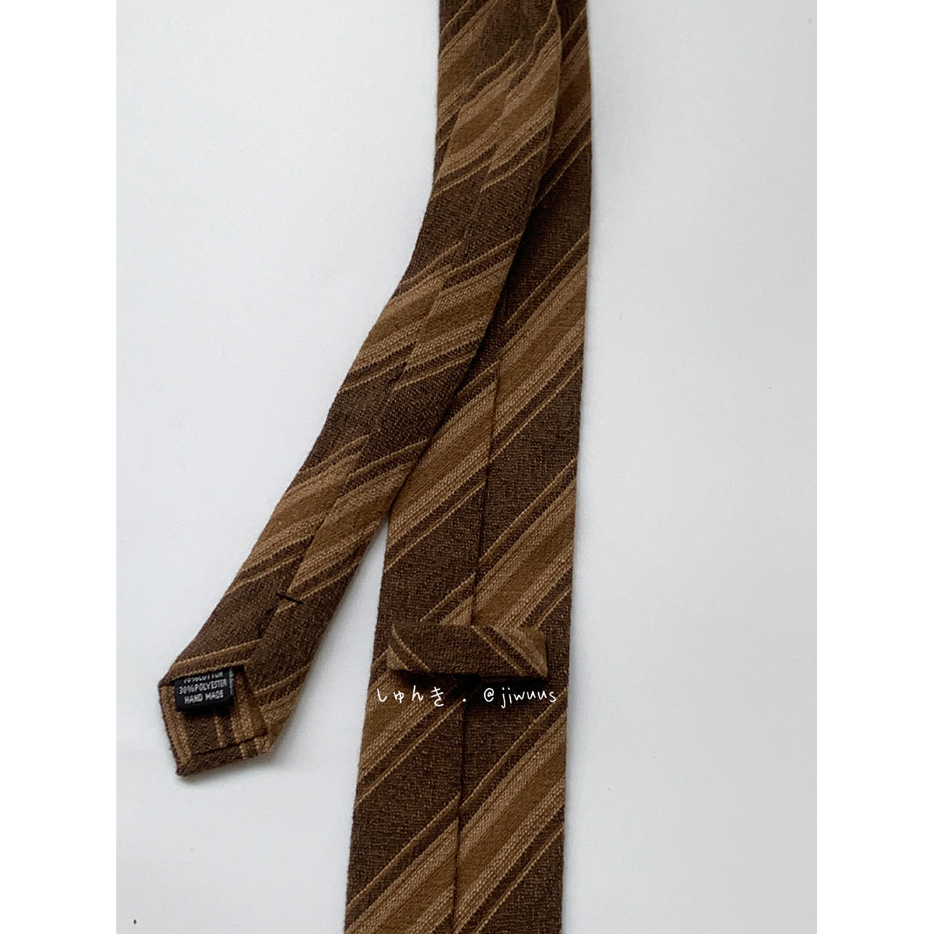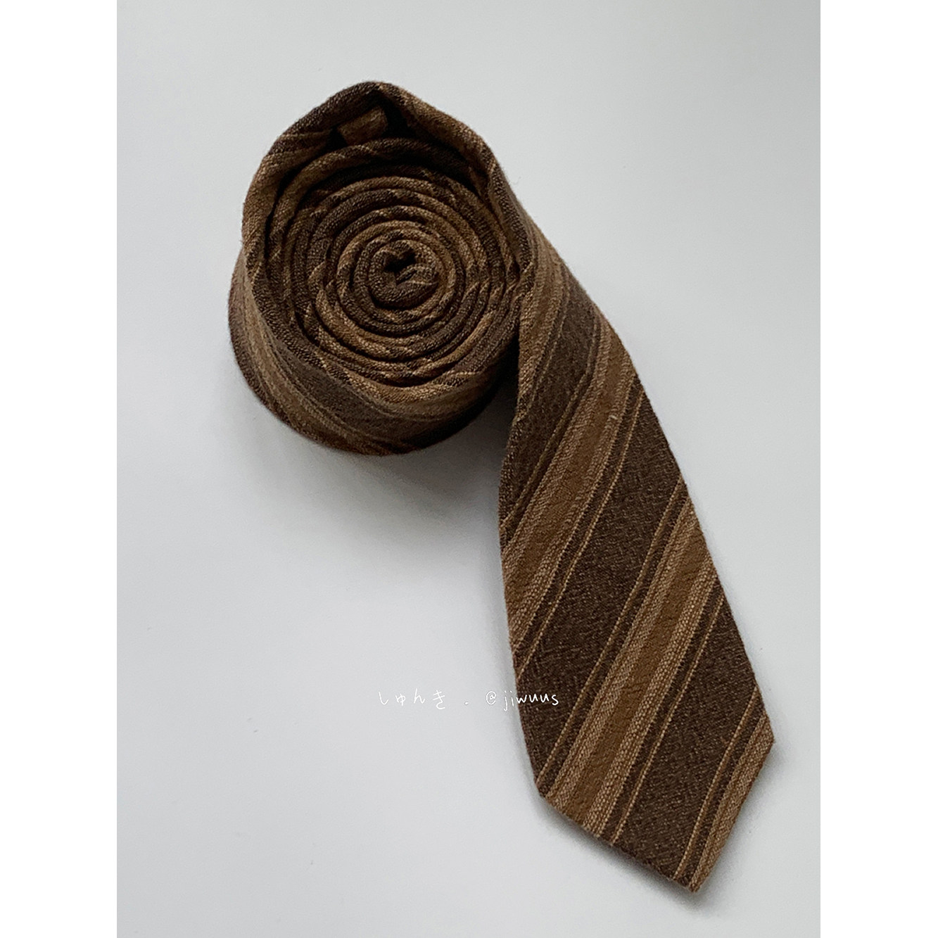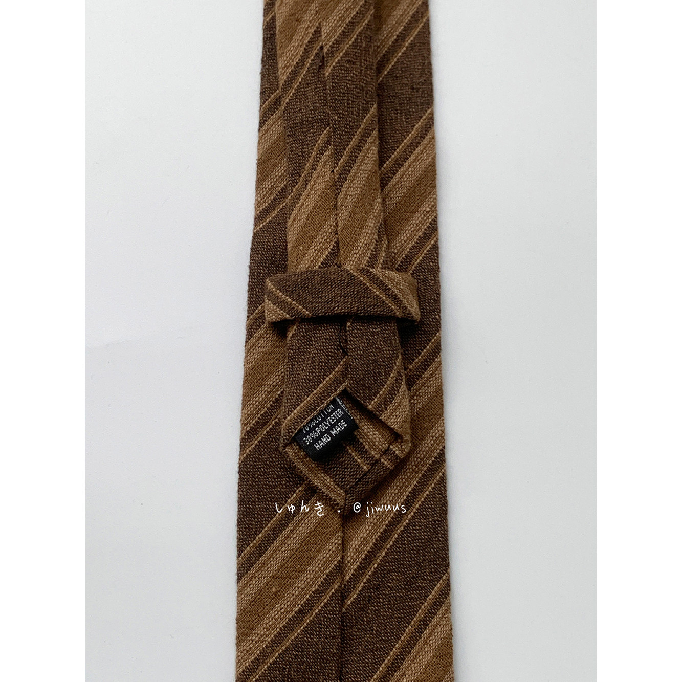 Jiwuus Four-Season Japanese Retro Khaki Striped Hand-Tied Tie for Men and Women, Versatile Shirt Accessory with a Preppy Style
