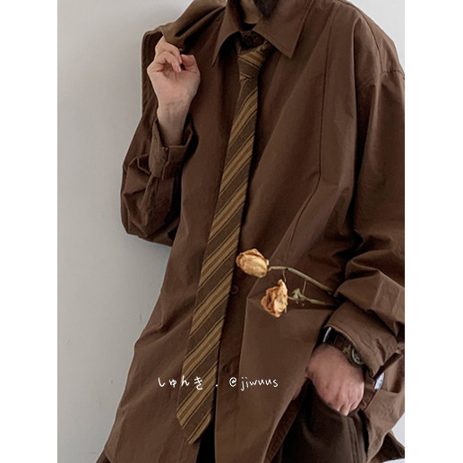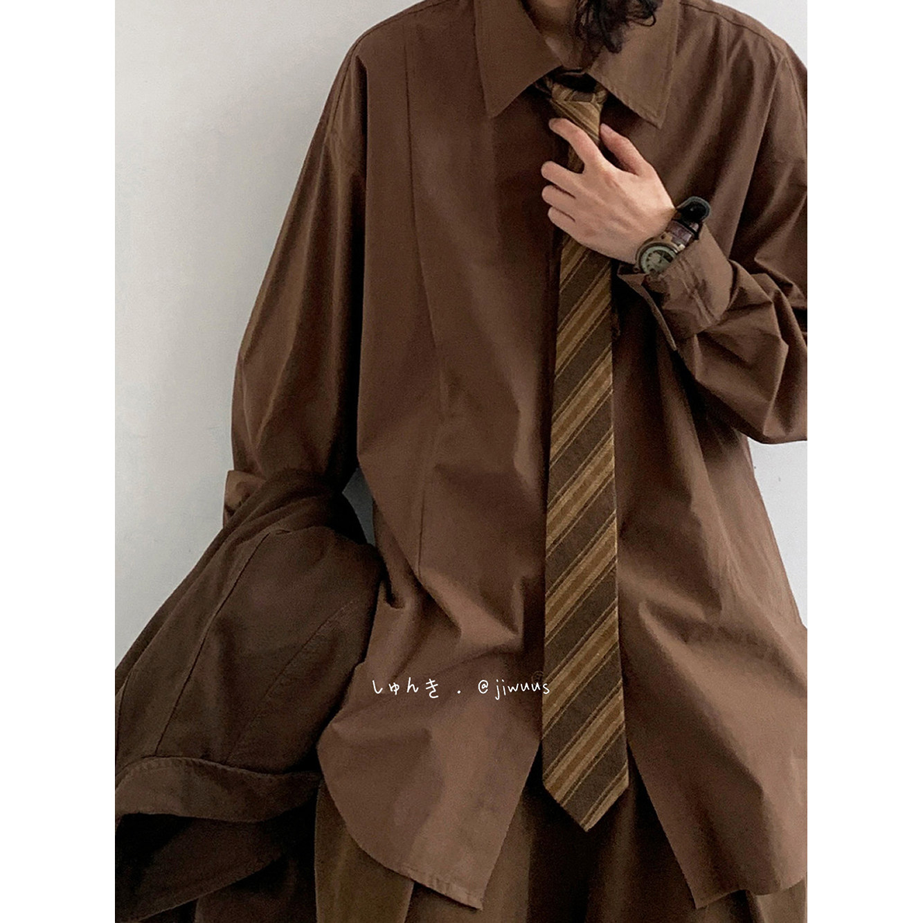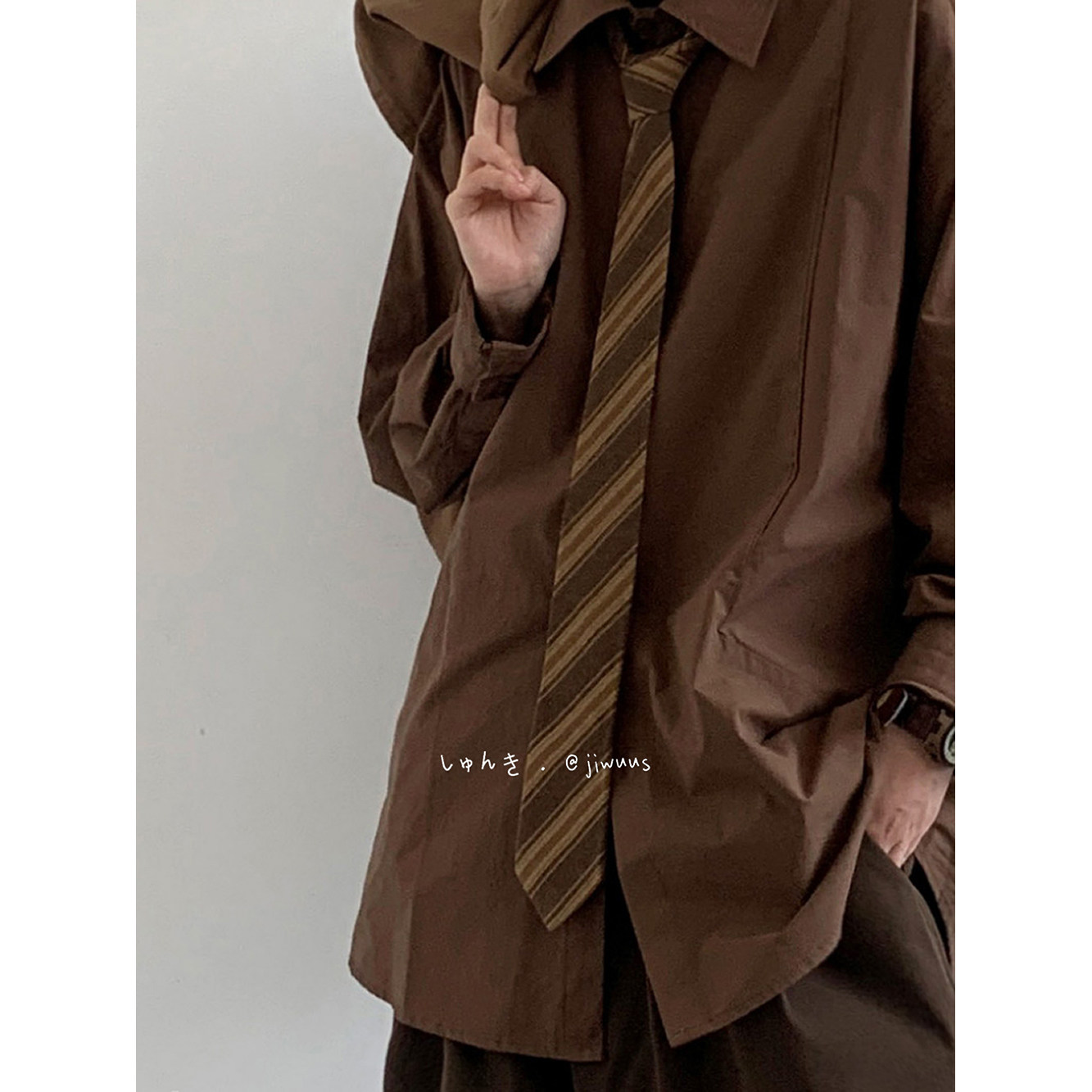 Jiwuus Four-Season Japanese Retro Khaki Striped Hand-Tied Tie for Men and Women, Versatile Shirt Accessory with a Preppy Style