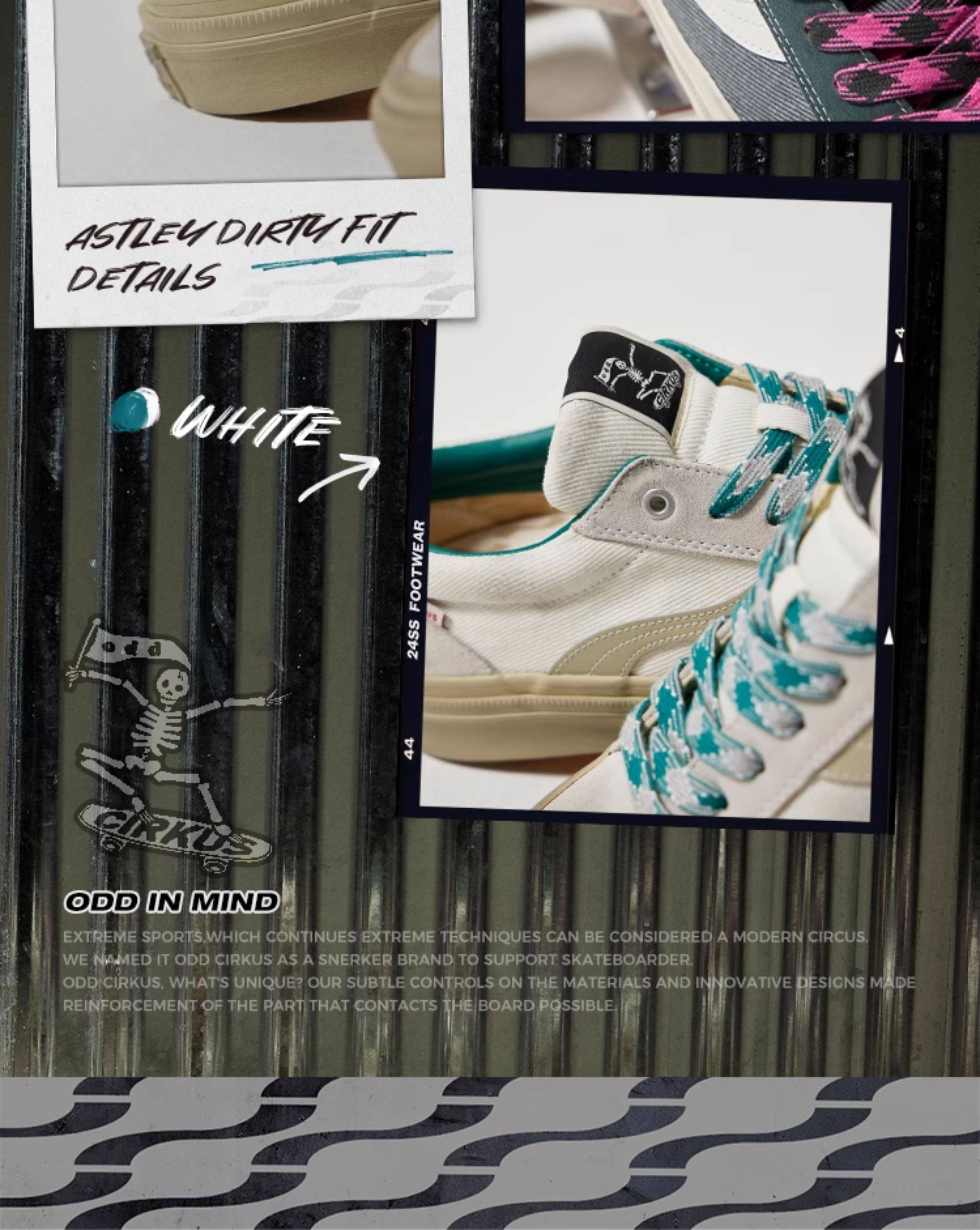 Oddcirkus Astley Pro Retro Street Dirty Shoes Low-Top Skateboard Shoes Cement White Shoes Men's and Women's Shoes