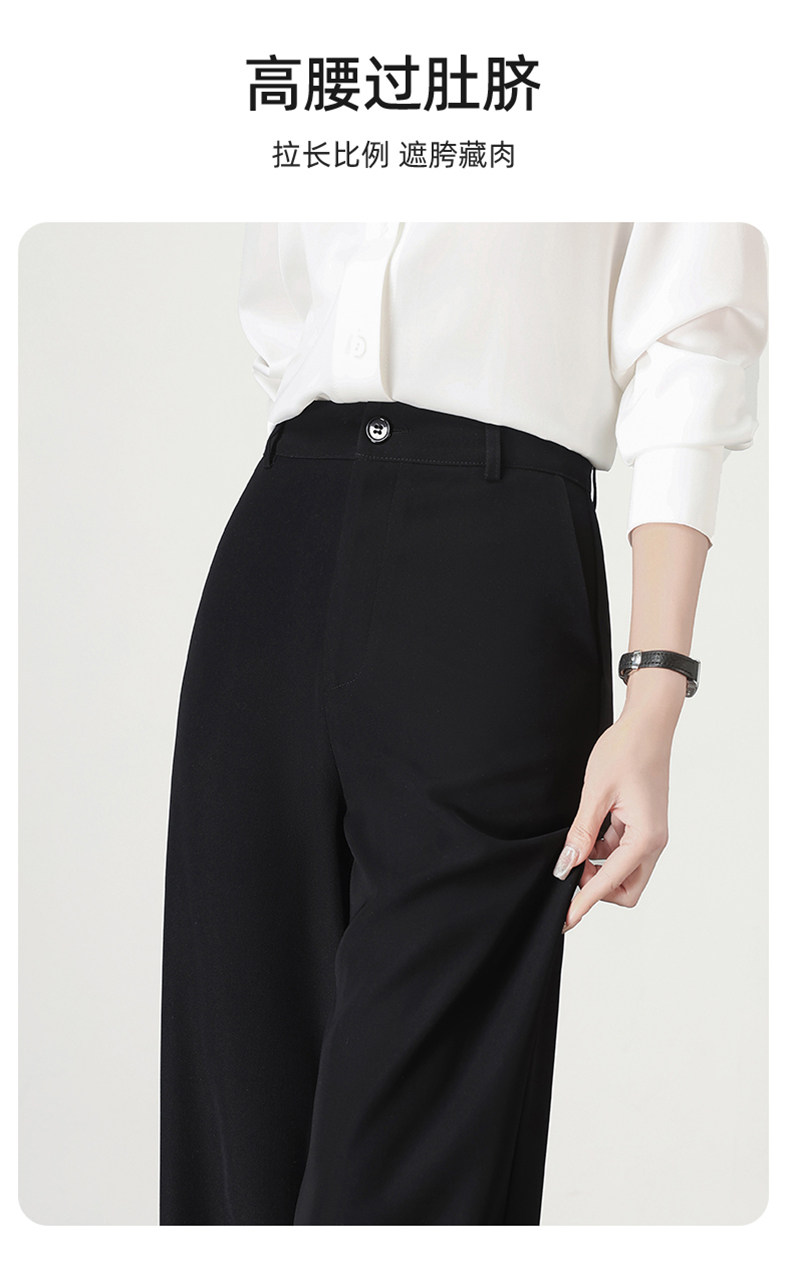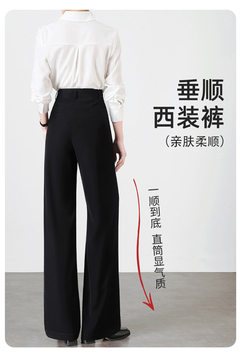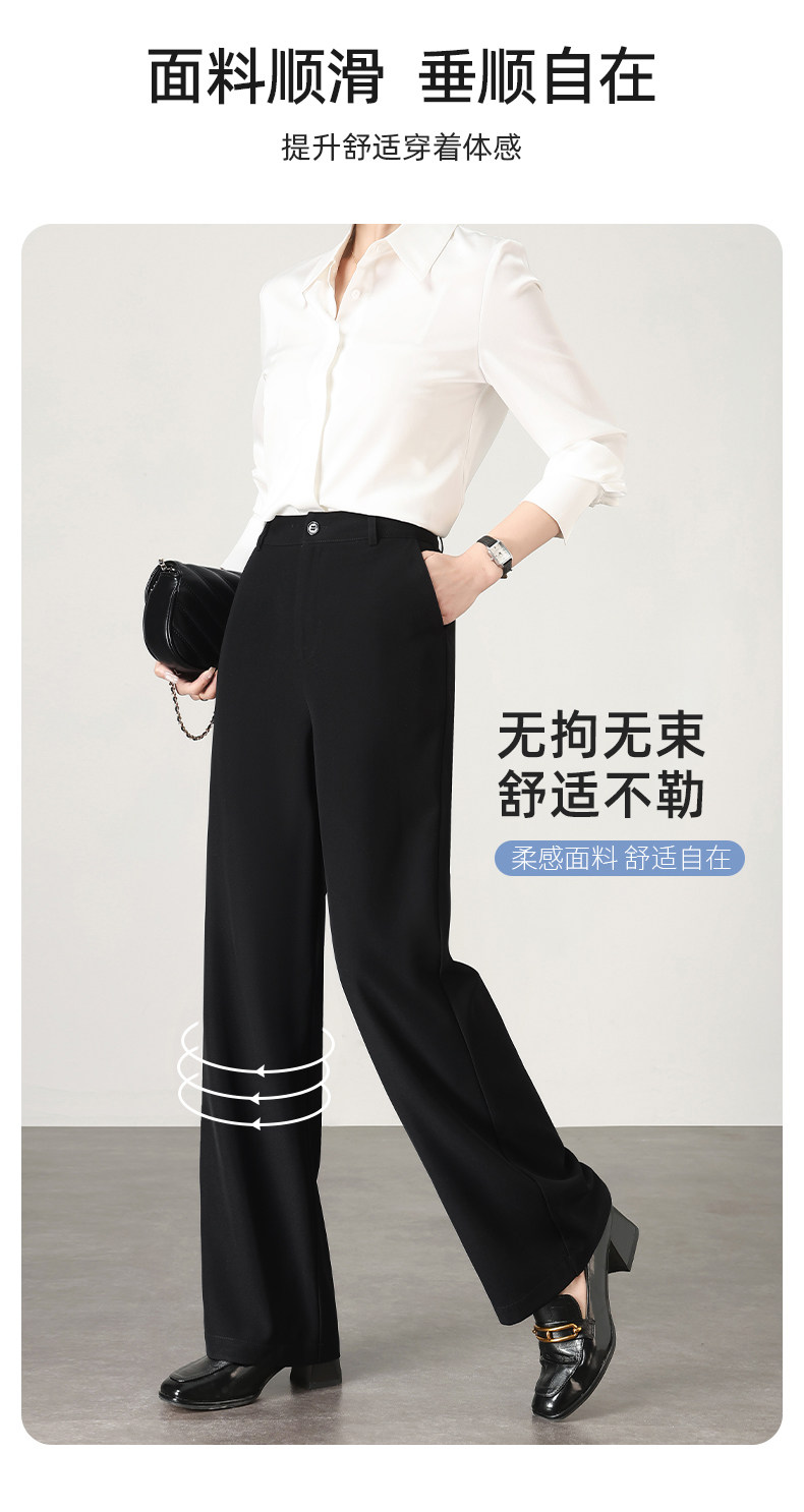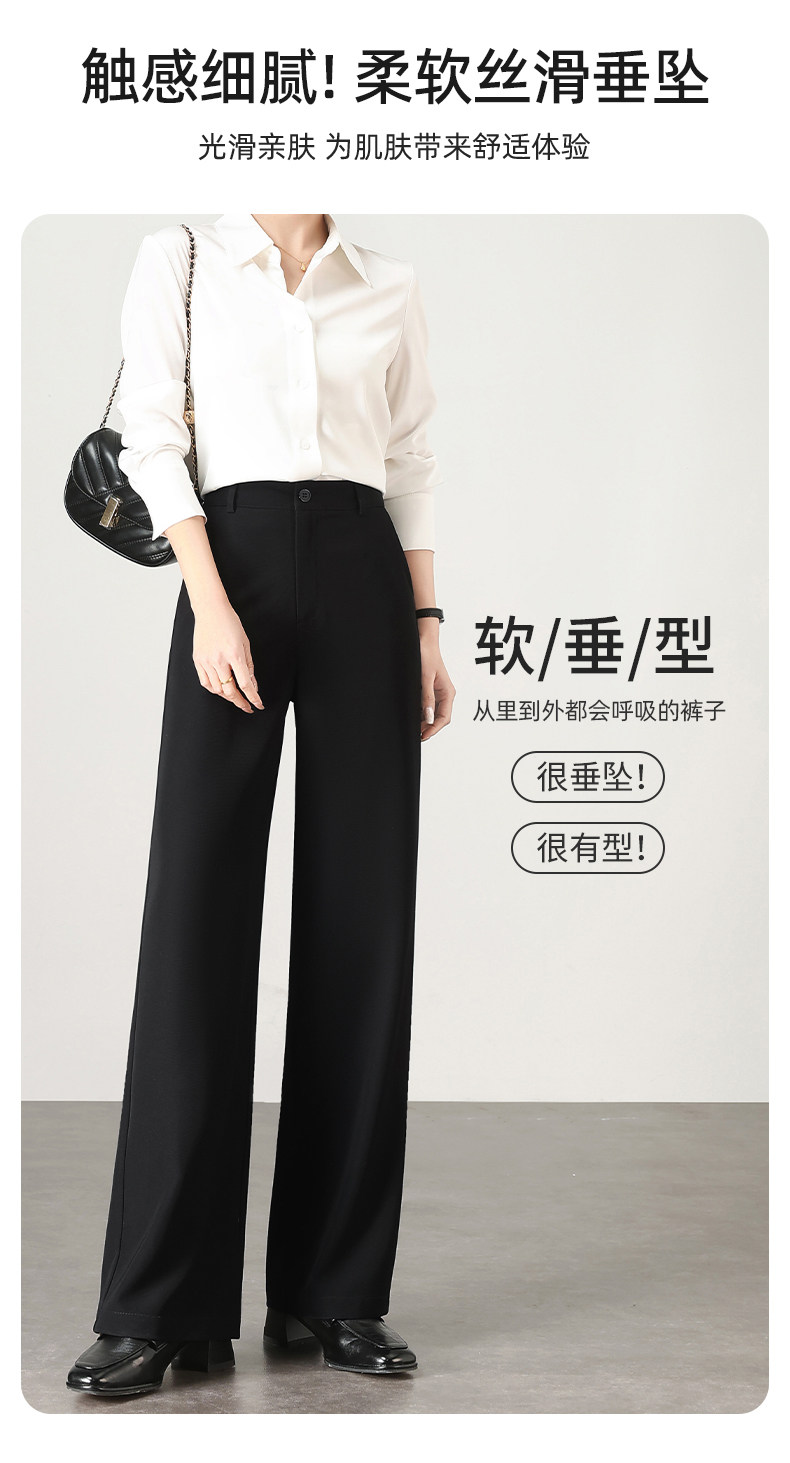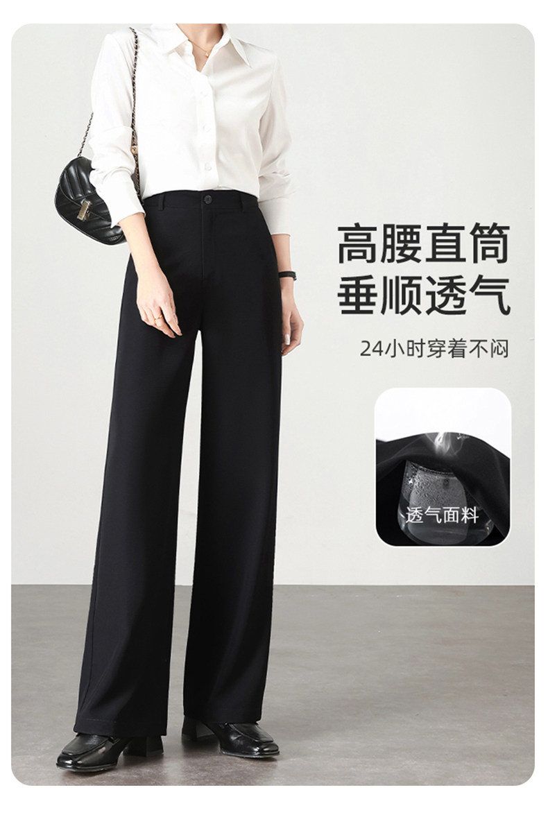 Women's Suit Pants, New Professional Style for Autumn and Winter, Fleece-Lined, Slim Fit, High-Waisted, High-End Drape, Wide-Leg Black Suit Pants, Straight-Leg Pants